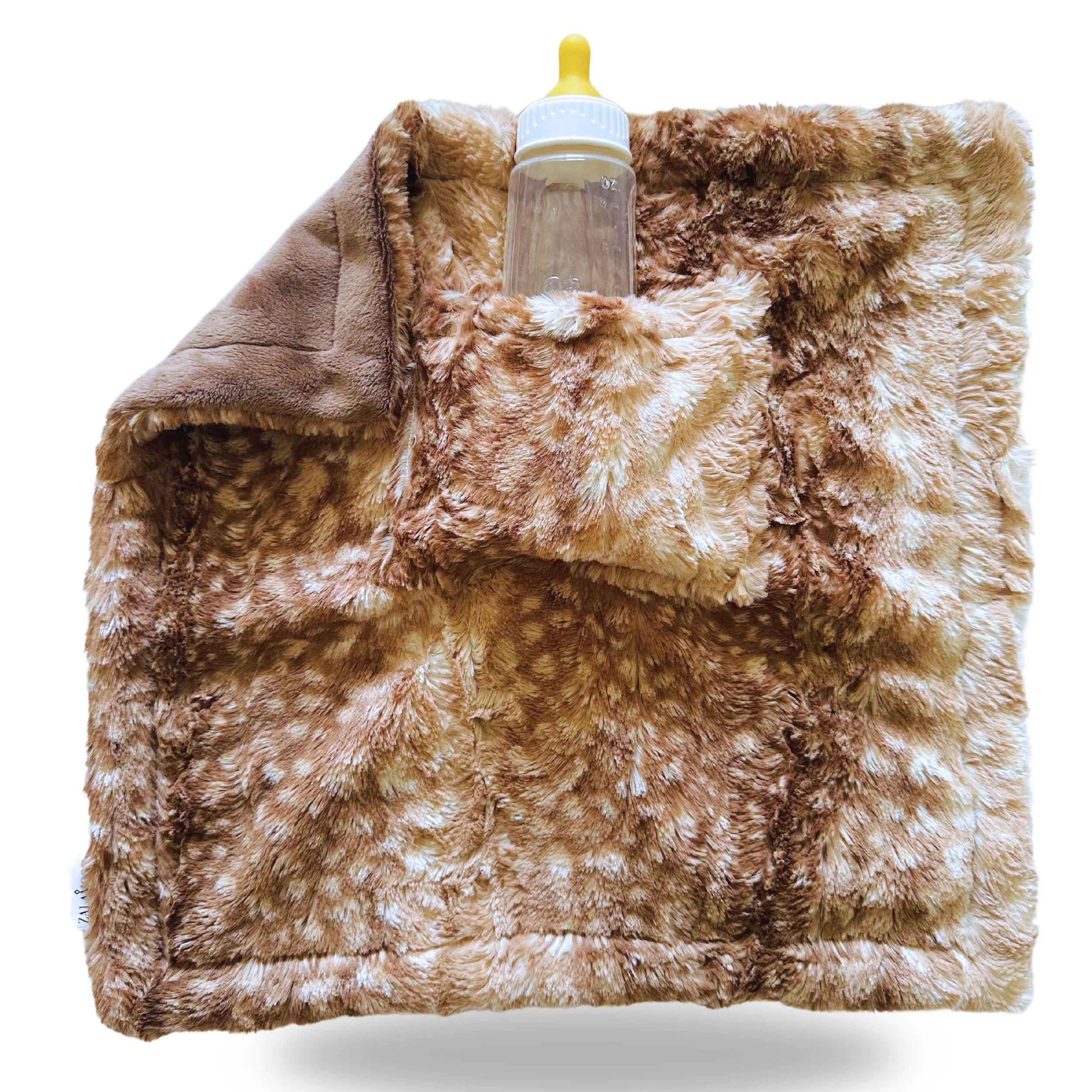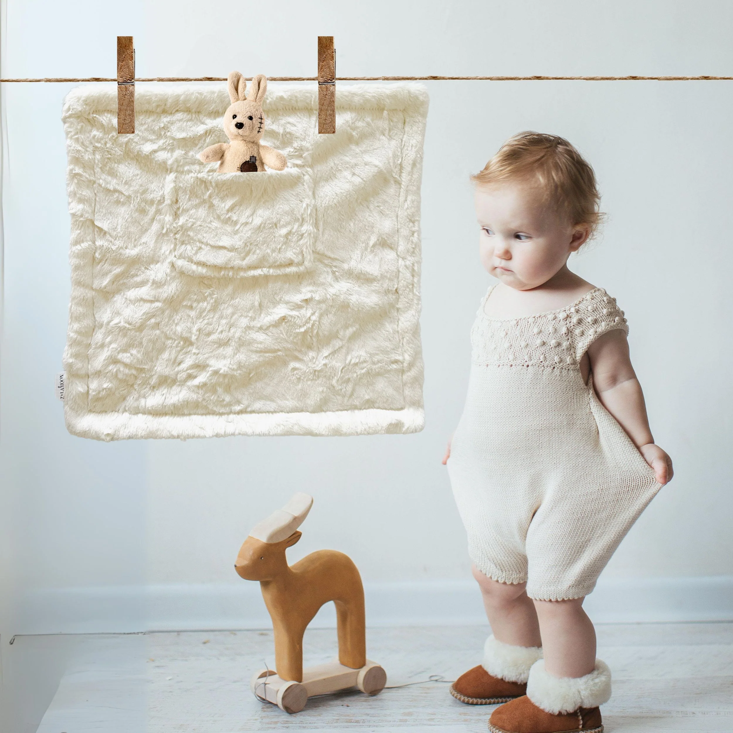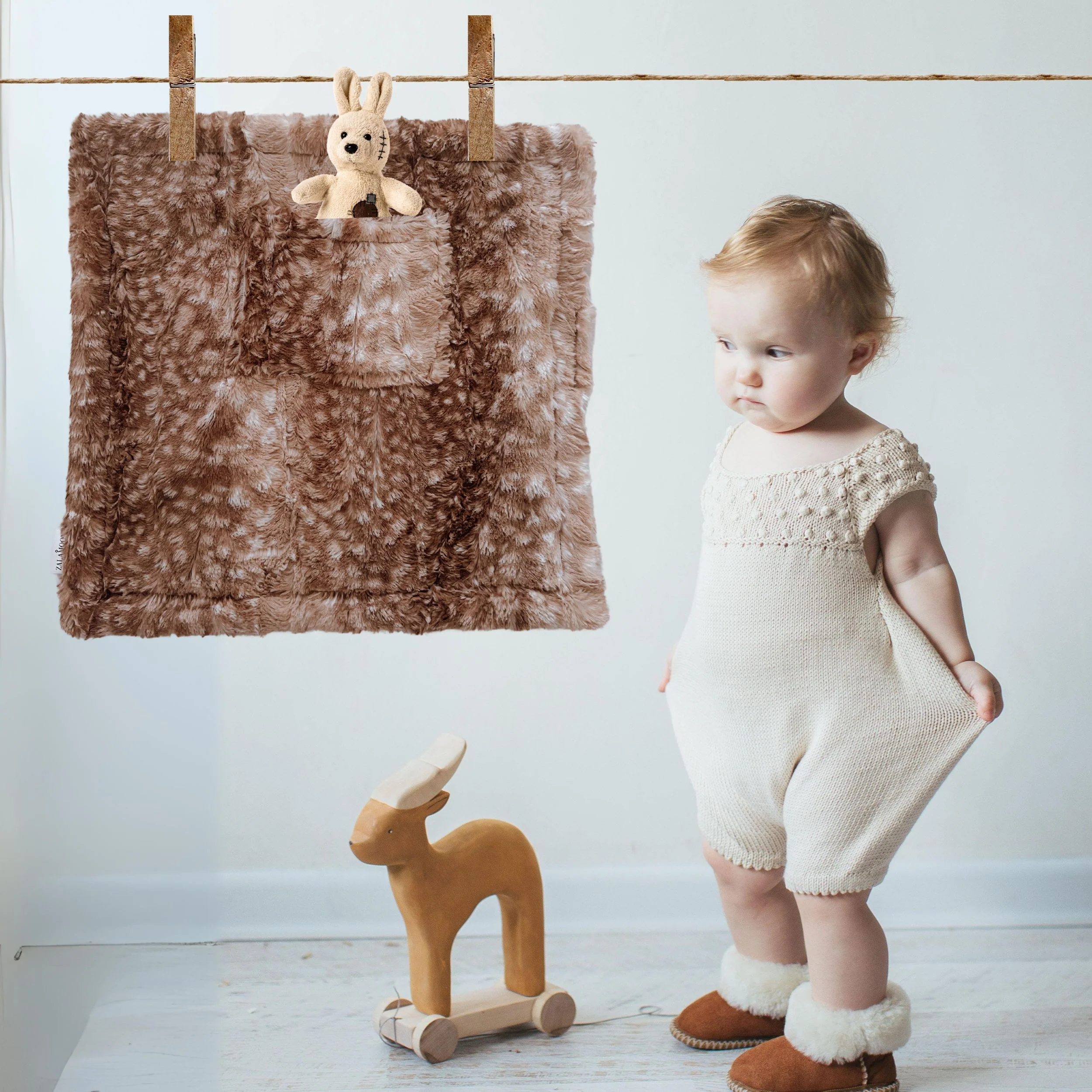 This plush ZALAMOON mini-blanket has a sweet pocket for stashing their favorite toy, pacifier or snack. The smaller size makes it great for on-the-go soothing.