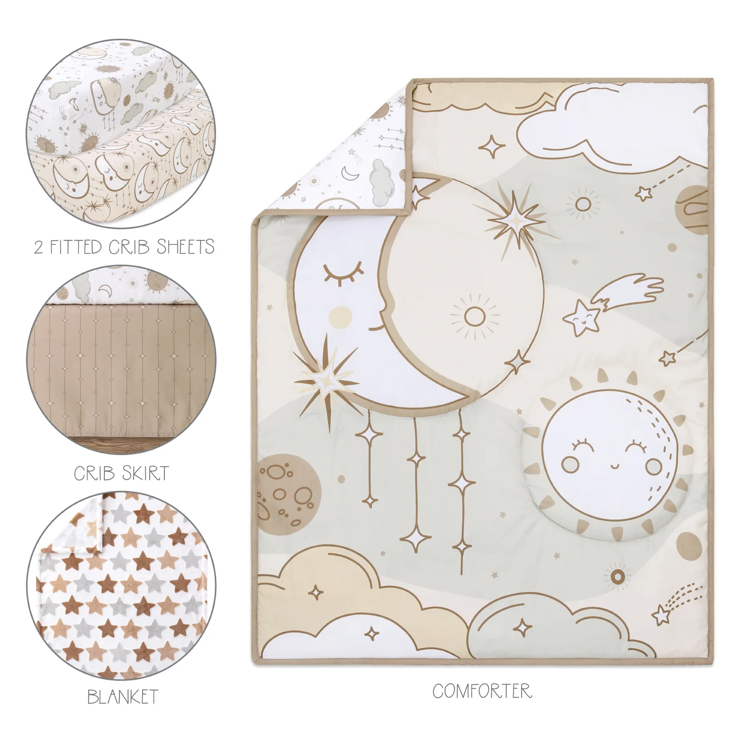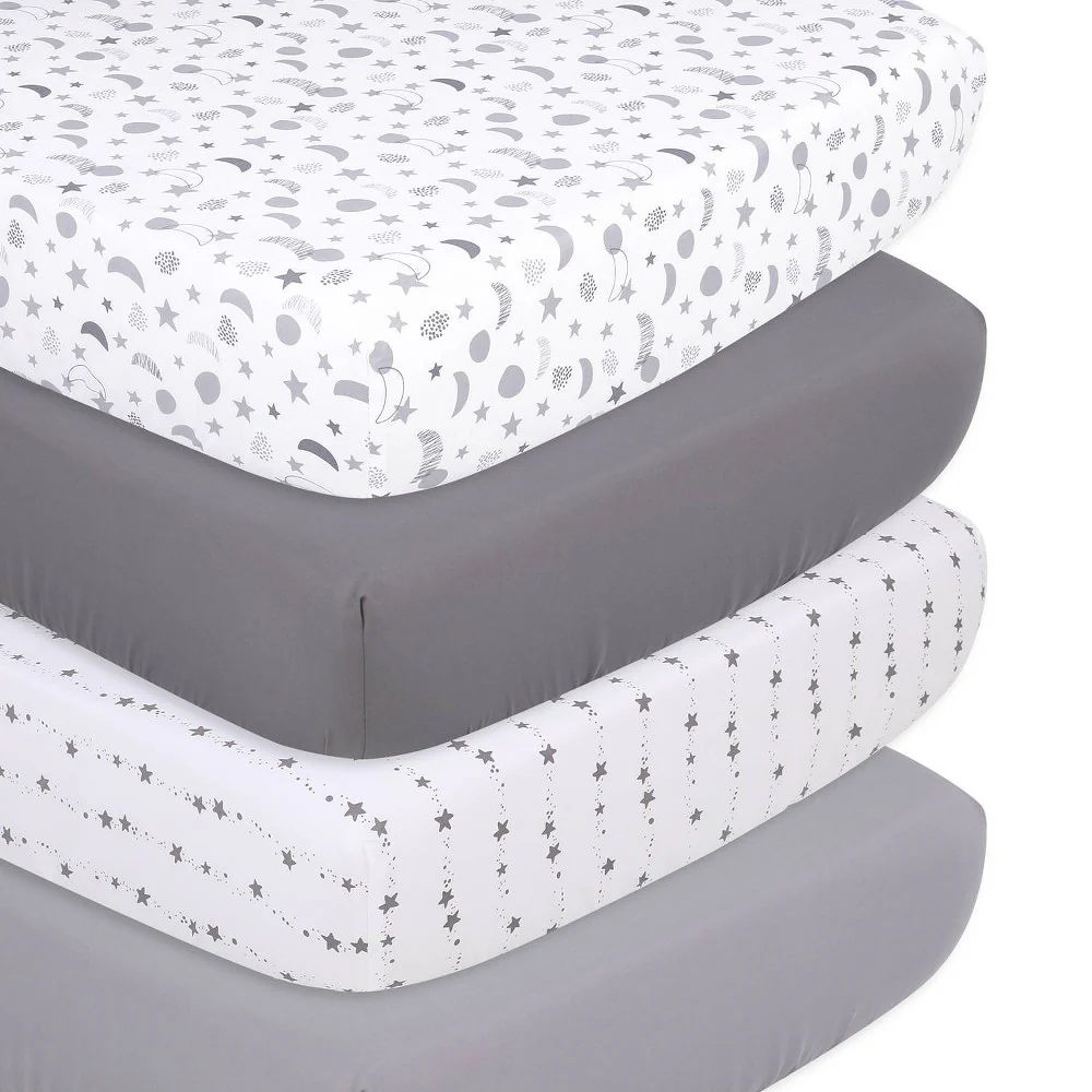The Peanutshell Fitted Crib Sheets Set for Baby Boys or Girls, Grey & White Celestial Moon and Stars, 4 Pack Set