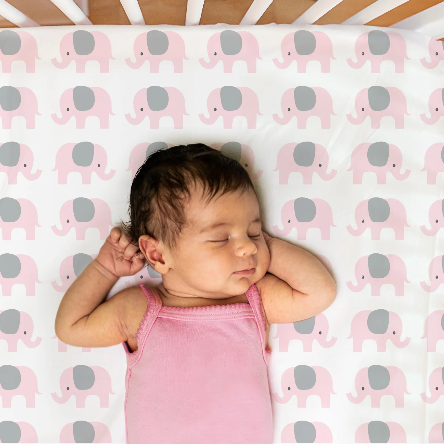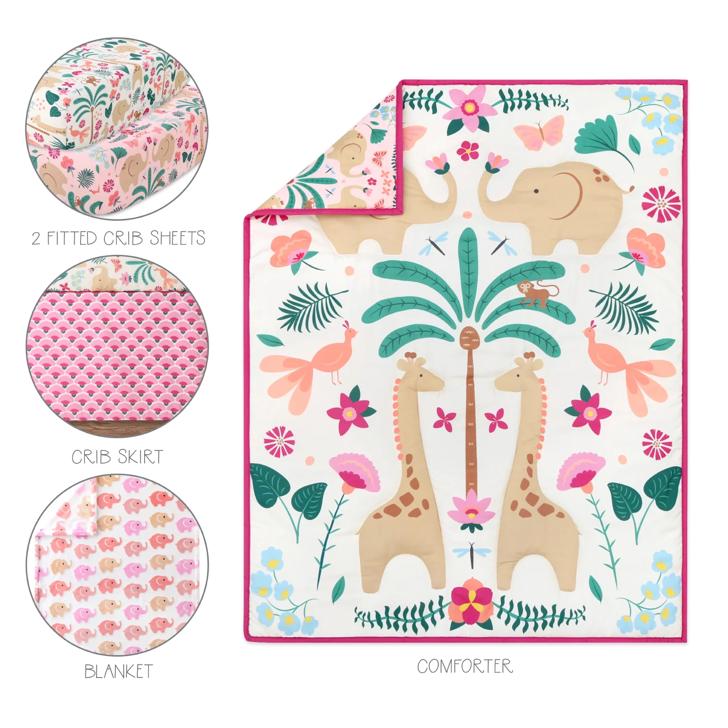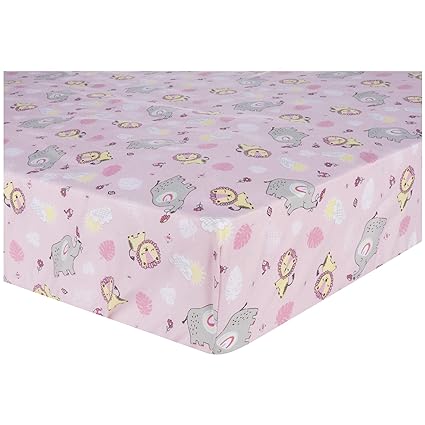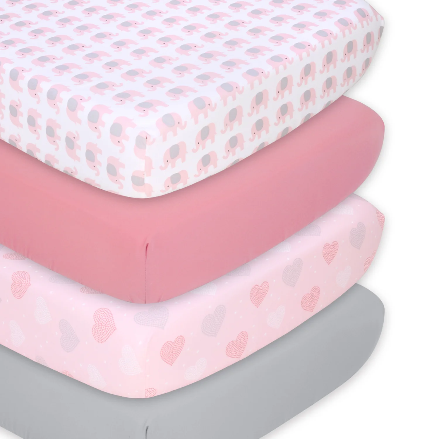 The Peanutshell Pink Elephant Fitted Crib Sheet Set, 4 Pack