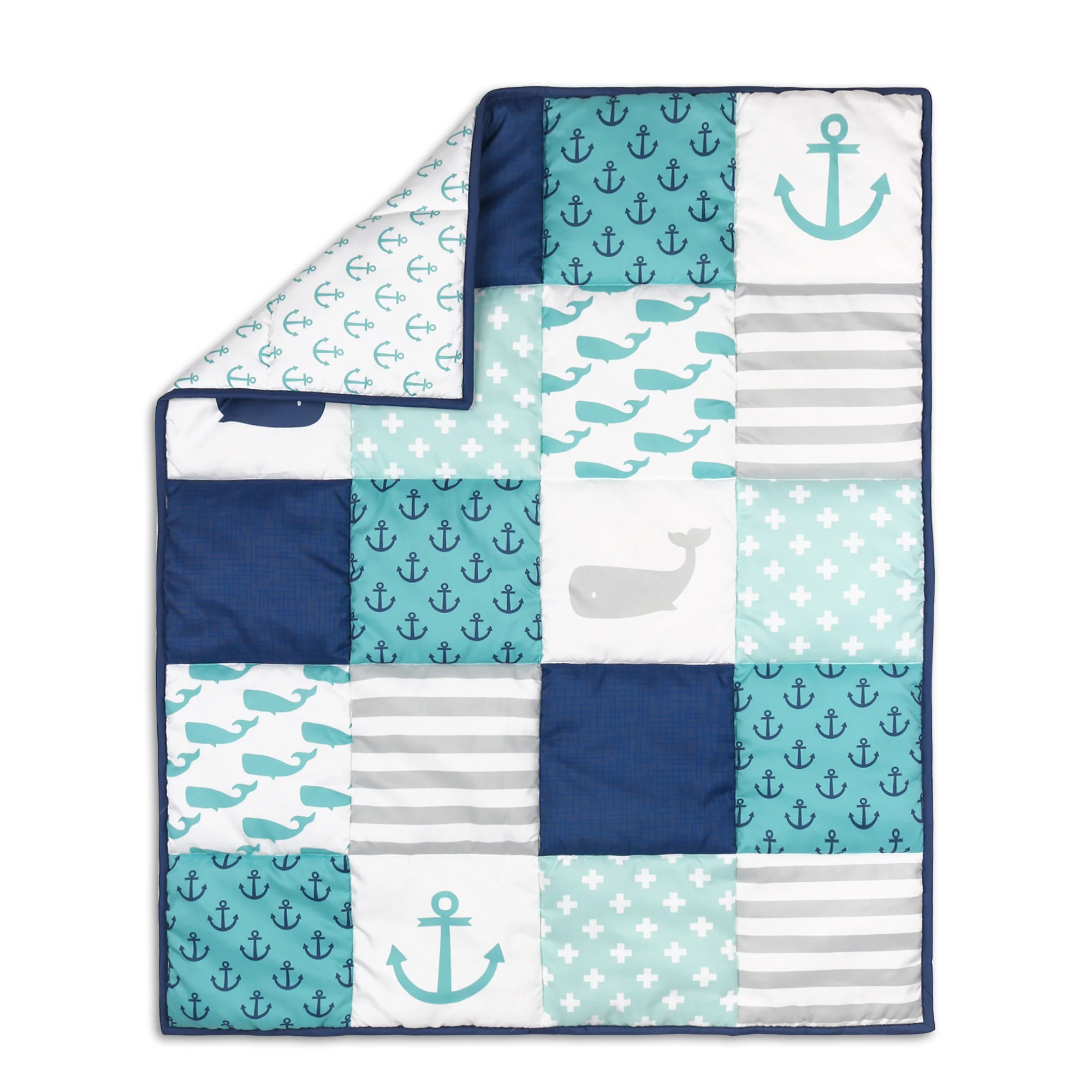 The Peanutshell Crib Bedding Set for Baby Boys, Nautical Whale 3 Piece Nursery Set