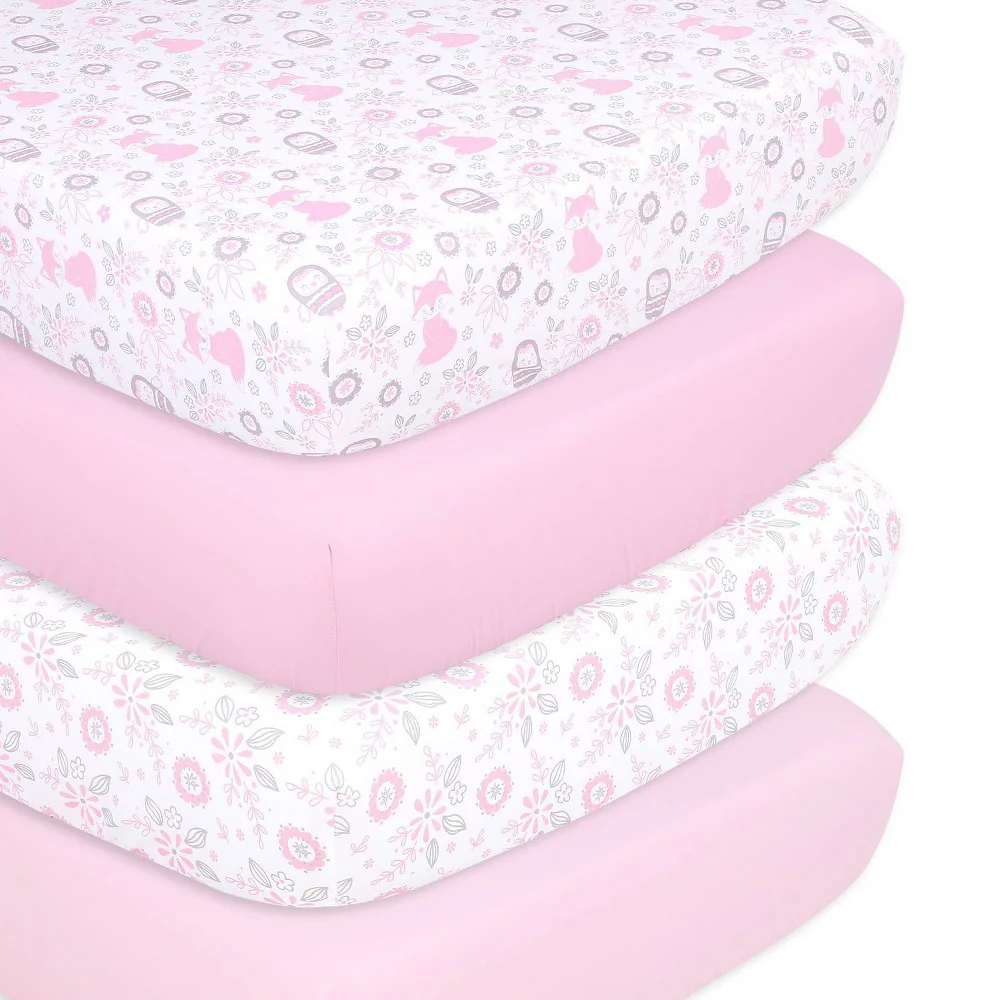 The Peanutshell 4-Pack Microfiber Crib Sheets, Whimsical Floral