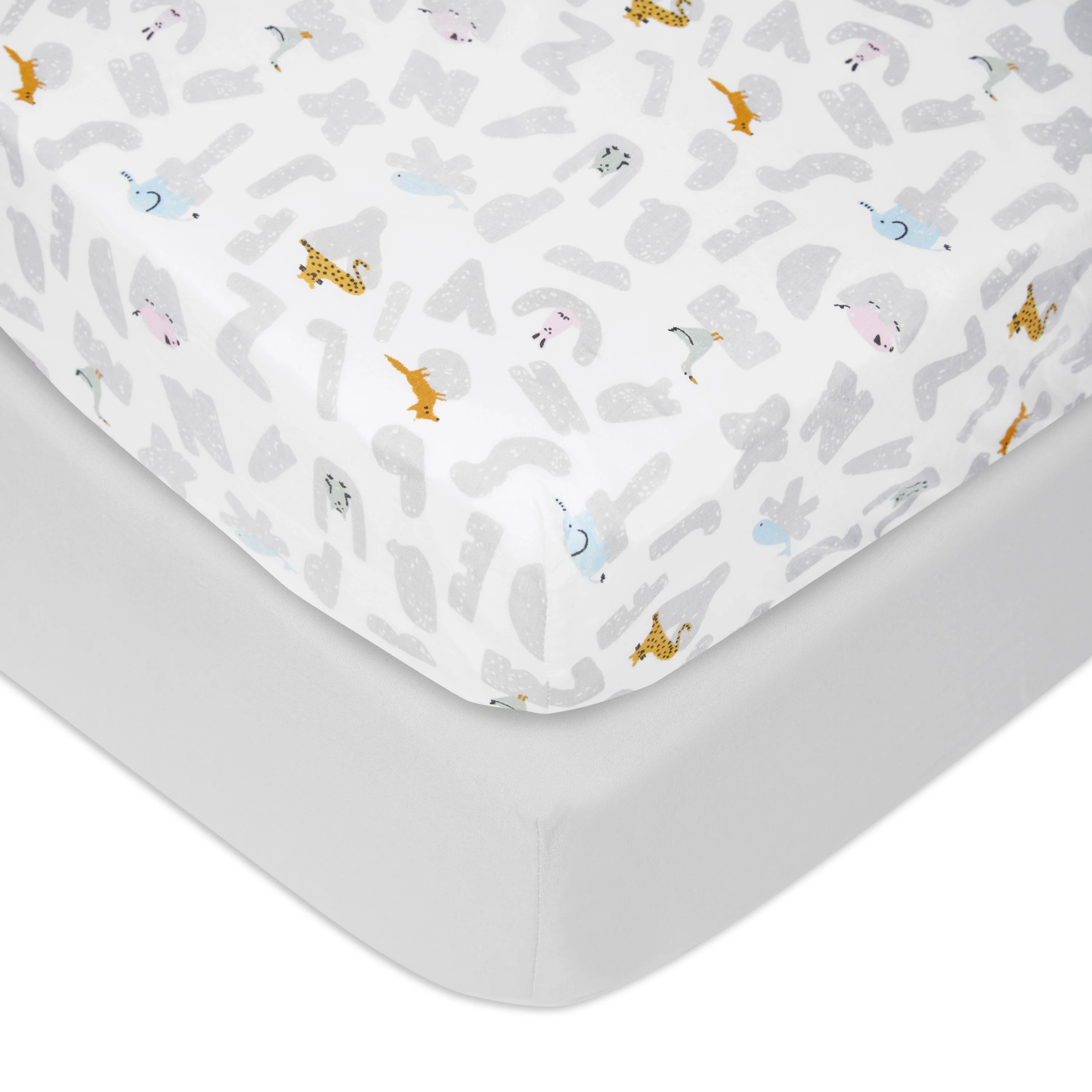 aden + anais Cotton Poplin Crib Sheets 2 pack Alphabet Animals Grey