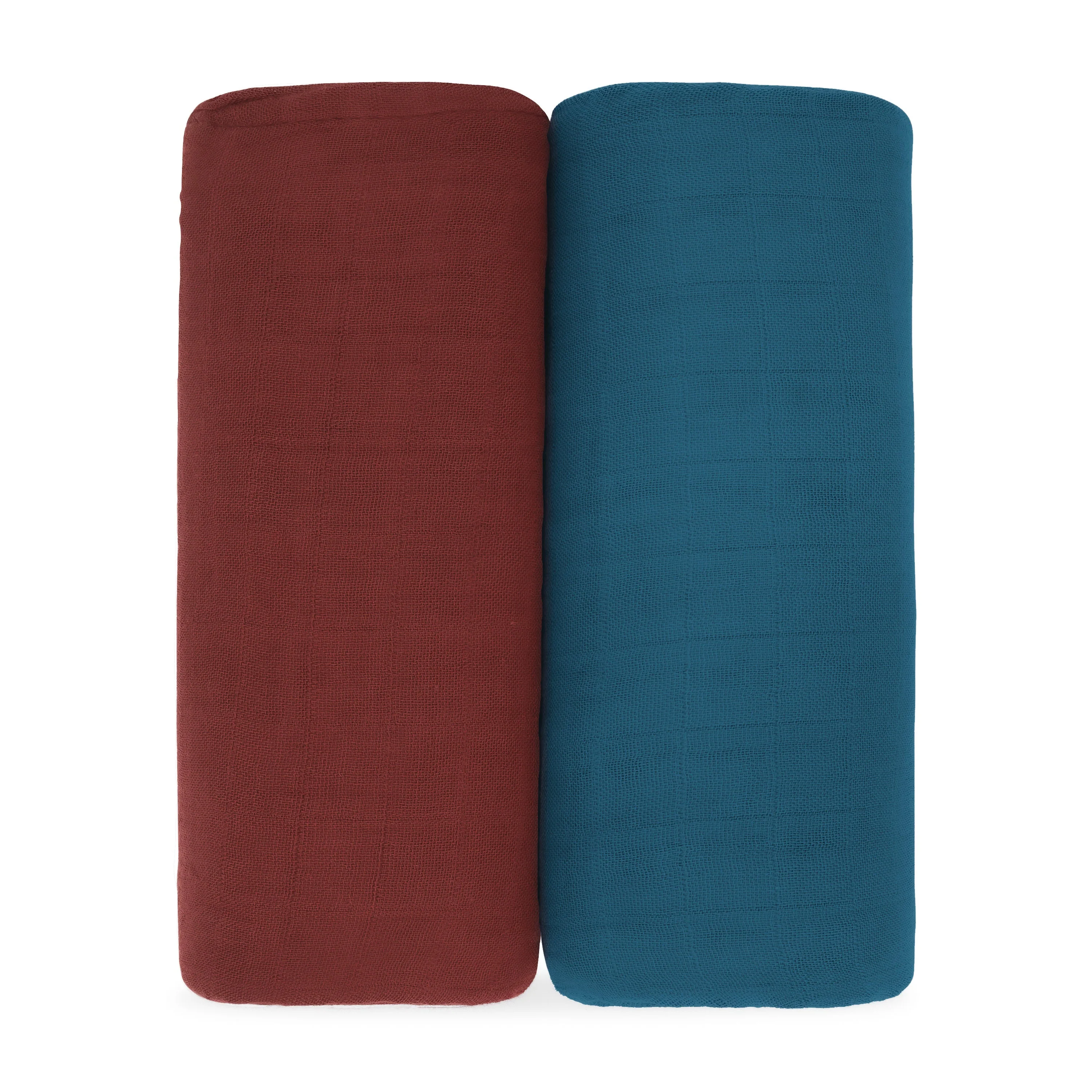 Comfy Cubs Muslin Swaddle Blanket, 2 Pack - Wine & Neptune