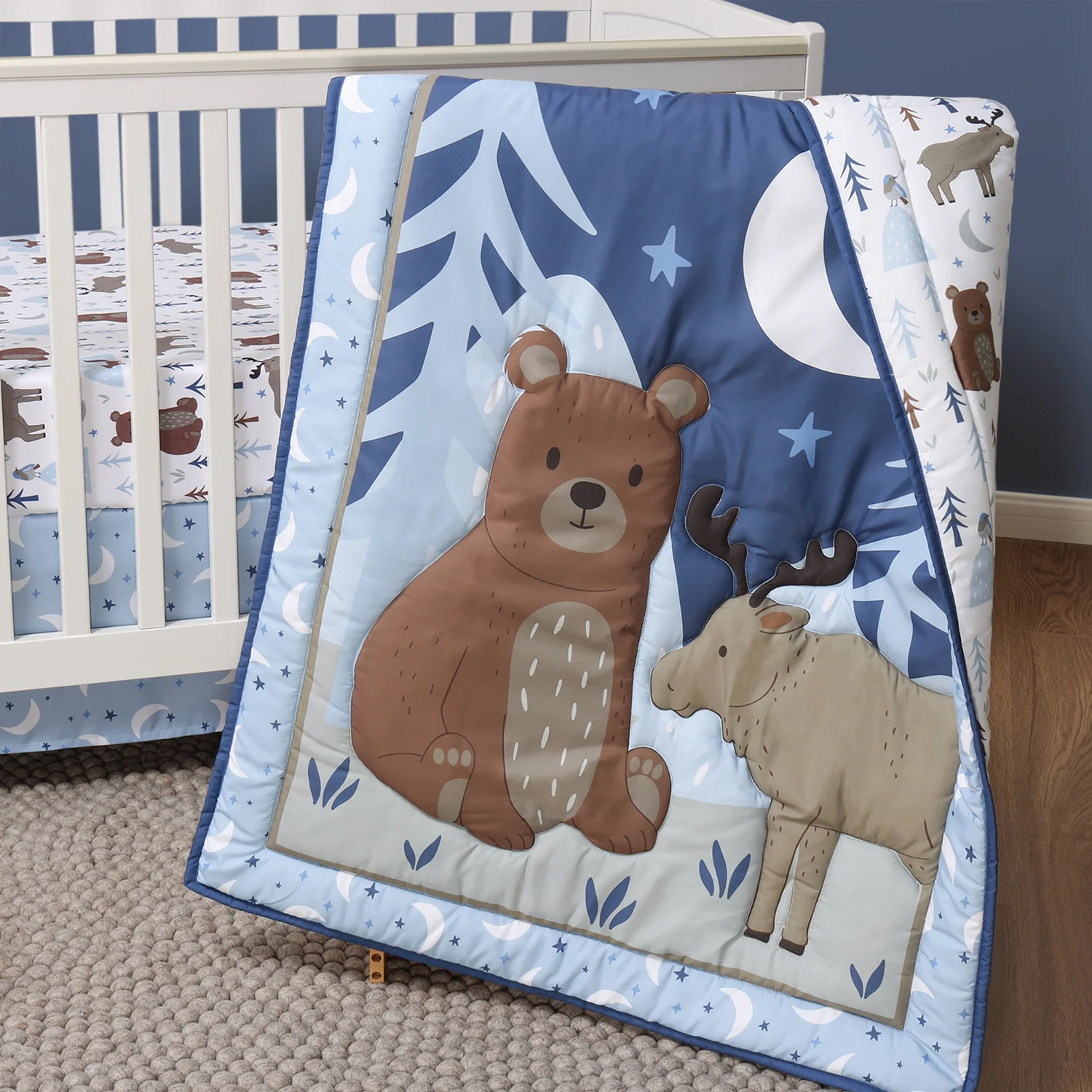 The Peanutshell Crib Bedding Set for Baby Boys, Under the Stars, 3 Pieces