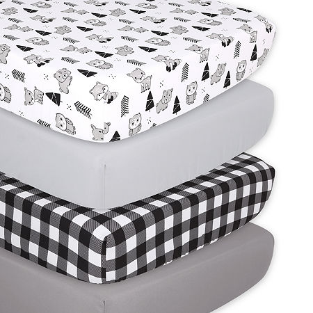 The Peanutshell Fitted Crib Sheets - Woodland Animal and Buffalo Plaid - 4 pack