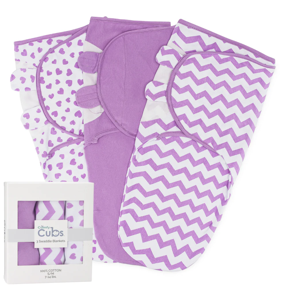 Comfy Cubs Baby Swaddle Blankets 3 Pack - Purple