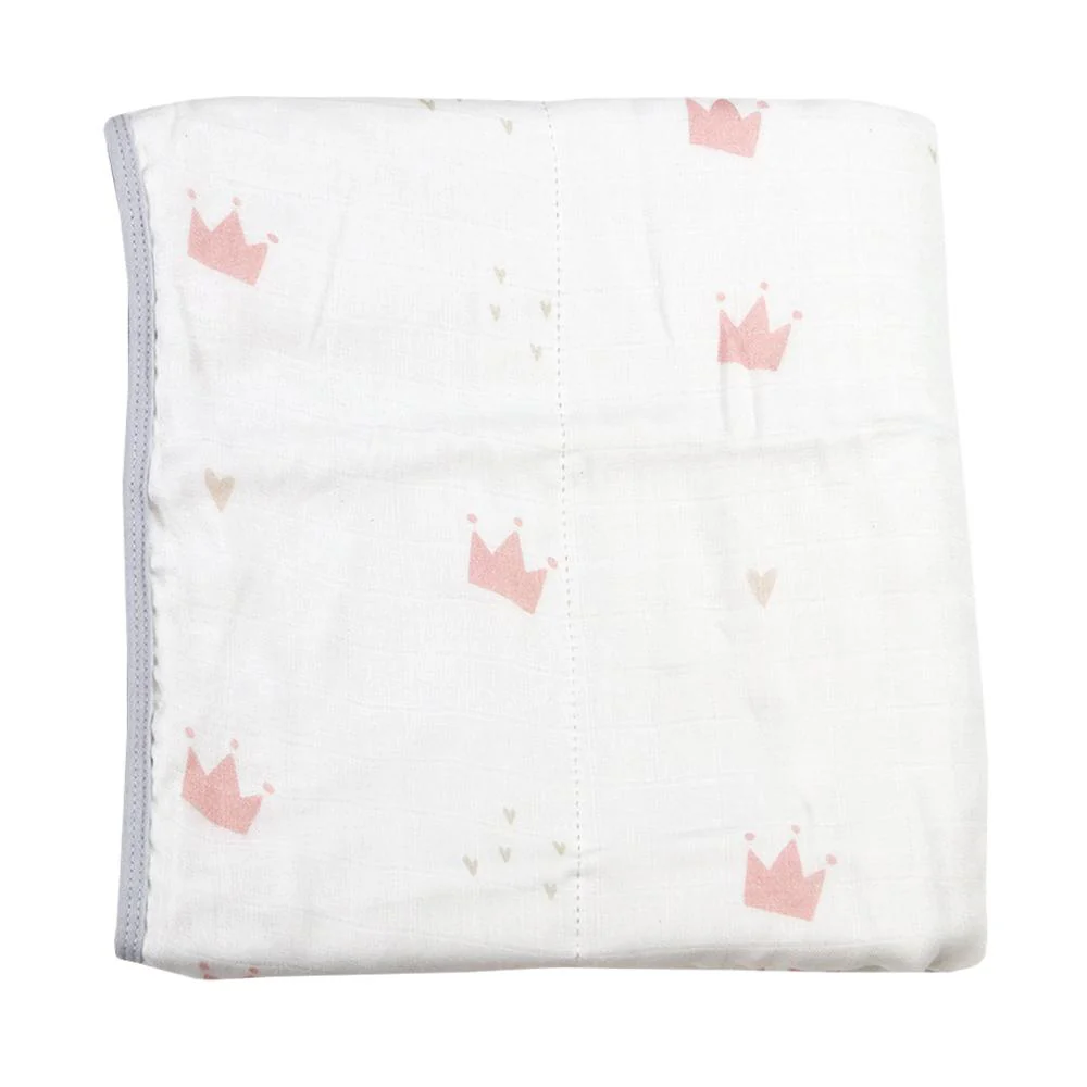 Goosewaddle® Pink Crown and Gray Oversized Bamboo Muslin Quilted Blanket