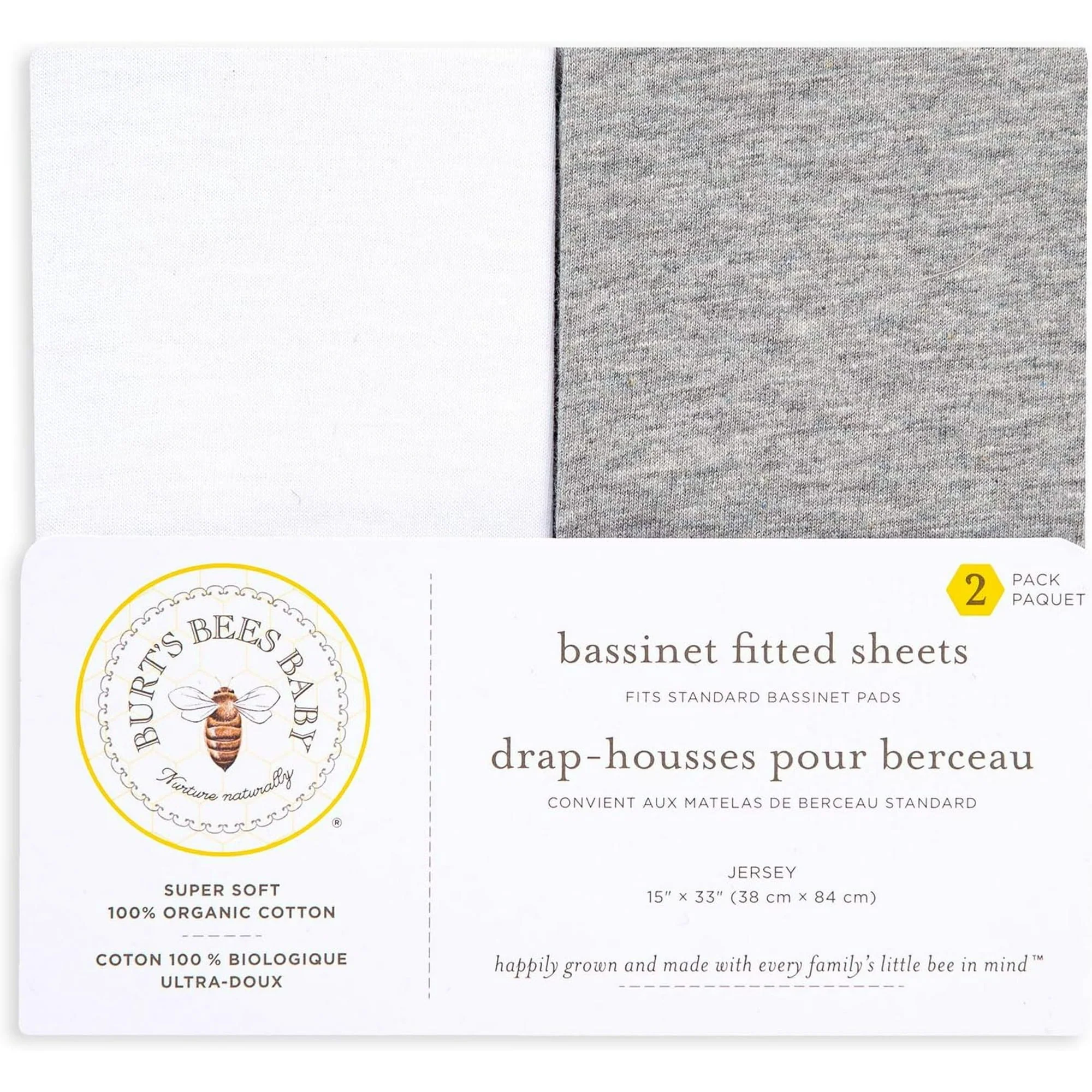 Burt's Bees Baby 2-Pack Organic Cotton Bassinet Sheet in Grey & White