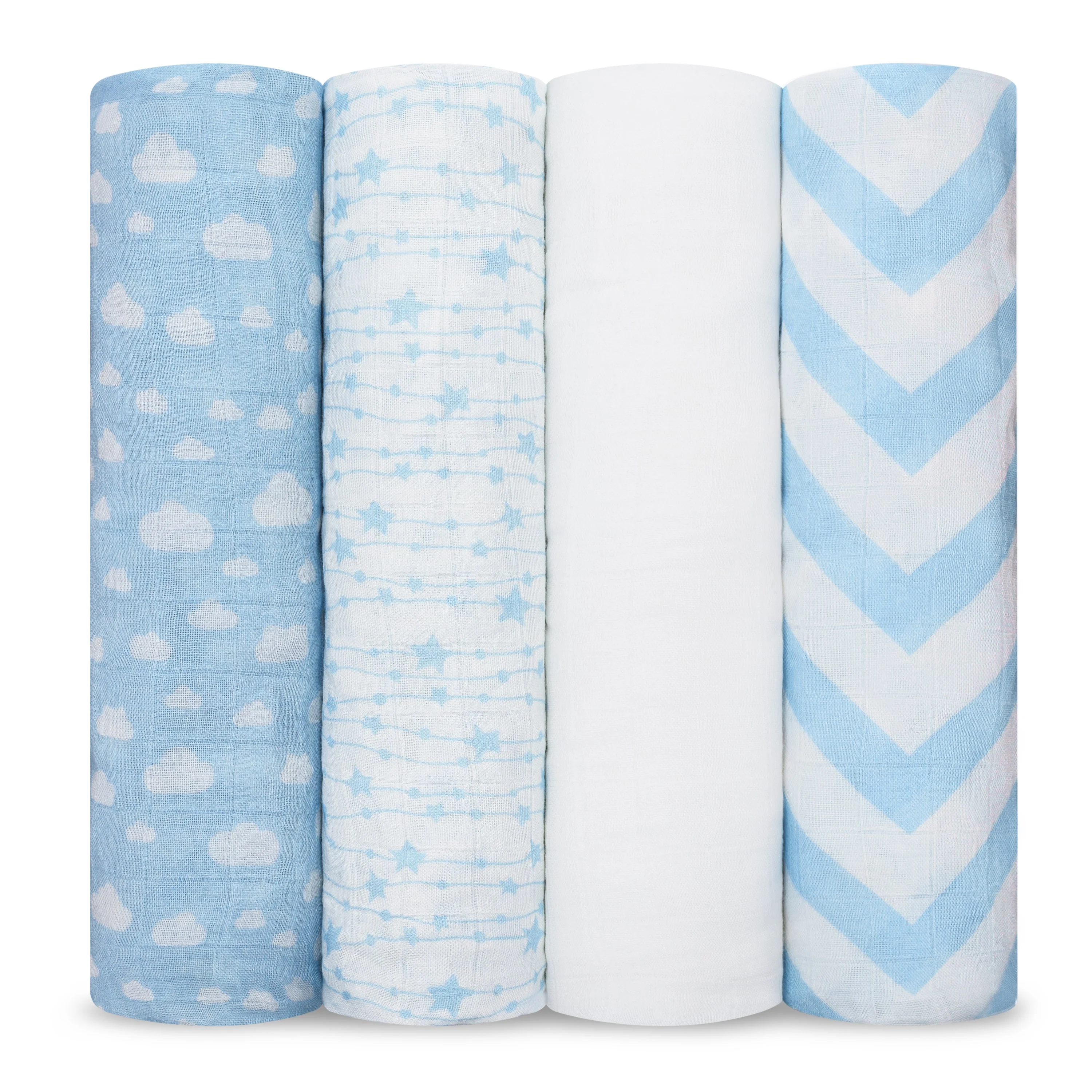 Comfy Cubs Baby Muslin Swaddle Blankets, 4 Pack - Blue