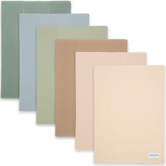 Comfy Cubs Baby Muslin Swaddle Blankets 4 Pack - Sand, Blush, Bold Blush, Mauve