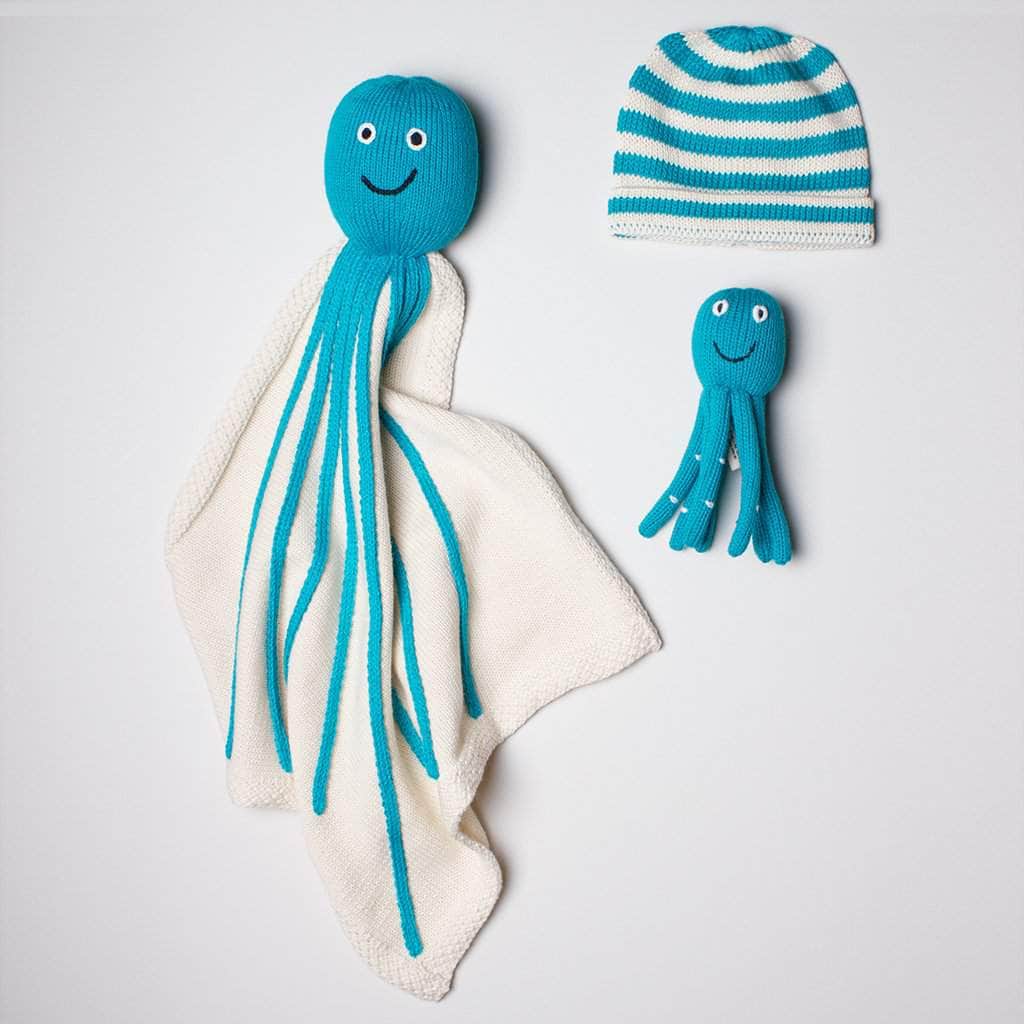 Estella Organic Baby Gift Sets - Newborn Lovey Blanket, Rattle Toy & Hat | Octopus