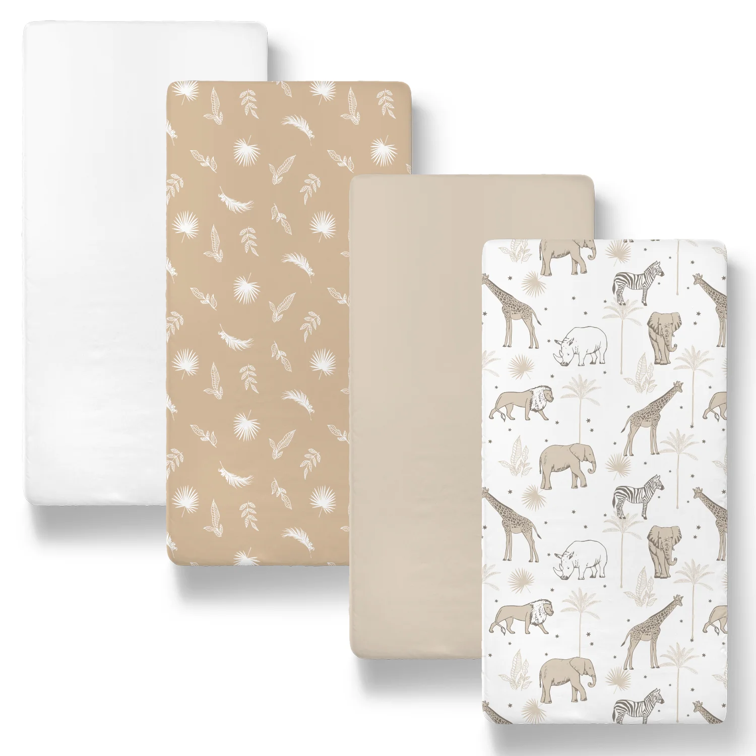 The Peanutshell Organic Cotton Jersey Bassinet Sheets, 4-Pack Caramel Safari