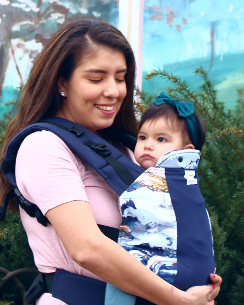 - Has an adjustable base to cinch the panel of the carrier, allowing young babies to be legs out with proper positioning and without an insert.
