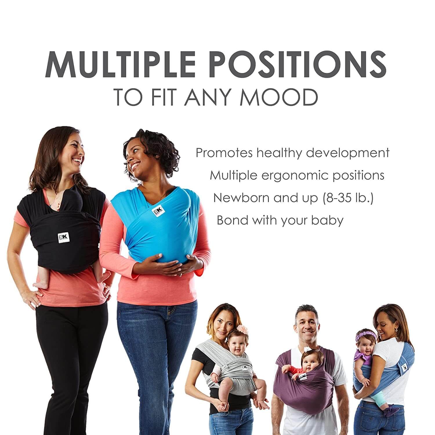 - 8-35 lbs (consult pediatrician for babywearing under 8lbs)