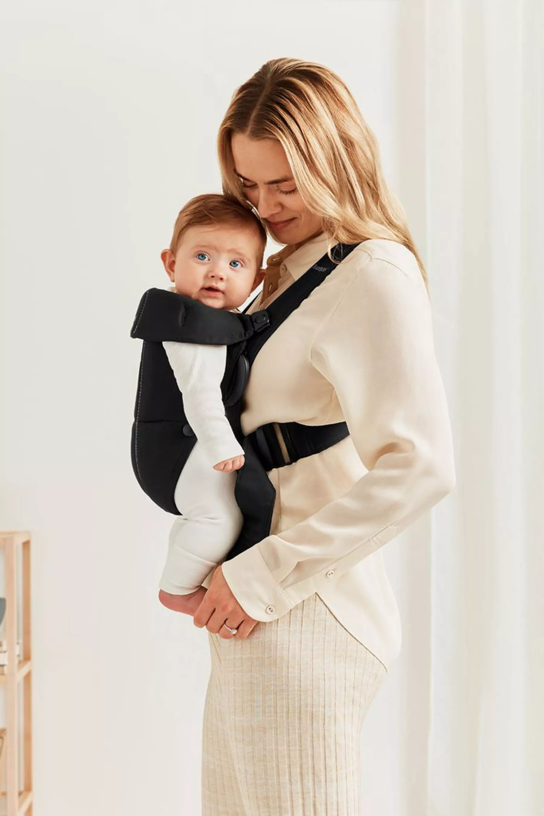 Carry your baby comfortably in the BABYBJÖRN Baby Carrier Mini. This small, easy-to-use baby carrier can be put on quickly for short baby-wearing sessions and is the perfect size for the early months when your newborn needs to be held close.