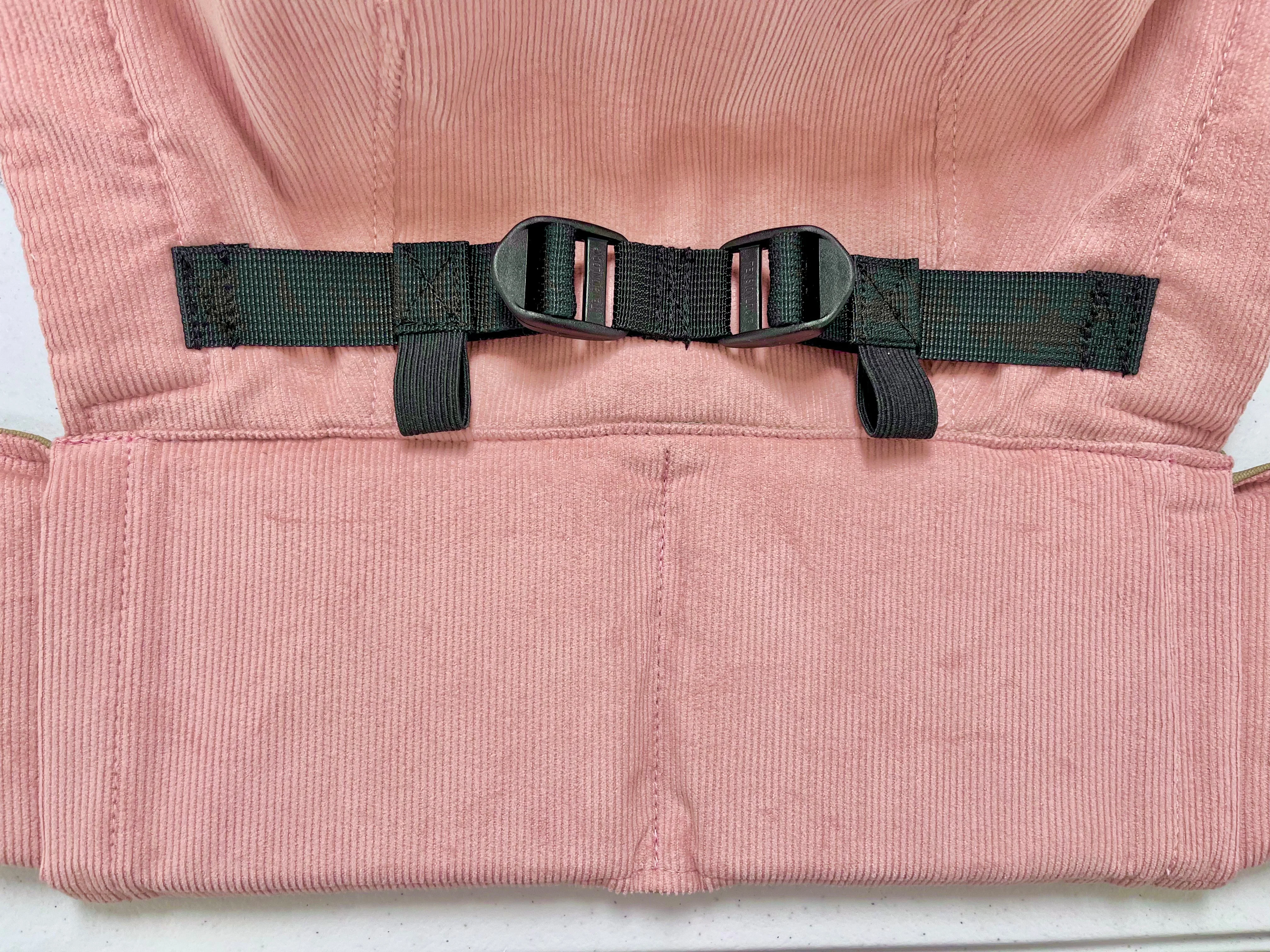 -Has a width adjustable base with a buckle mechanism that allows the parent to cinch the base of the carrier to different widths to allow very young babies to be legs out, with proper positioning and without an insert.
