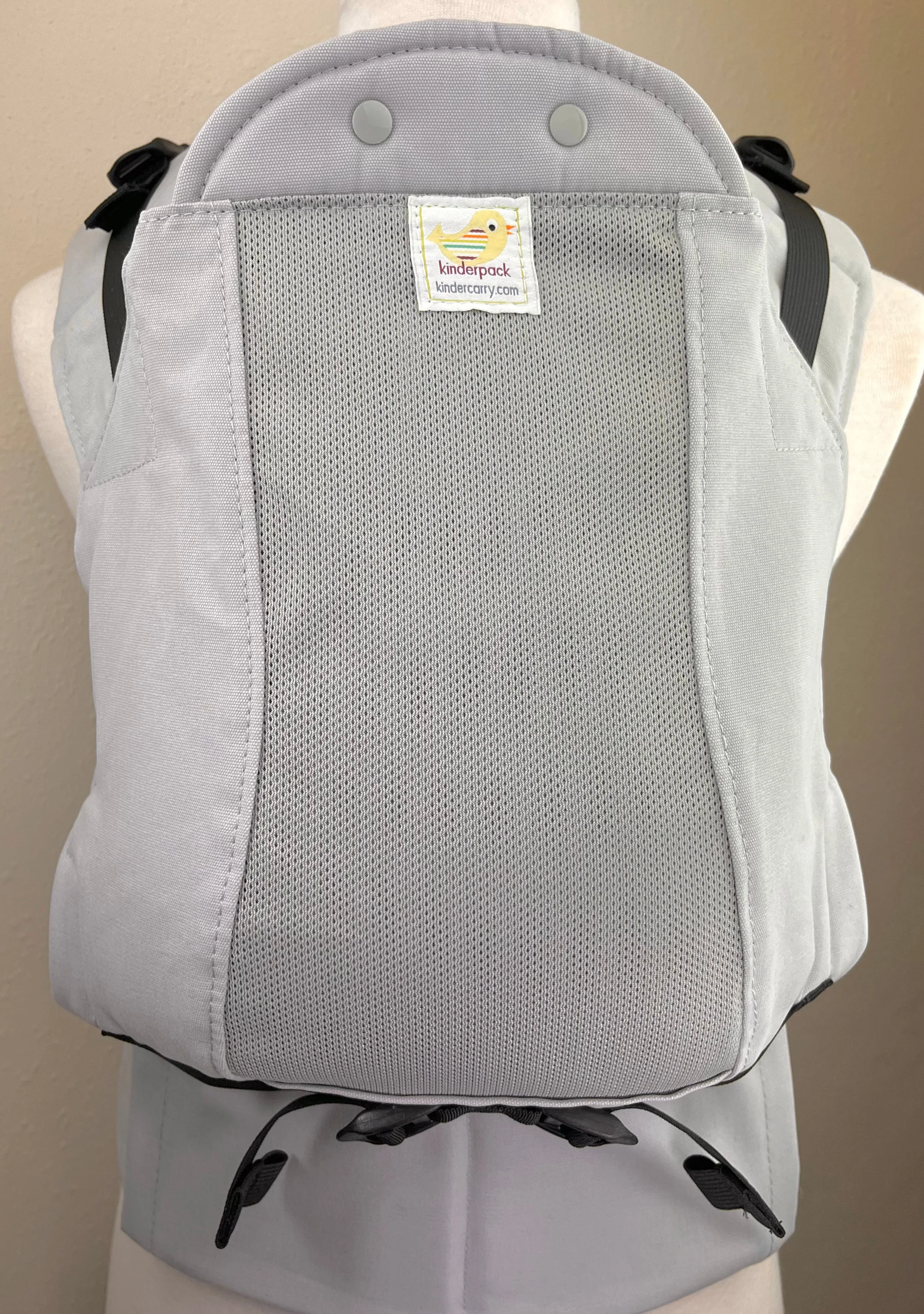 Cloud is a light gray. It is a great solid neutral for those who like minimalism, or for those who want a blank canvas to accessorize with coordinating drool pads. This Kinderpack has been constructed with light gray brushed canvas on straps and side panels of the body, with a matching light grey Koolnit center. All Koolnit Kinderpacks include a hideaway koolnit sleep/privacy shade, this one is light gray to match.