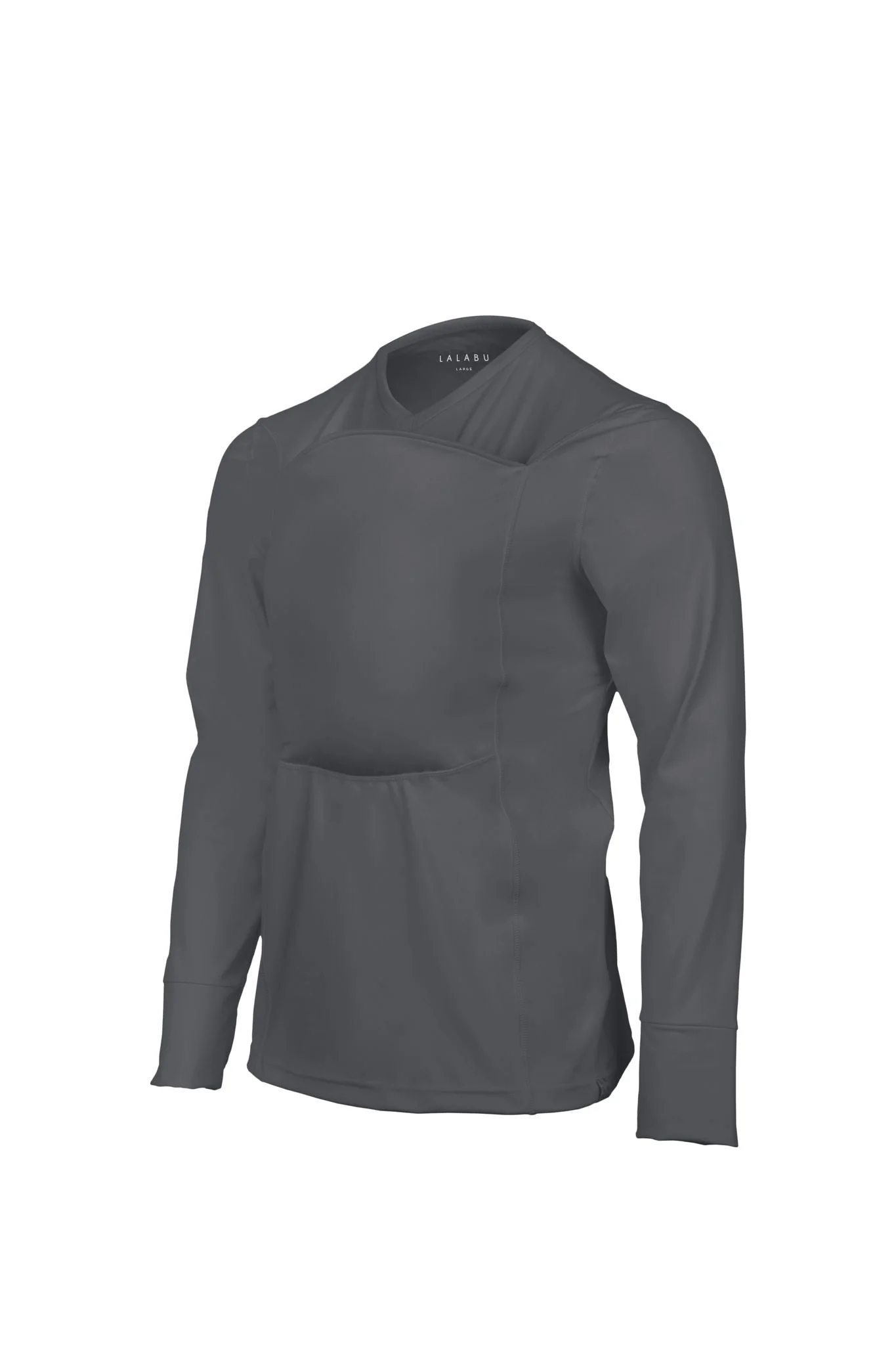 A premium activewear shirt tailored with long sleeves. Seamlessly designed with thumb holes to keep your sleeves from bunching and a great alternative to gloves for those cooler days. Same fabric and supportive structure as original The Dad Shirt. Engineered to comfortably and safely hold your babe-newborn to 15 pounds.