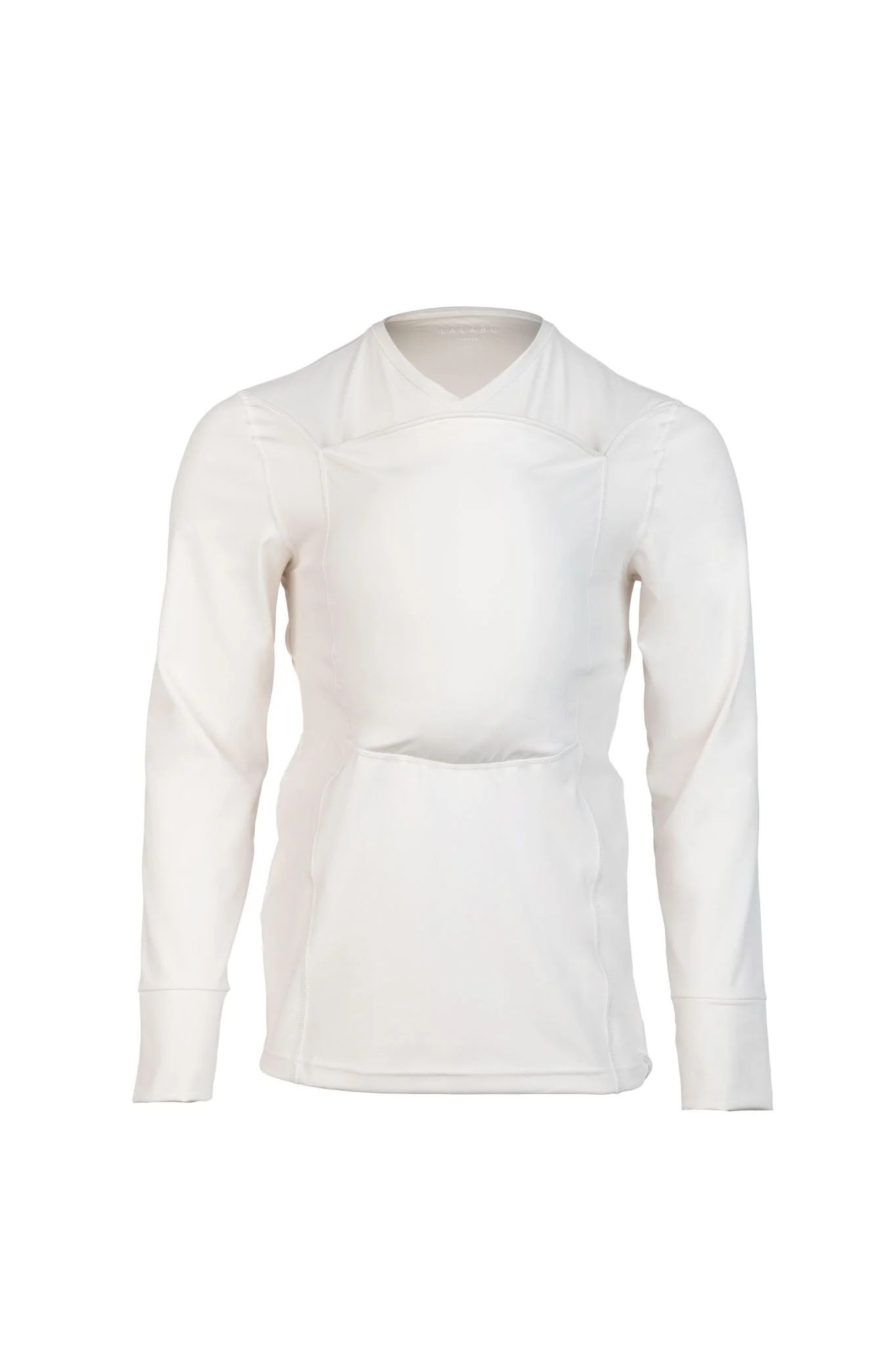 A premium activewear shirt tailored with long sleeves. Seamlessly designed with thumb holes to keep your sleeves from bunching and a great alternative to gloves for those cooler days. Same fabric and supportive structure as original The Dad Shirt. Engineered to comfortably and safely hold your babe-newborn to 15 pounds.