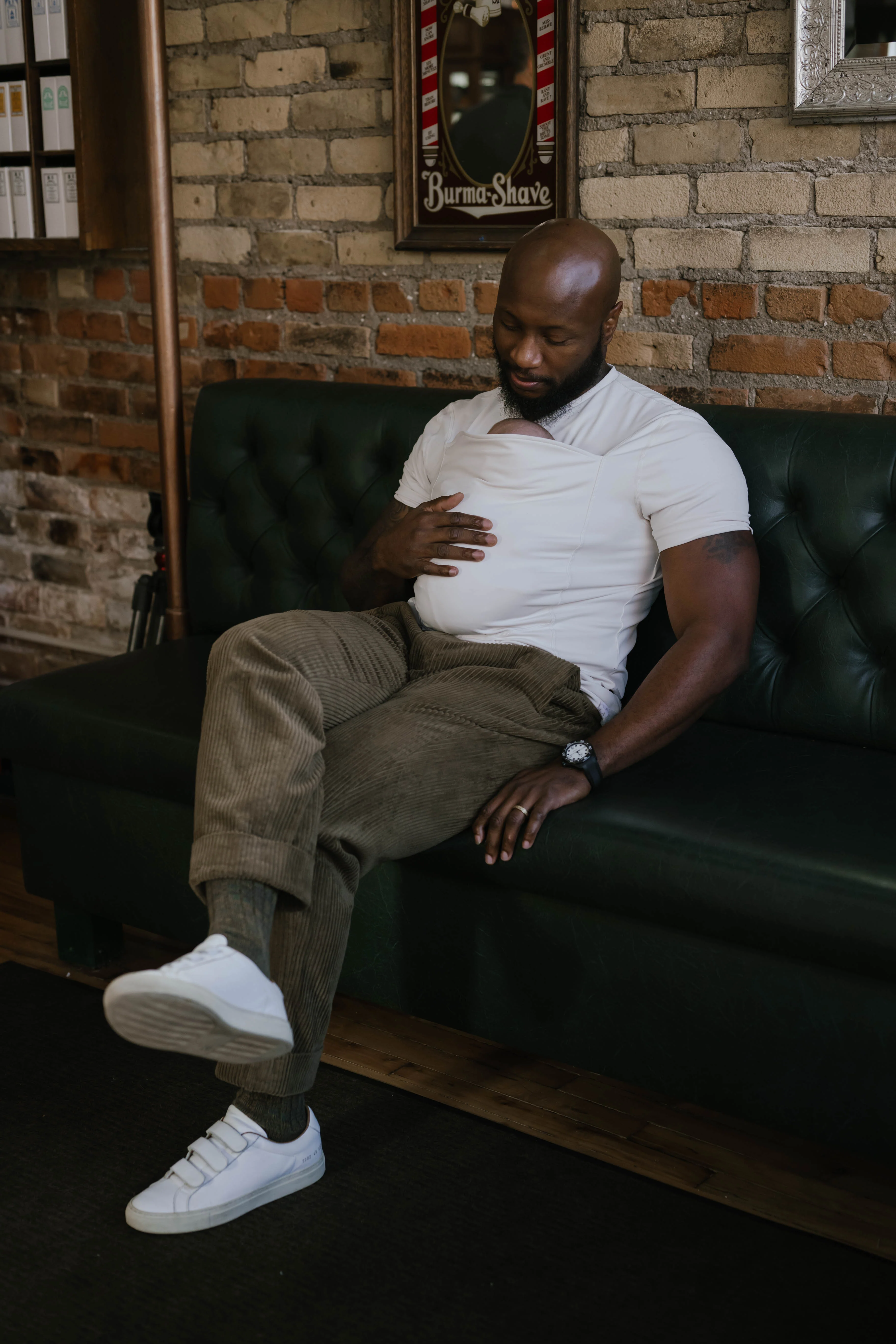Made for dads who want to keep babywearing simple. Bonding made easy, no complicated wrapping or buckling here. Just put on your shirt, tuck your new babe into the front pouch, and feel both freedom and closeness. No more cramped arms, tired back, or worry. Keep ‘doing you’ and give your wifey that much needed break. Made with premium breathable fabric, tailored to fit close and keep your babe safe. The supportive infant pouch extender grows with baby and can be secured with sewn-in magnets when not in use. Can be worn as a shirt once baby grows out of it.