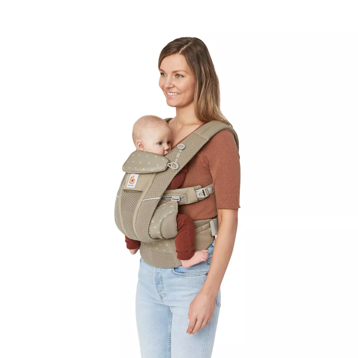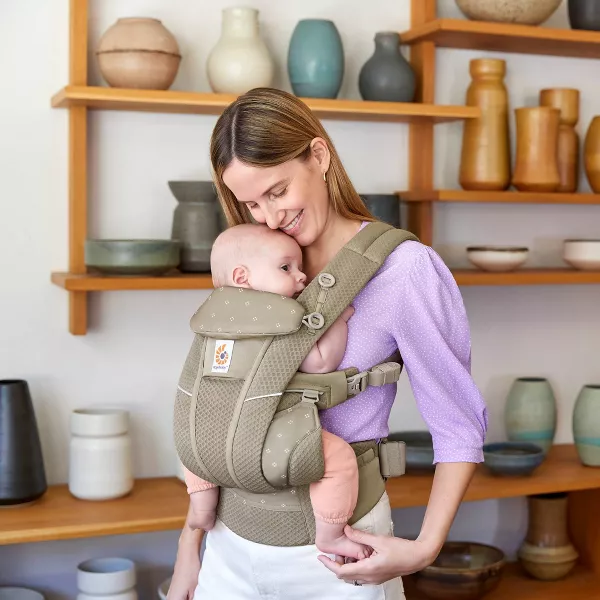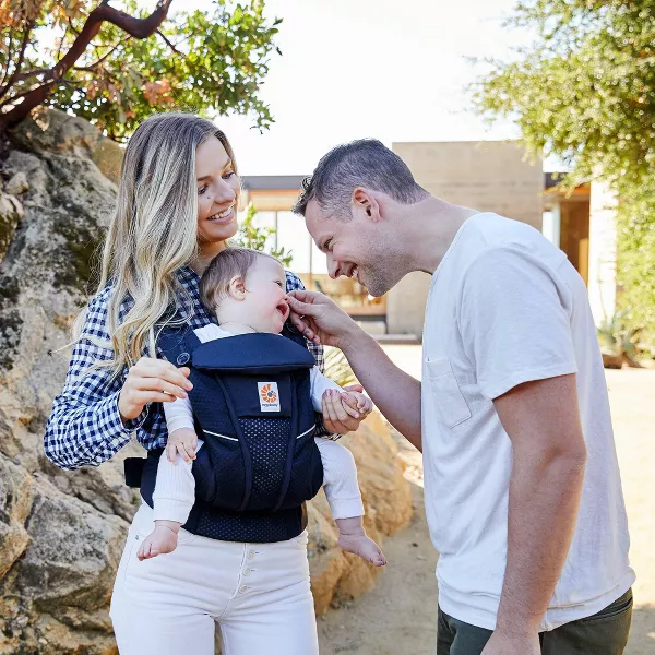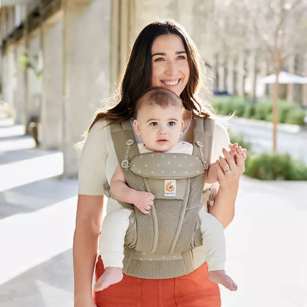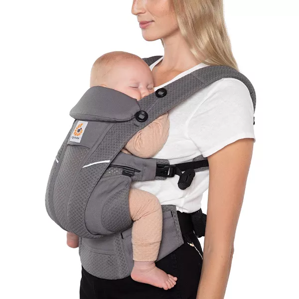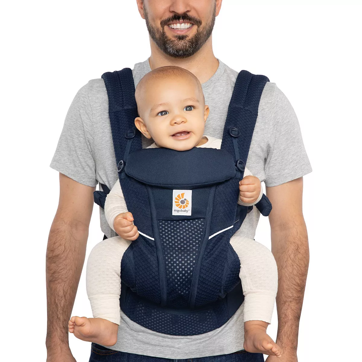 The adjustable Omni Breeze Baby Carrier by Ergobaby is designed with SoftFlex® mesh to maximize airflow and keep you and your baby cool and dry all day. Ergonomically grows from newborn to toddler and provides four comfortable carrying positions.