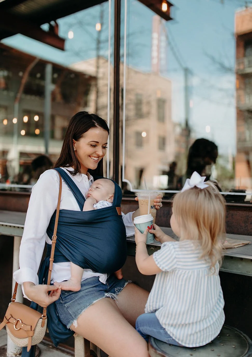 Our no-roll hemline and unique 2-way stretch (stretch for baby but stays snug around mama) makes it easier to put on and helps it stay in place for all day wearing. Beautiful rich colors, a vegan leather tag, and the perfect fit make our wrap not only functional but stylish.
