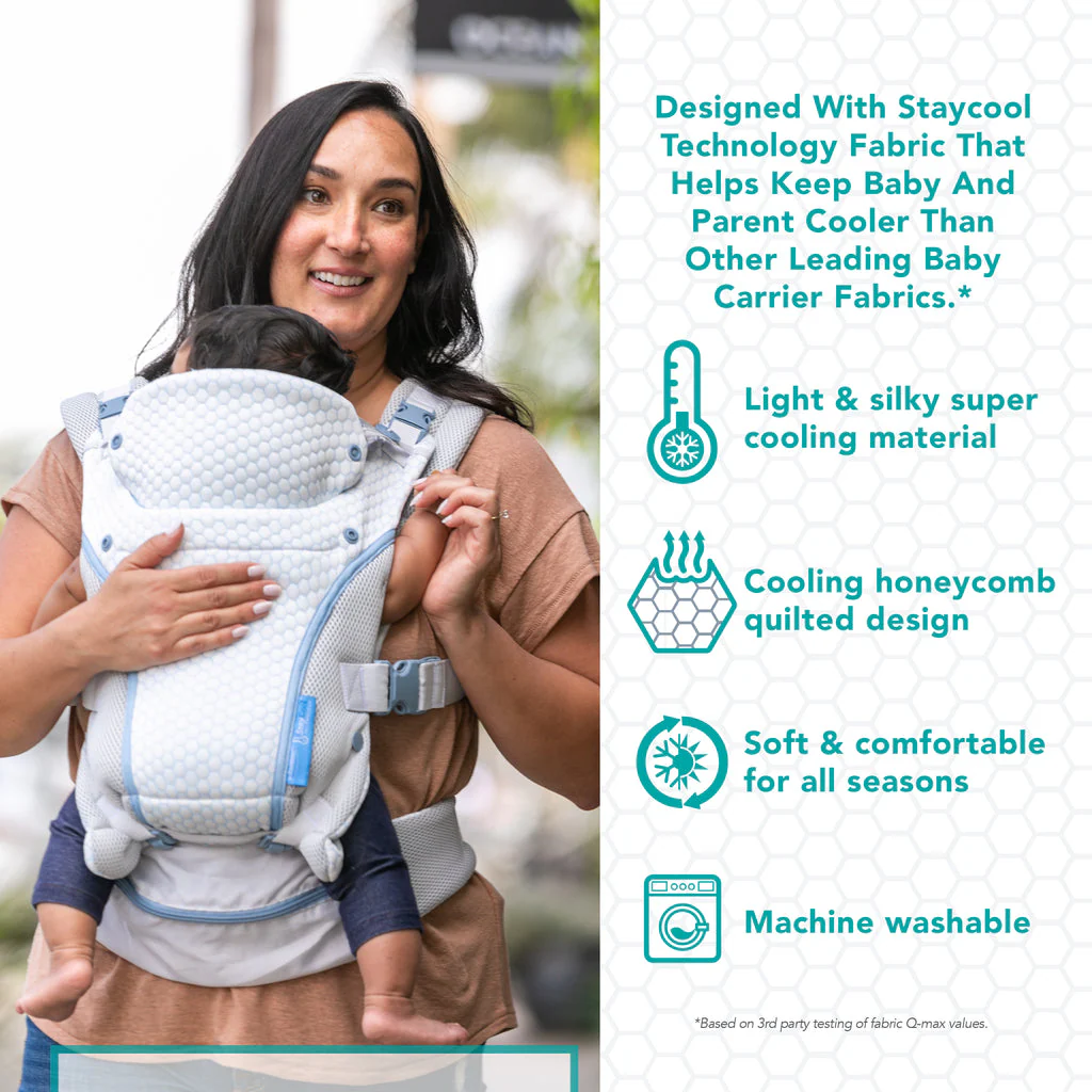 - Cooling technology fabric keeps baby and parent close at the perfect temperature