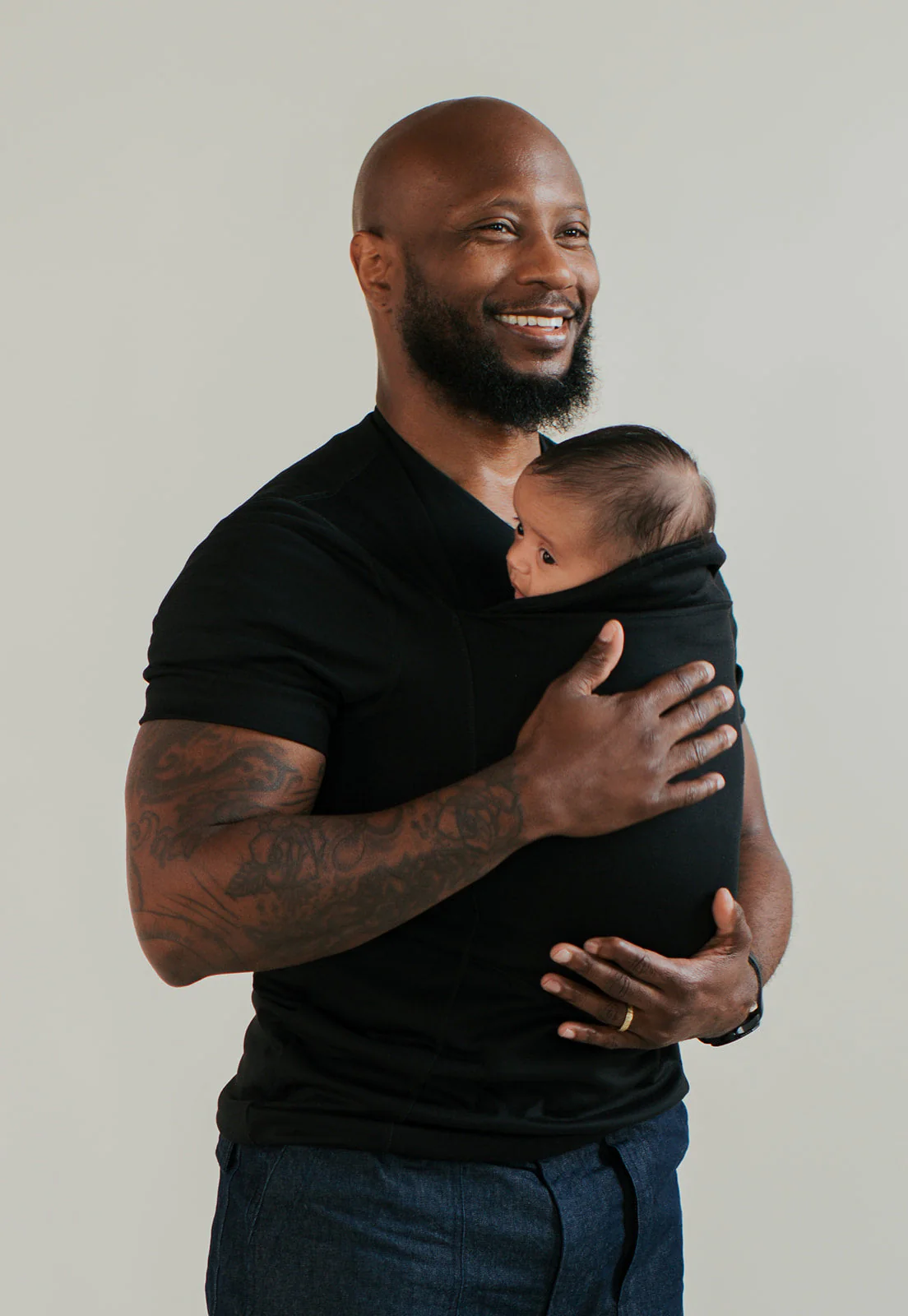 Made for dads who want to keep babywearing simple. Bonding made easy, no complicated wrapping or buckling here. Just put on your shirt, tuck your new babe into the front pouch, and feel both freedom and closeness. No more cramped arms, tired back, or worry. Keep ‘doing you’ and give your wifey that much needed break. Made with premium breathable fabric, tailored to fit close and keep your babe safe. The supportive infant pouch extender grows with baby and can be secured with sewn-in magnets when not in use. Can be worn as a shirt once baby grows out of it.