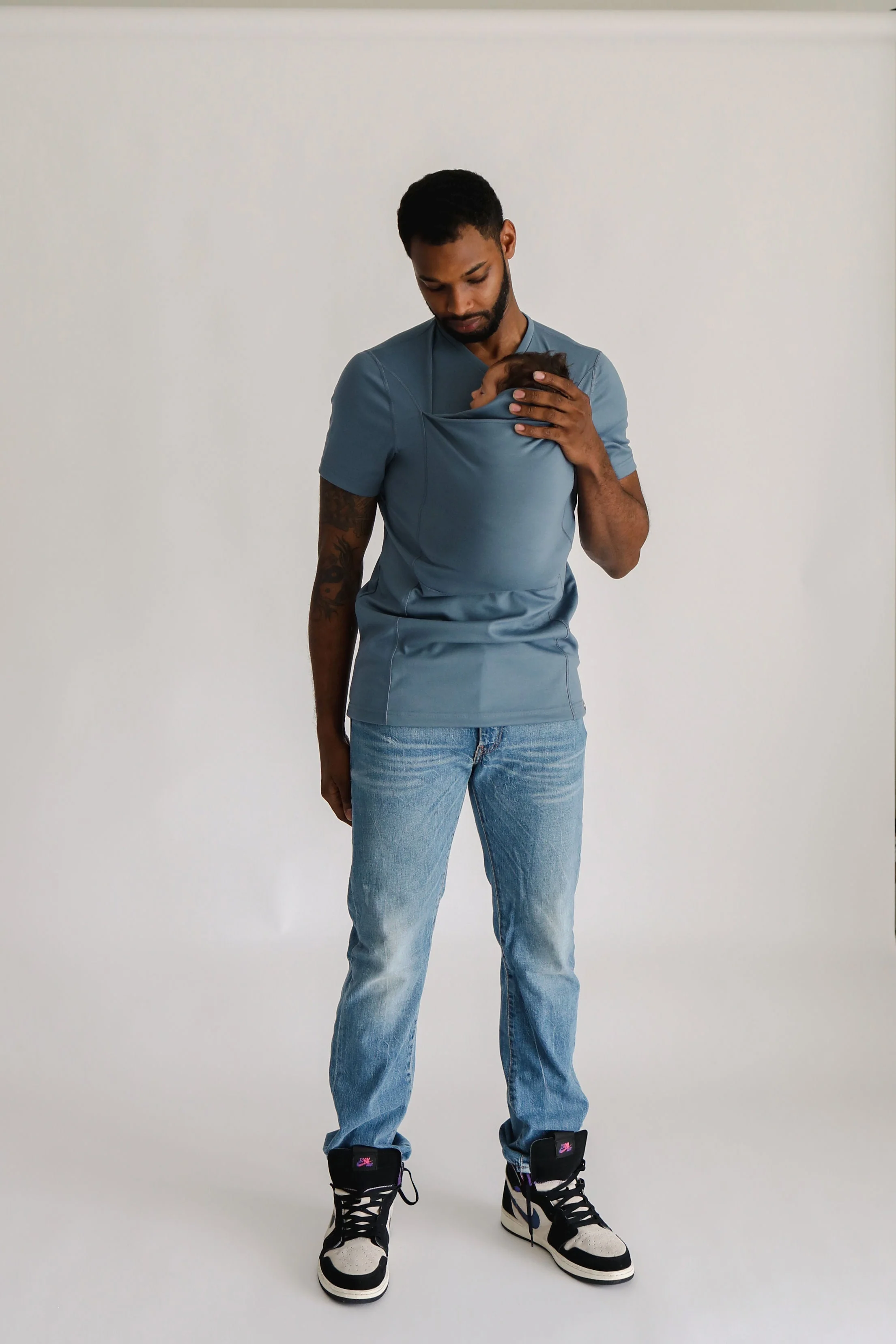 Made for dads who want to keep babywearing simple. Bonding made easy, no complicated wrapping or buckling here. Just put on your shirt, tuck your new babe into the front pouch, and feel both freedom and closeness. No more cramped arms, tired back, or worry. Keep ‘doing you’ and give your wifey that much needed break. Made with premium breathable fabric, tailored to fit close and keep your babe safe. The supportive infant pouch extender grows with baby and can be secured with sewn-in magnets when not in use. Can be worn as a shirt once baby grows out of it.