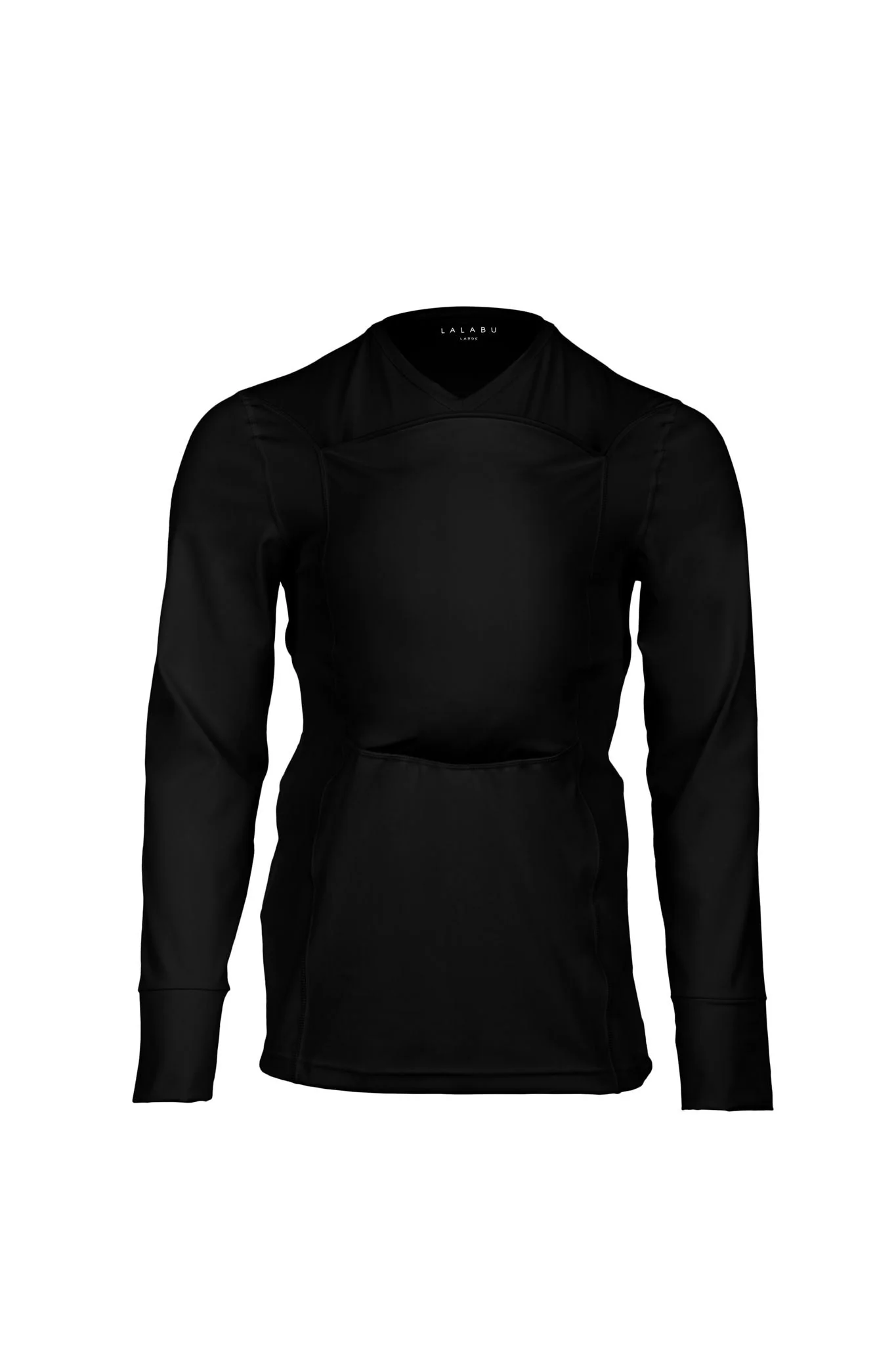 A premium activewear shirt tailored with long sleeves. Seamlessly designed with thumb holes to keep your sleeves from bunching and a great alternative to gloves for those cooler days. Same fabric and supportive structure as original The Dad Shirt. Engineered to comfortably and safely hold your babe-newborn to 15 pounds.