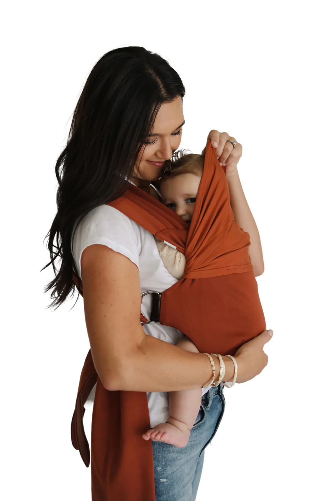 Get the beauty and softness of a wrap without the complexity. Forget the rigid bulkiness of a structured carrier, yet keep the stability and form. Clip at the waist, put your arms through the straps, tuck in your sweet baby, and go.
