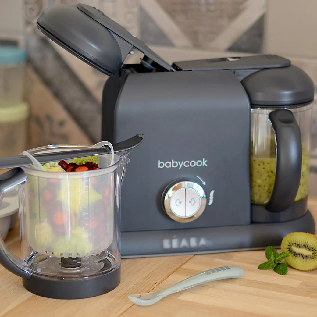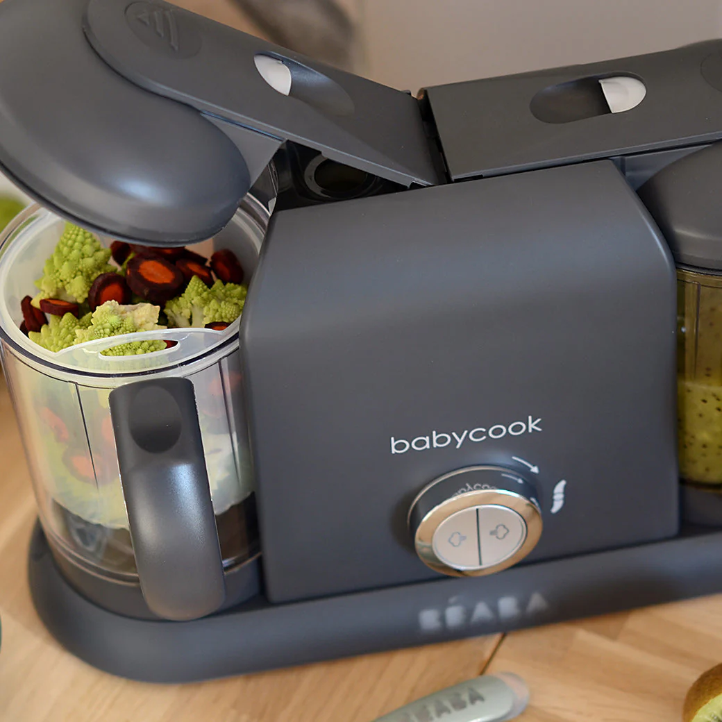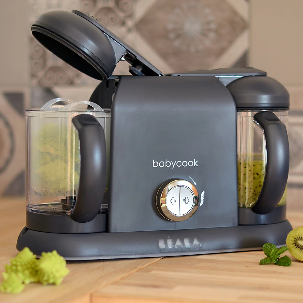 The BEABA Babycook DUO baby Food Maker lets you steam and puree fresh baby food right in your kitchen. It can also defrost and reheat leftovers or frozen meals for convenience. Designed to make baby food for all stages in your baby's life.