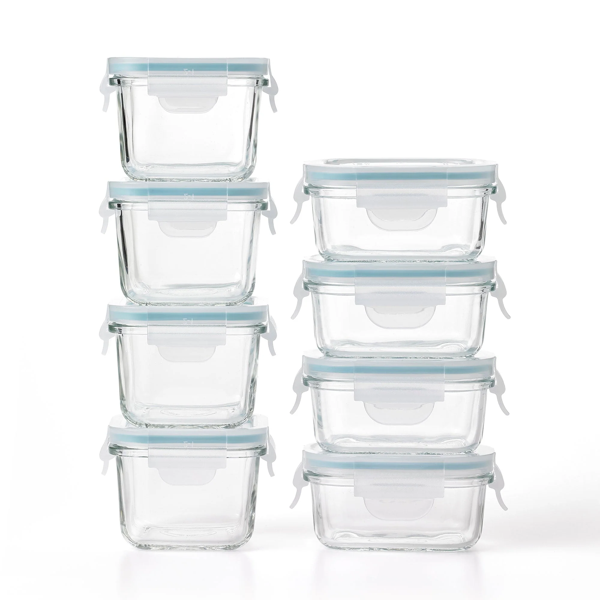 Glasslock Mini 5 and 7 Ounce Tempered Glass Food Storage Container Set, 8 Pieces