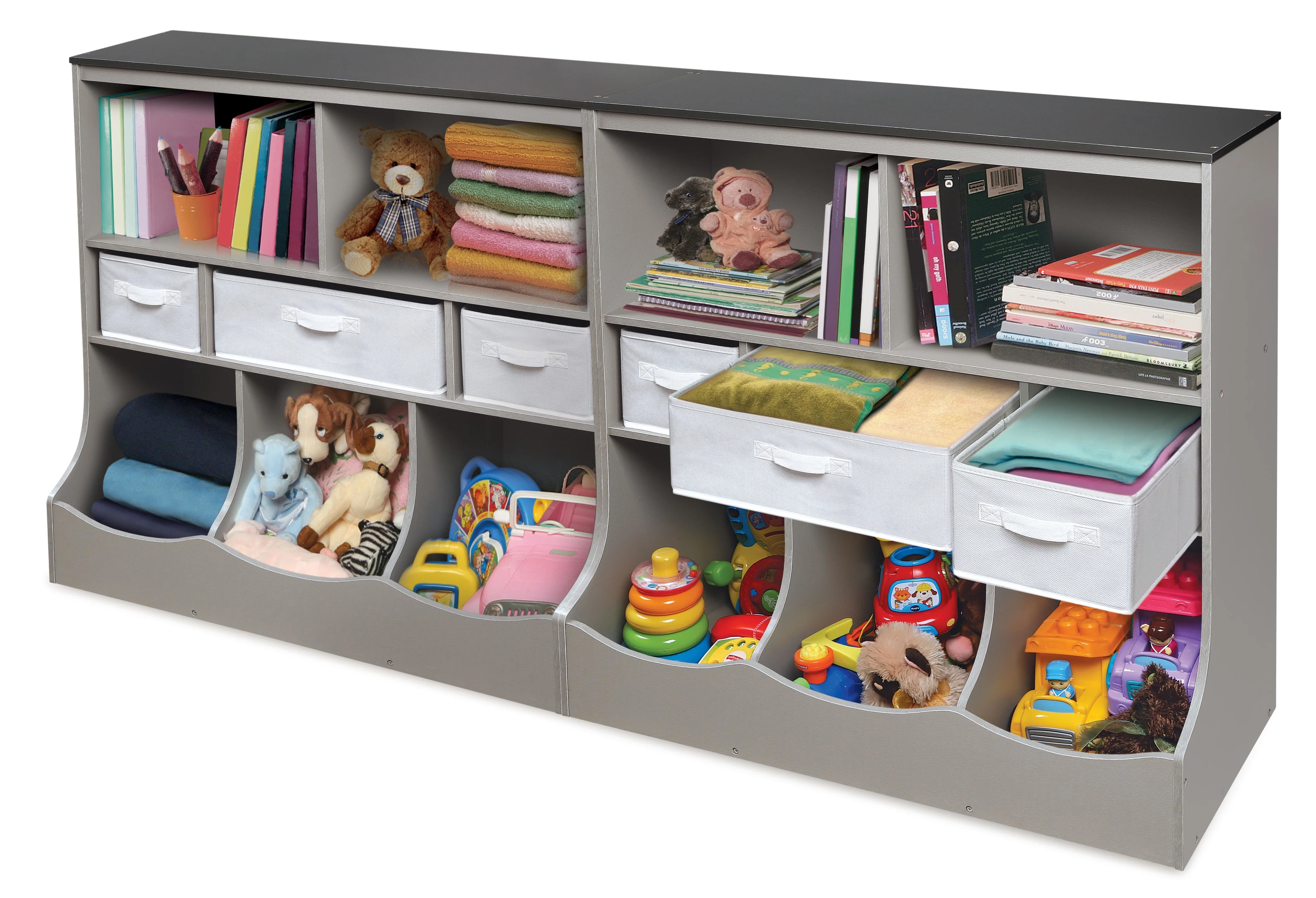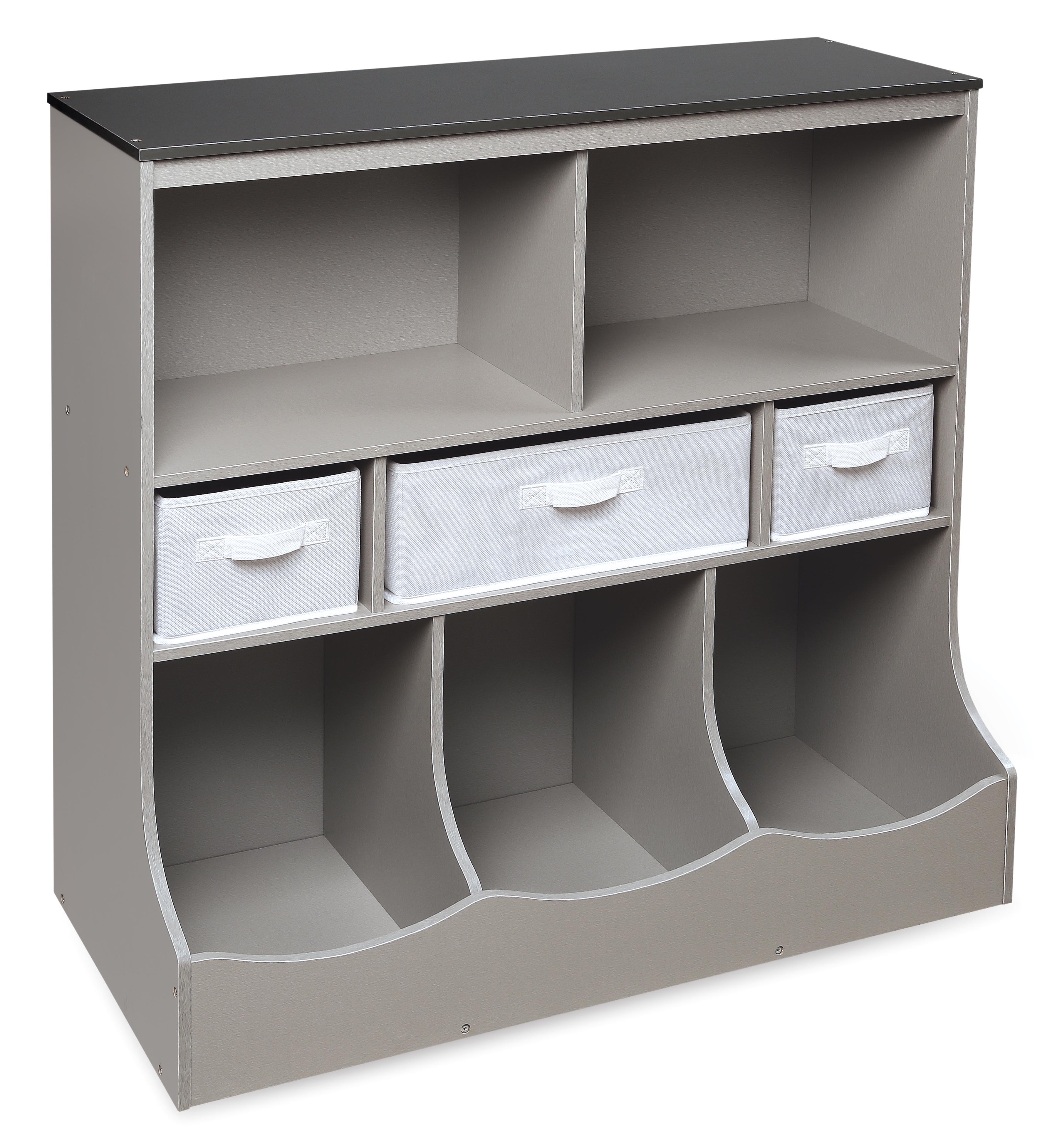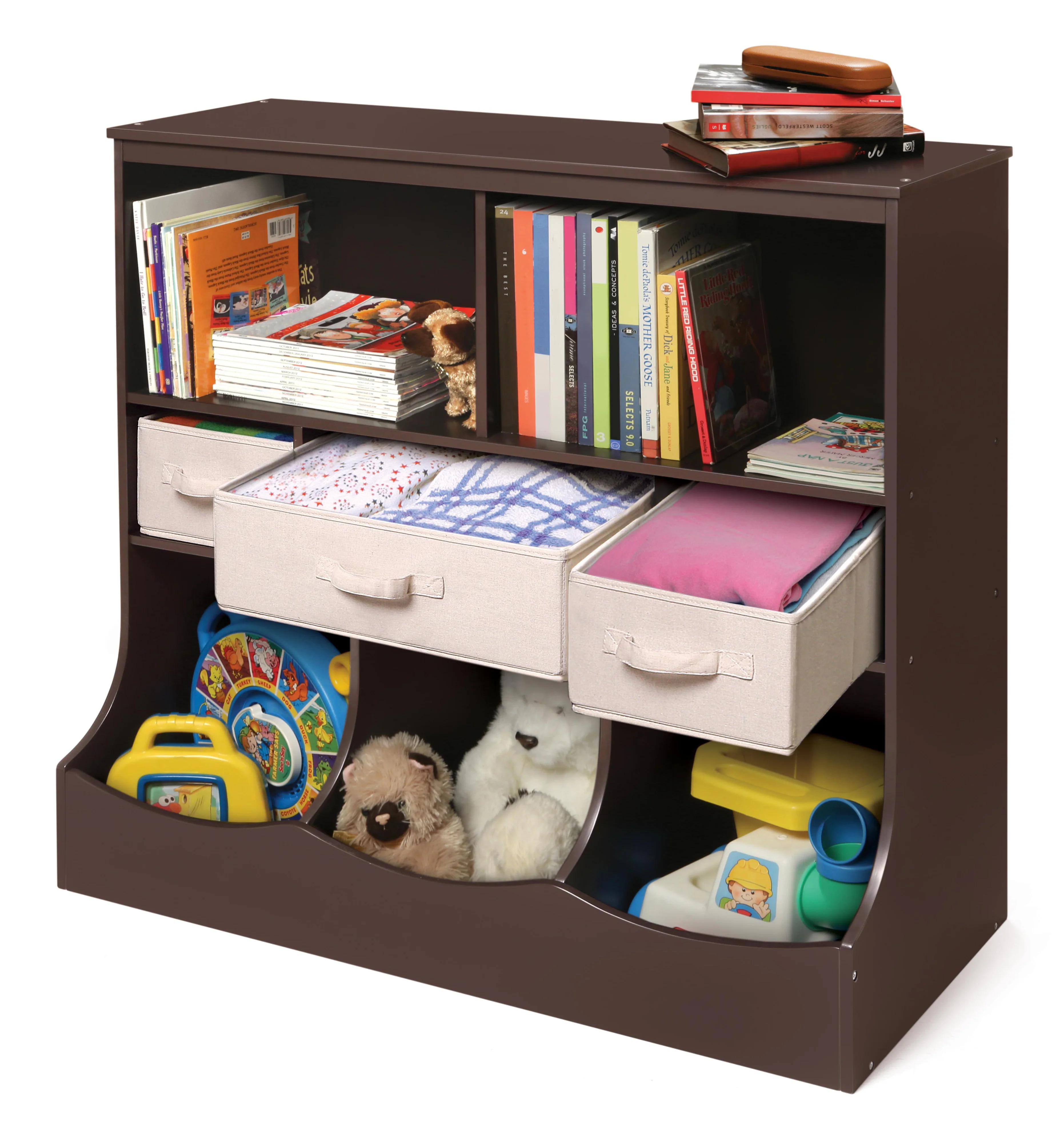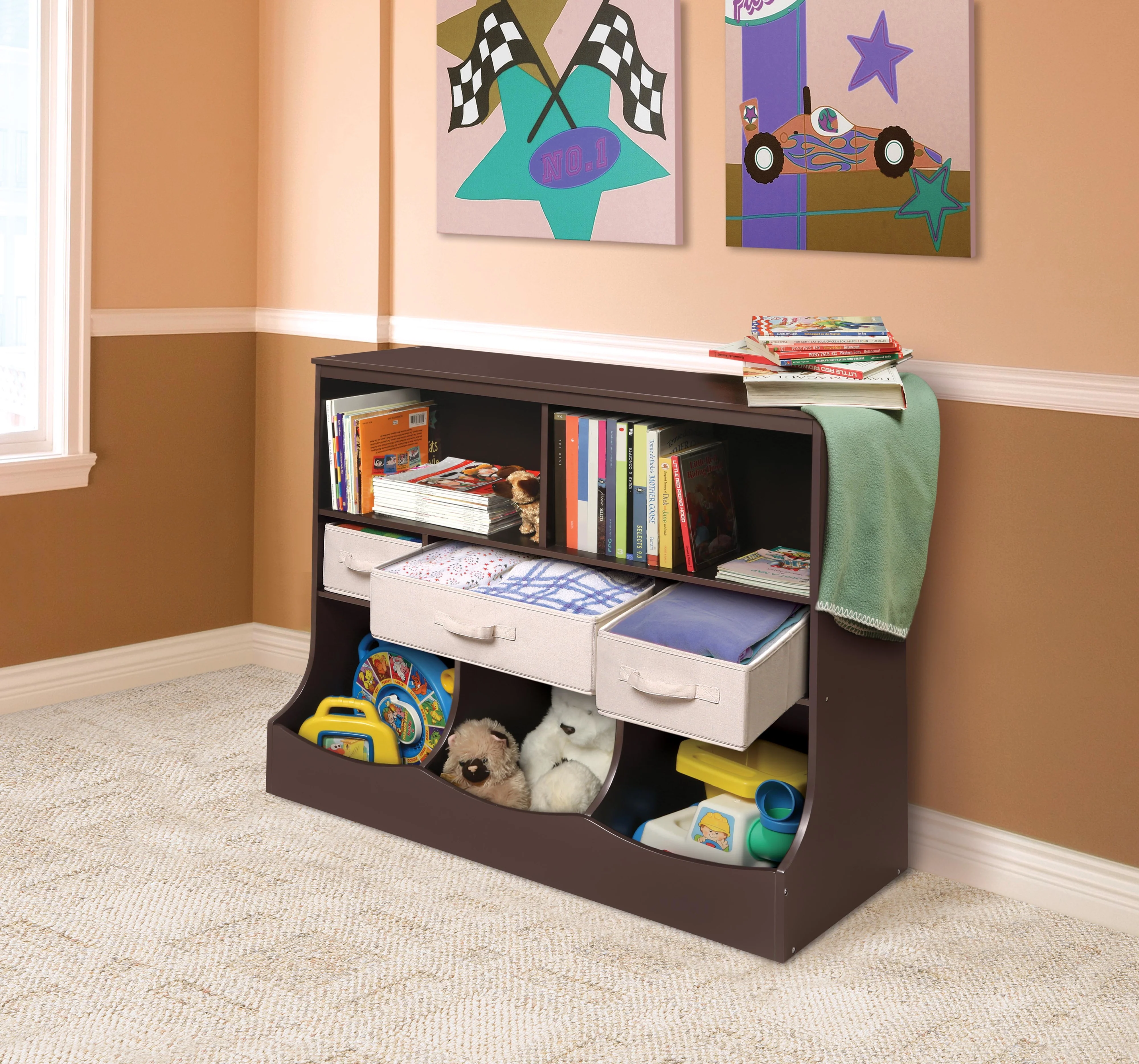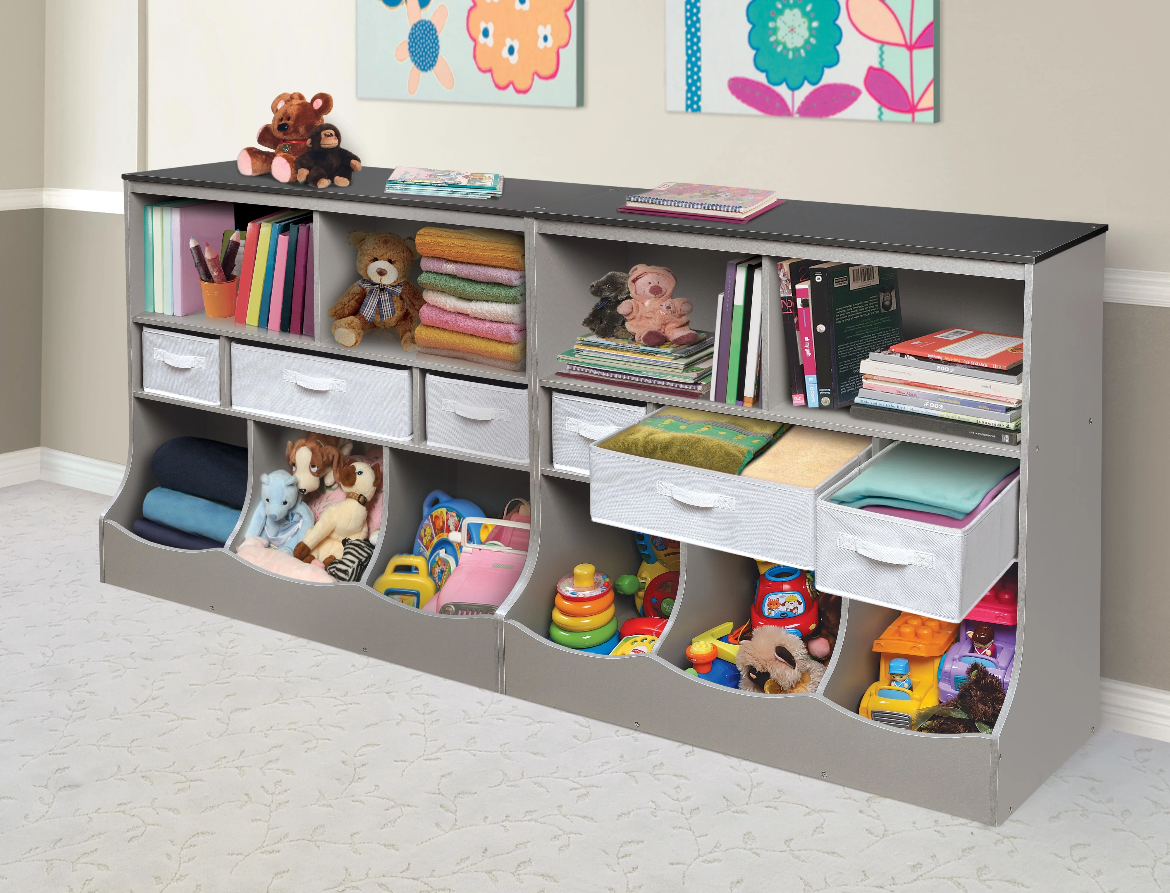 Badger Basket's orderly Combo Bin Storage Unit pulls together toys, school books, crafts, sports gear and more. Use the shelves, baskets, and bins to gain control of a variety of items in any room of the house, particularly messy playrooms and foyers.