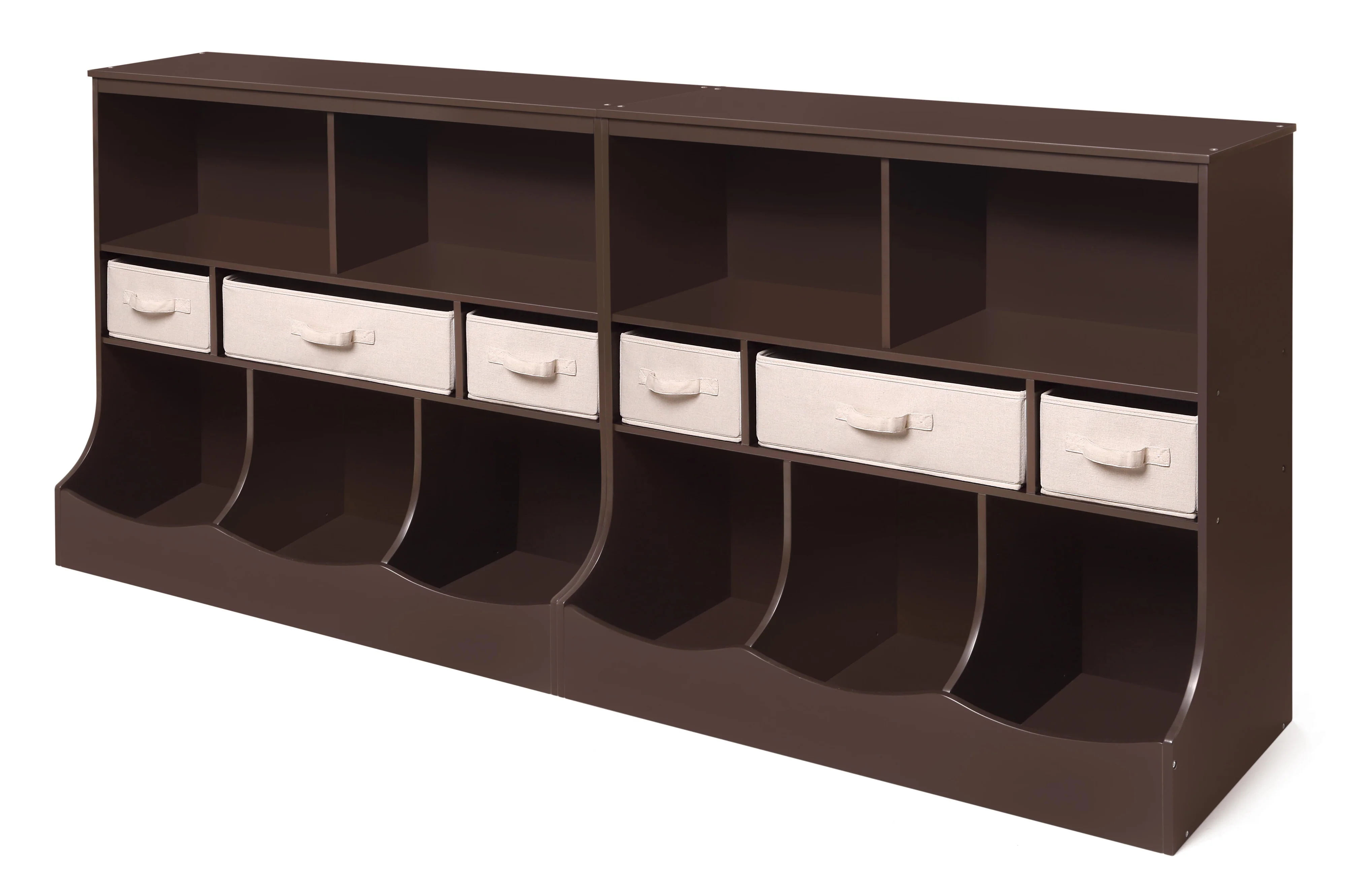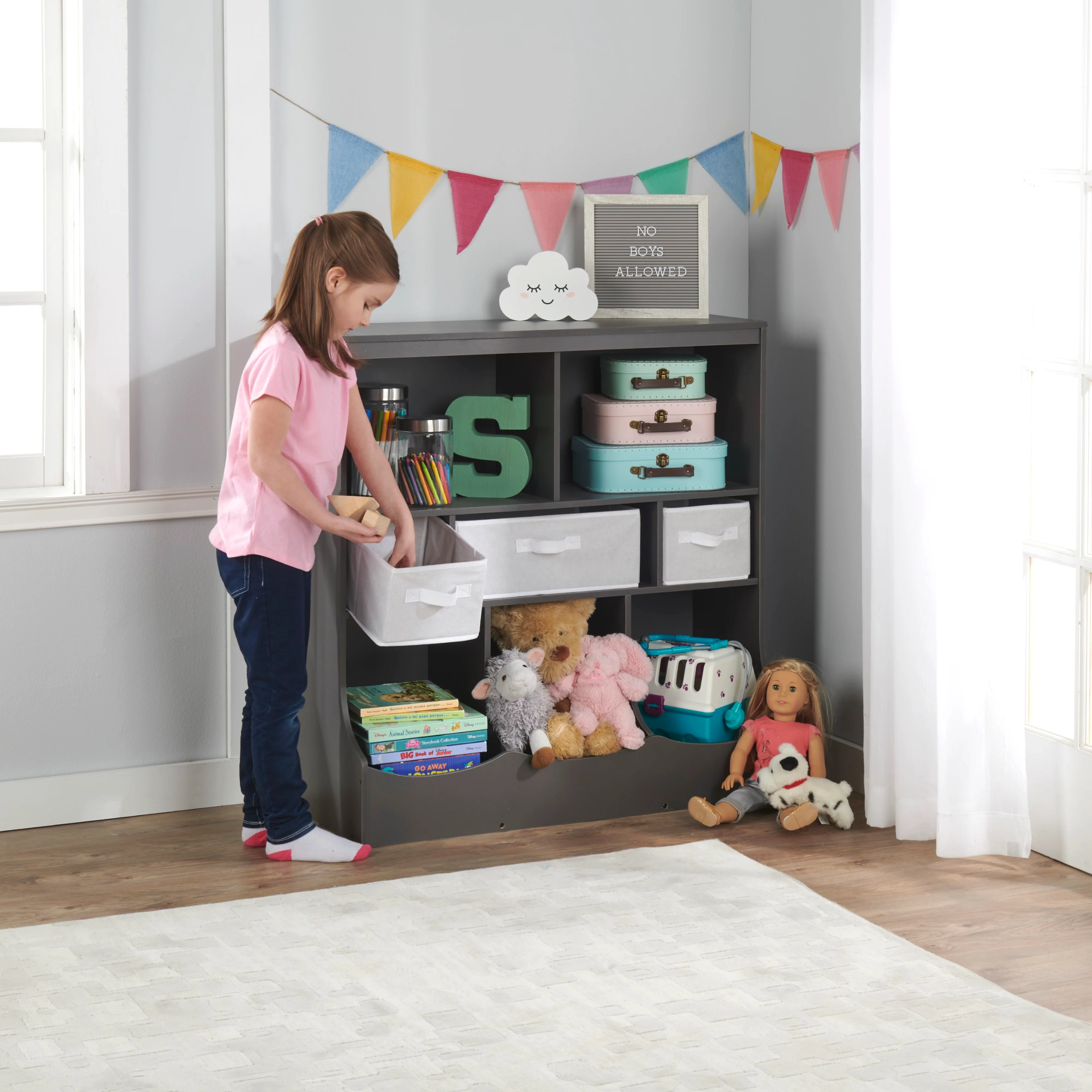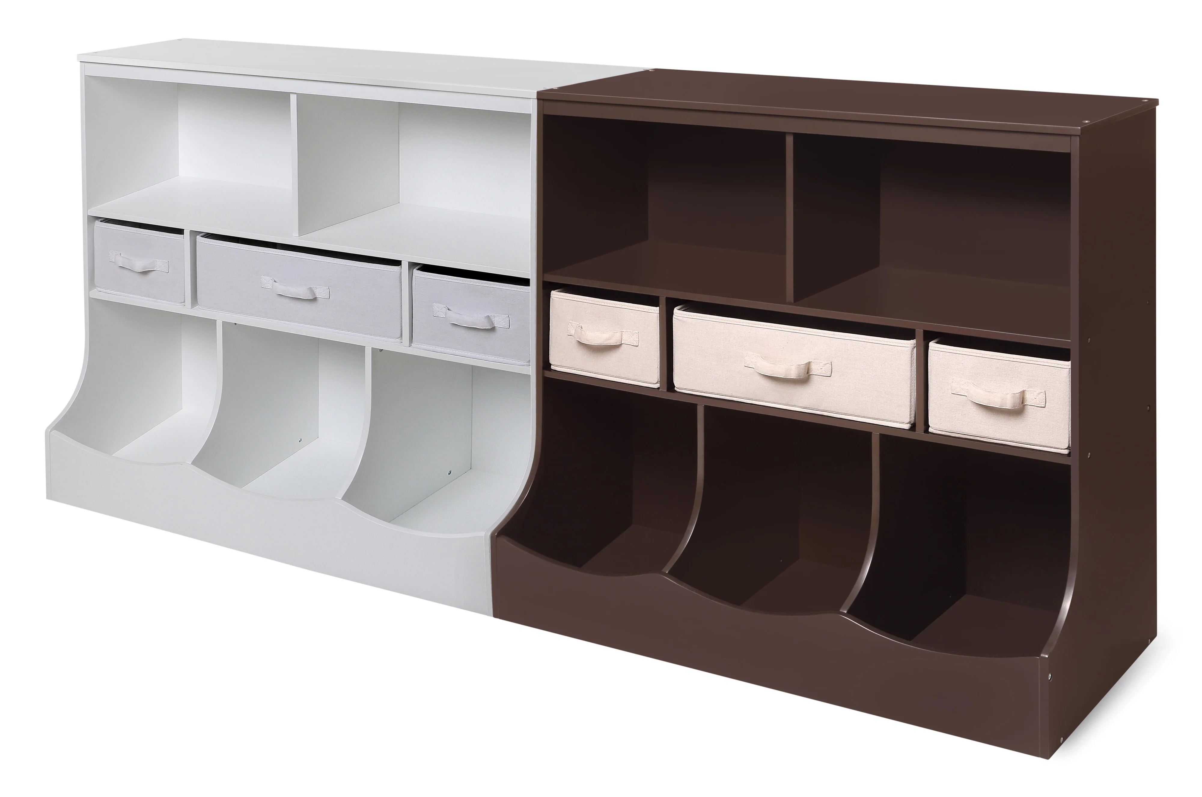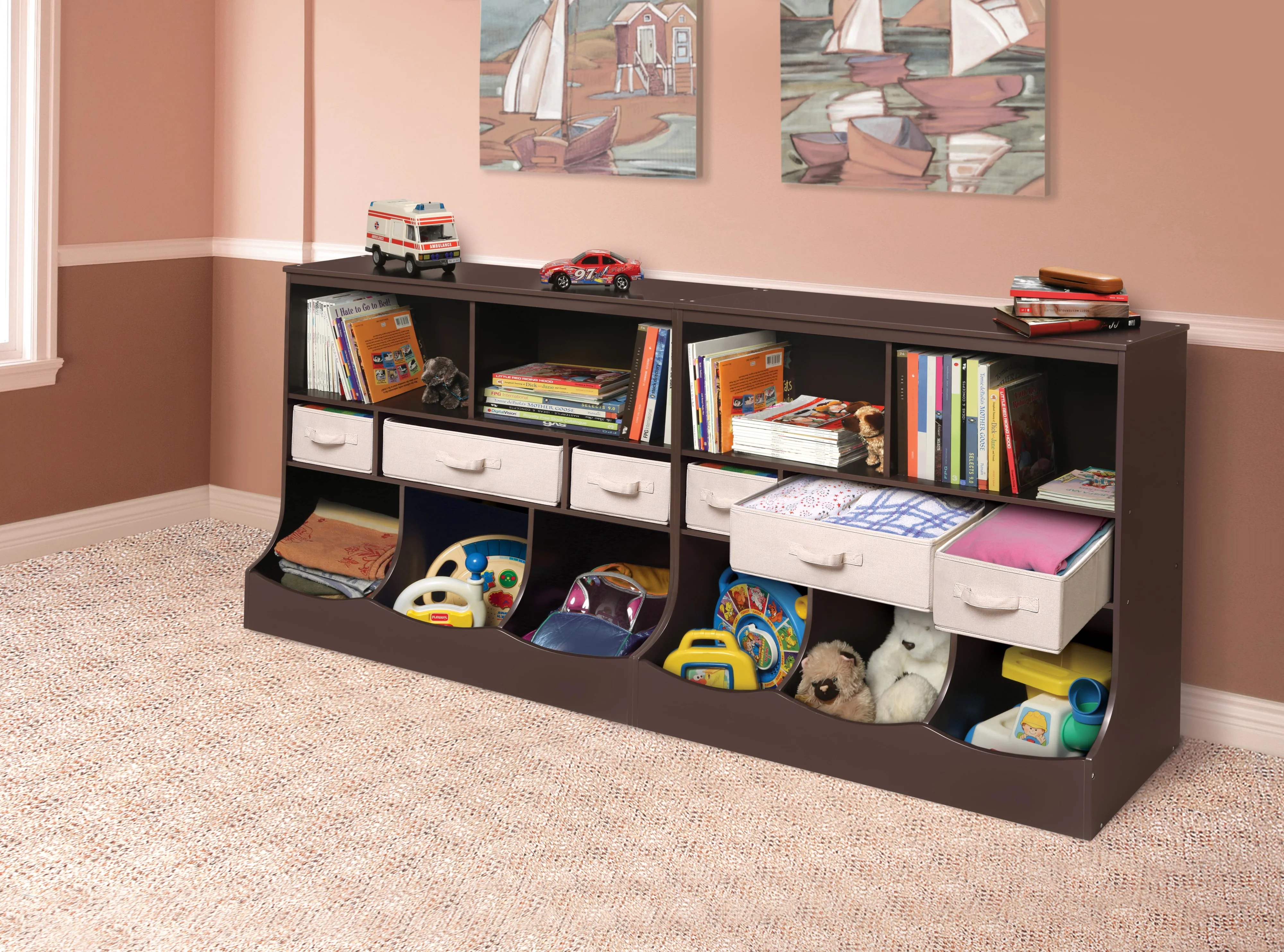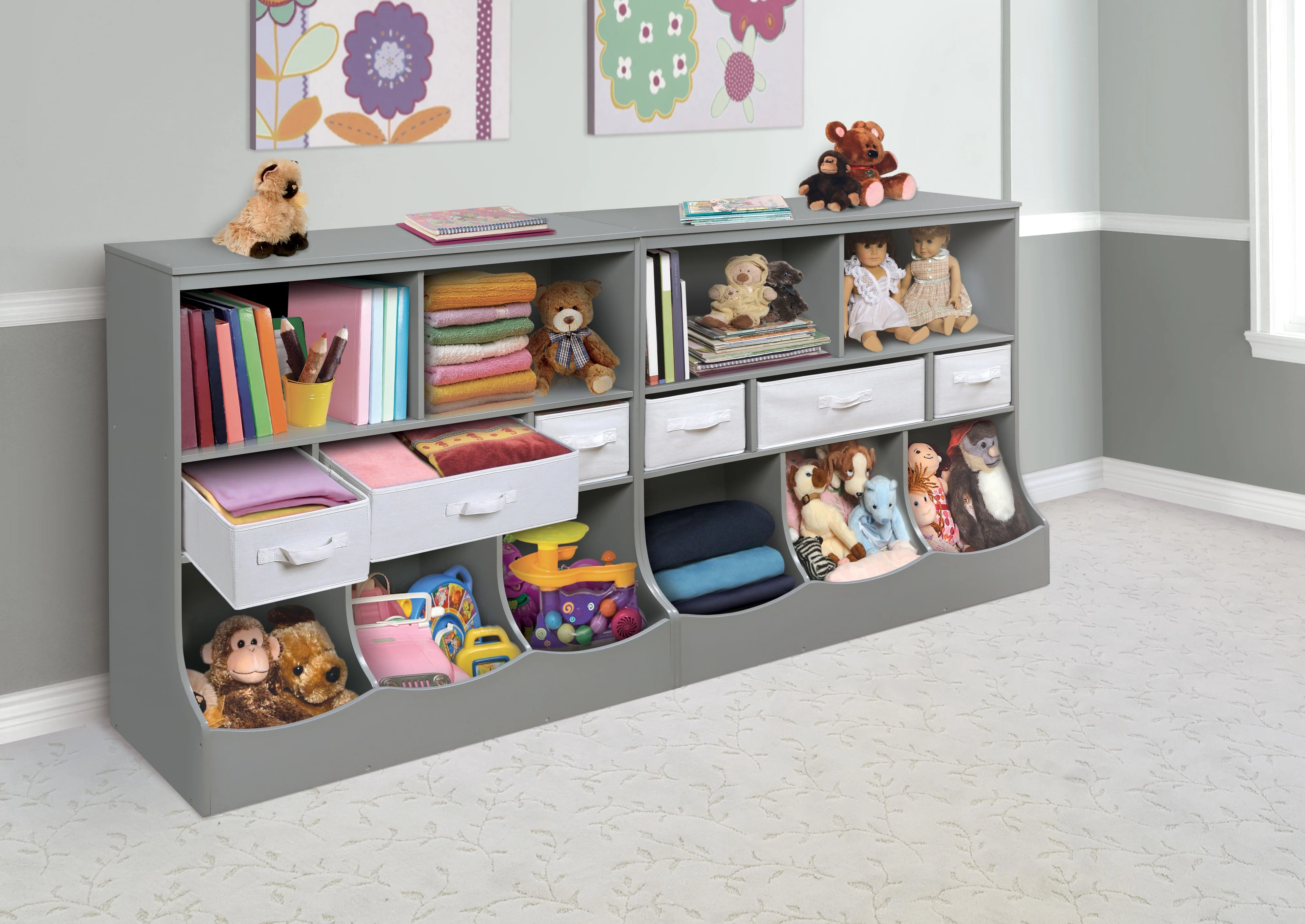 Badger Basket's orderly Combo Bin Storage Unit pulls together toys, school books, crafts, sports gear and more. Use the shelves, baskets, and bins to gain control of a variety of items in any room of the house, particularly messy playrooms and foyers.