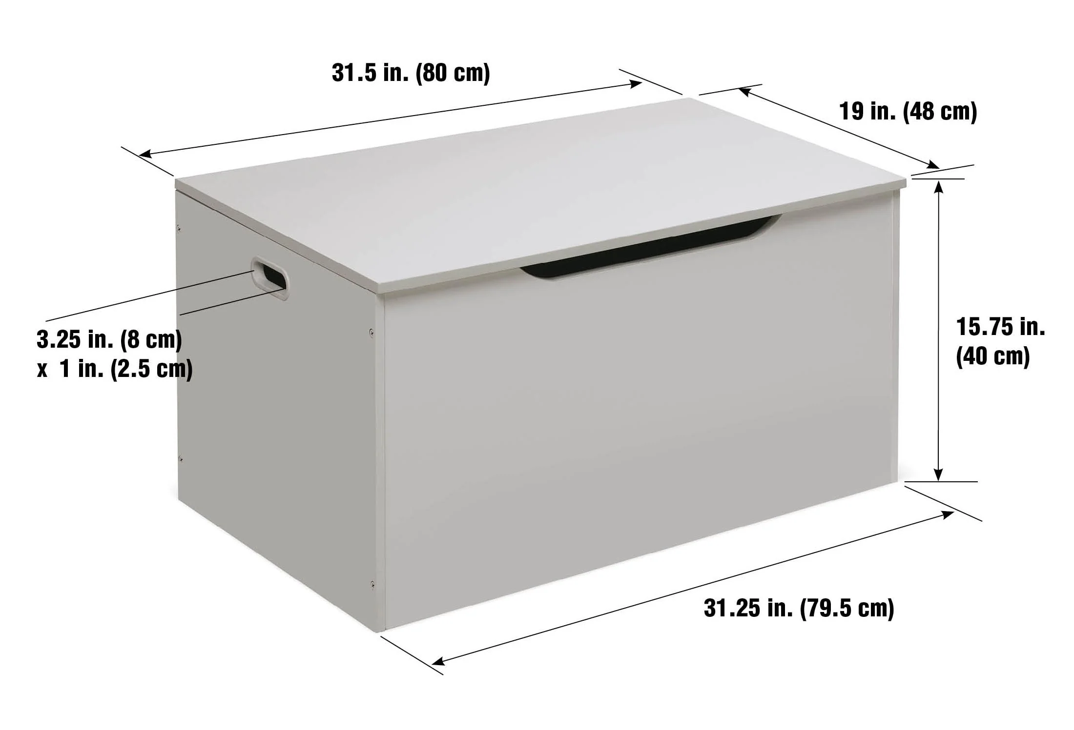 - Reinforced side handles. Handle opening on the front under the lid is a convenient way to lift up the top, and prevent injury when shutting it.