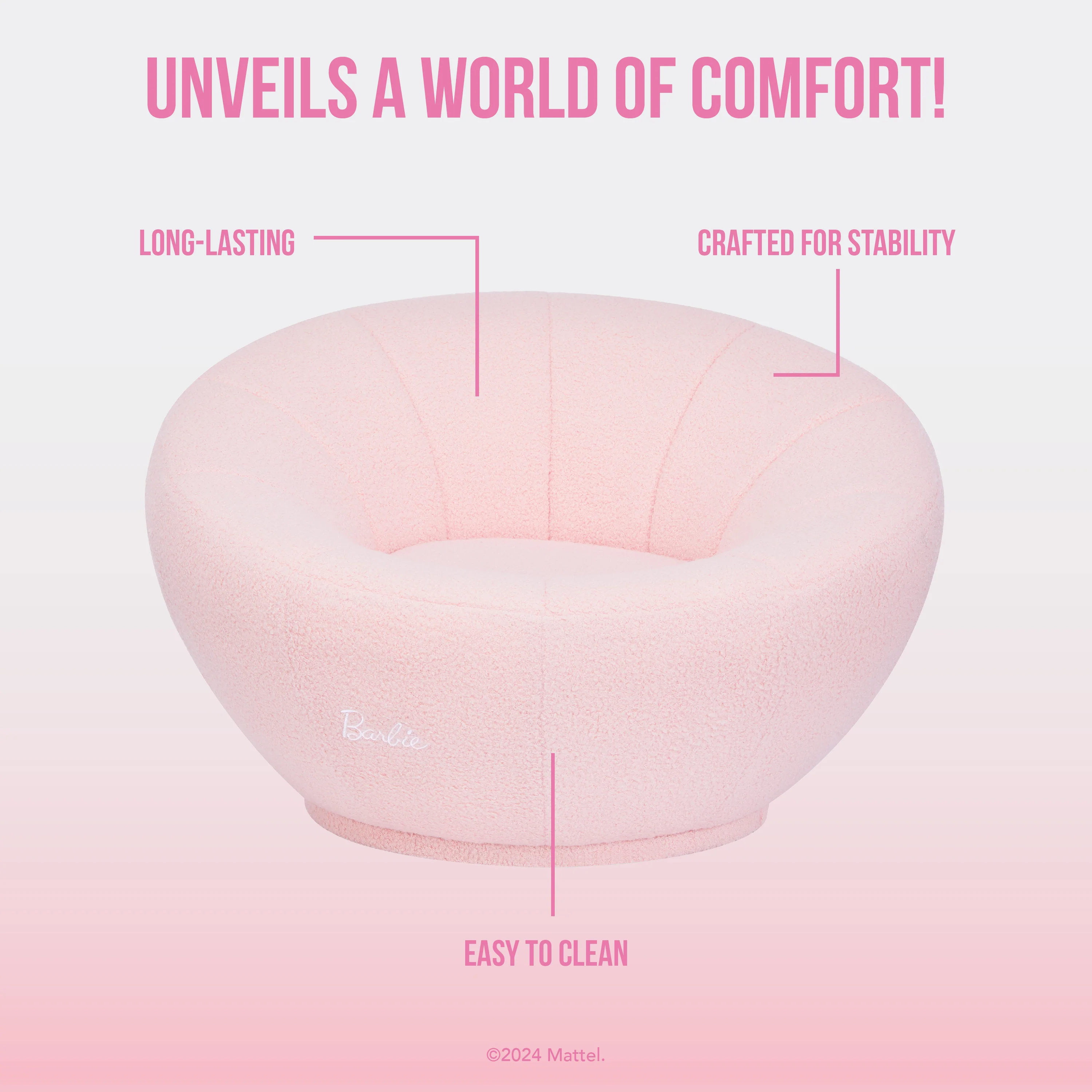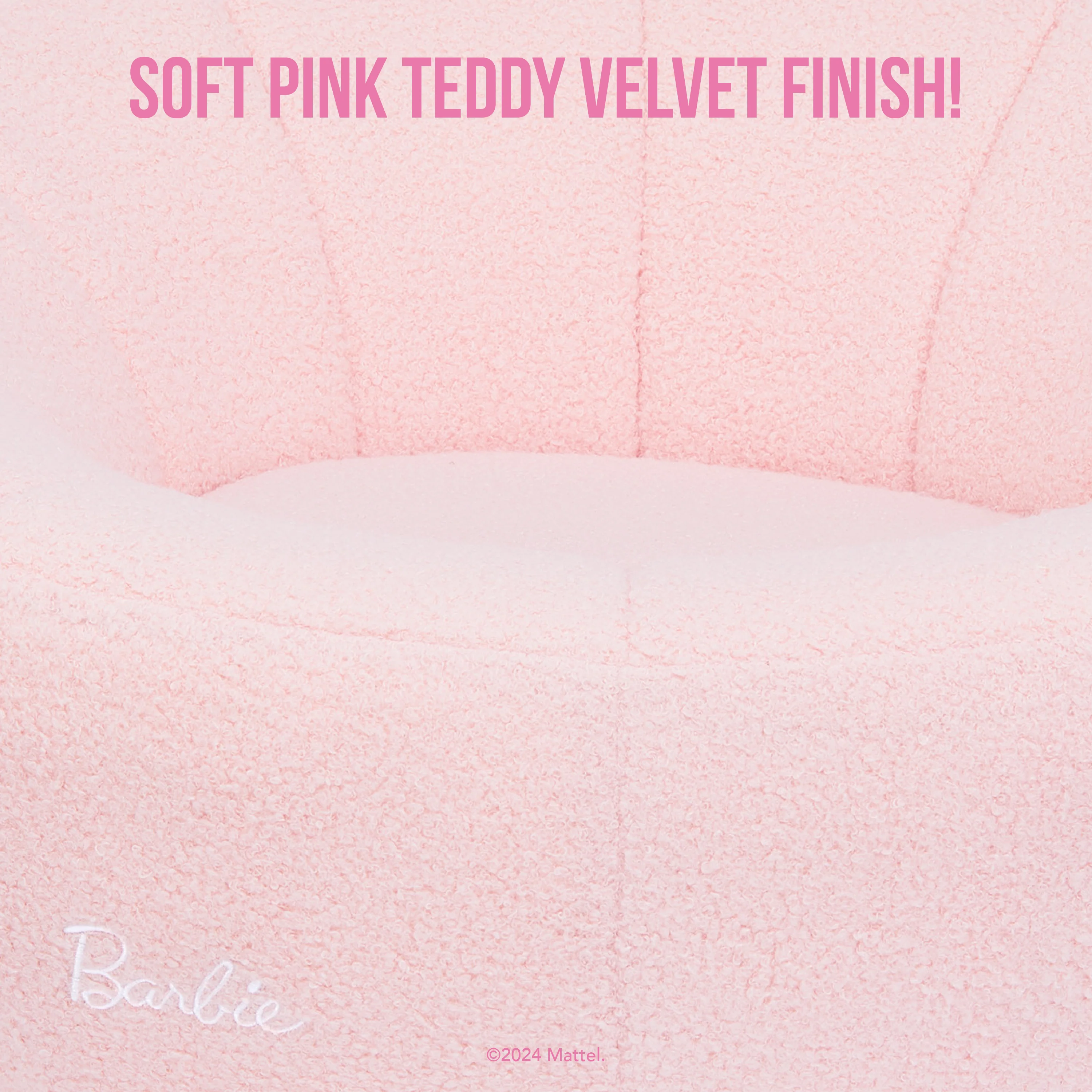 - SOFT & COZY: The soft Pink Teddy Velvet finish makes the I’m Unstoppable Kids Sofa more than just furniture - but a statement of Barbie-inspired luxury and joy!