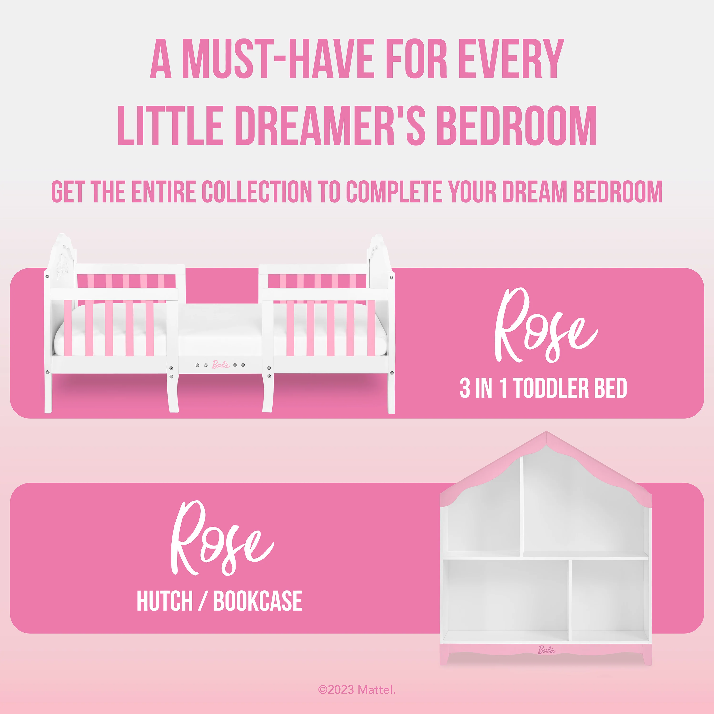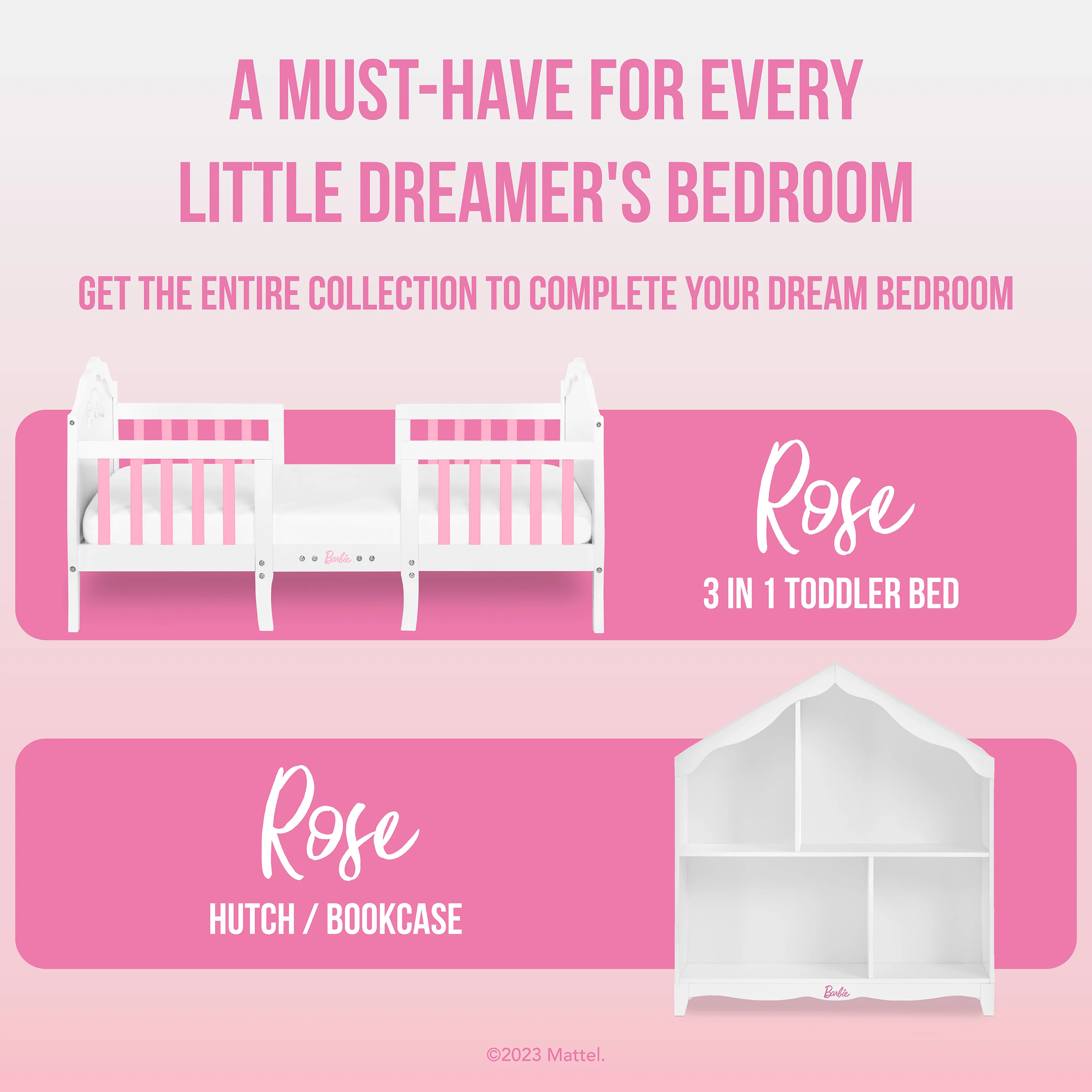 A must-have for every little dreamer's bedroom - the place where all the sparkle happens! It’s time to make your dream space a reality, with the Barbie�?Evolur Rose Hutch/Bookcase, where storage meets whimsy in a delightful display. Artfully crafted with a unique Barbie design, this piece inspires imagination in your little one during playtime & storytime. With 4 spacious shelves to stack everything from dolls and toys, to books & keepsakes, this versatile hutch/bookcase invites the “child decorator�?to emerge! Add the Barbie Evolur Rose Hutch/Bookcase to your child’s bedroom, to create a quiet, comfortable space where they lose themselves in the pages of a good book, and let their dreams grow! The Barbie Evolur Rose Hutch/Bookcase adds a touch of fun to any space as it comes in both a classic white finish and a pleasing pink & white finish.