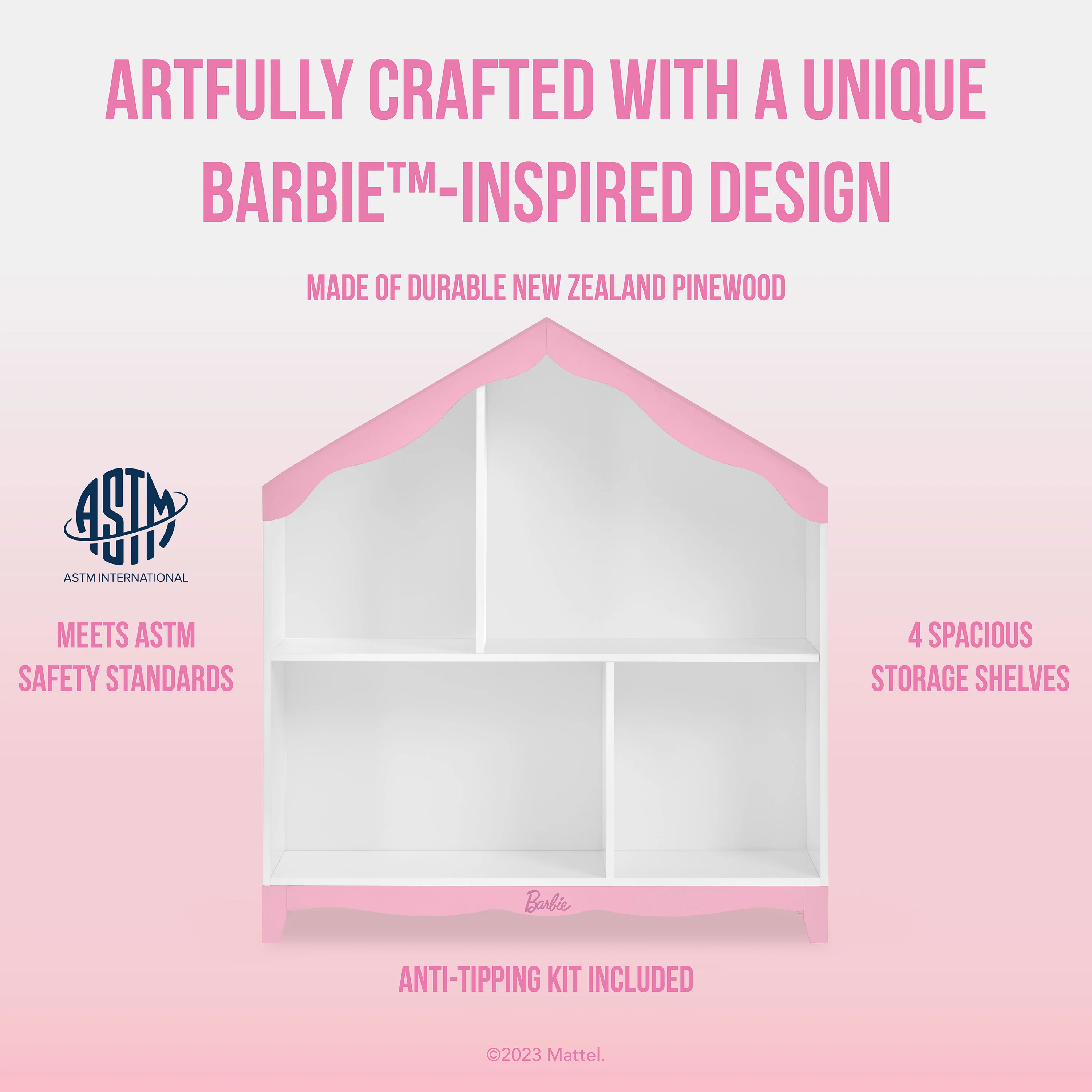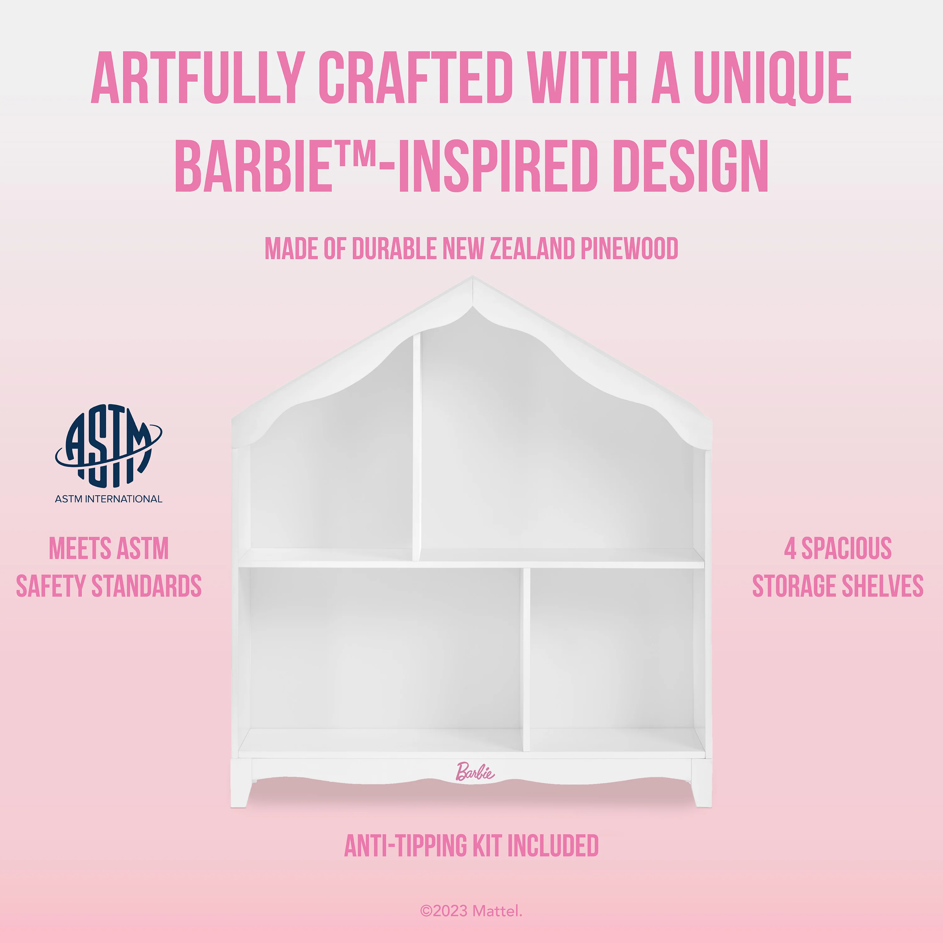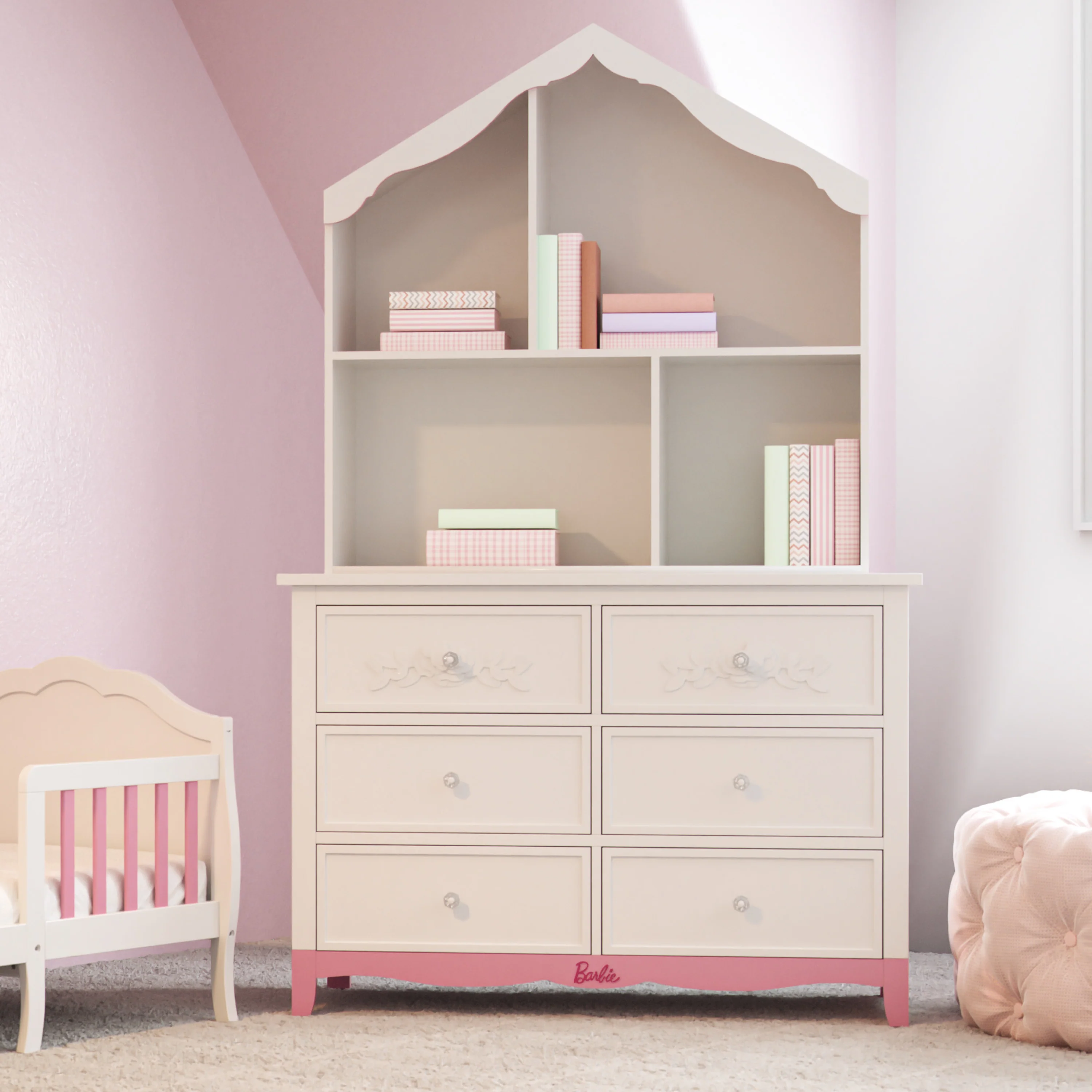 • UNIQUE DESIGN: Built with New Zealand Pinewood, this piece is artfully crafted with a unique Barbie�?design and comes in both a classic white finish and a pleasing pink & white finish.