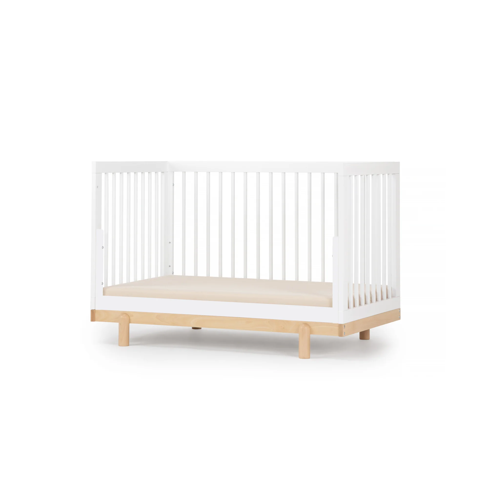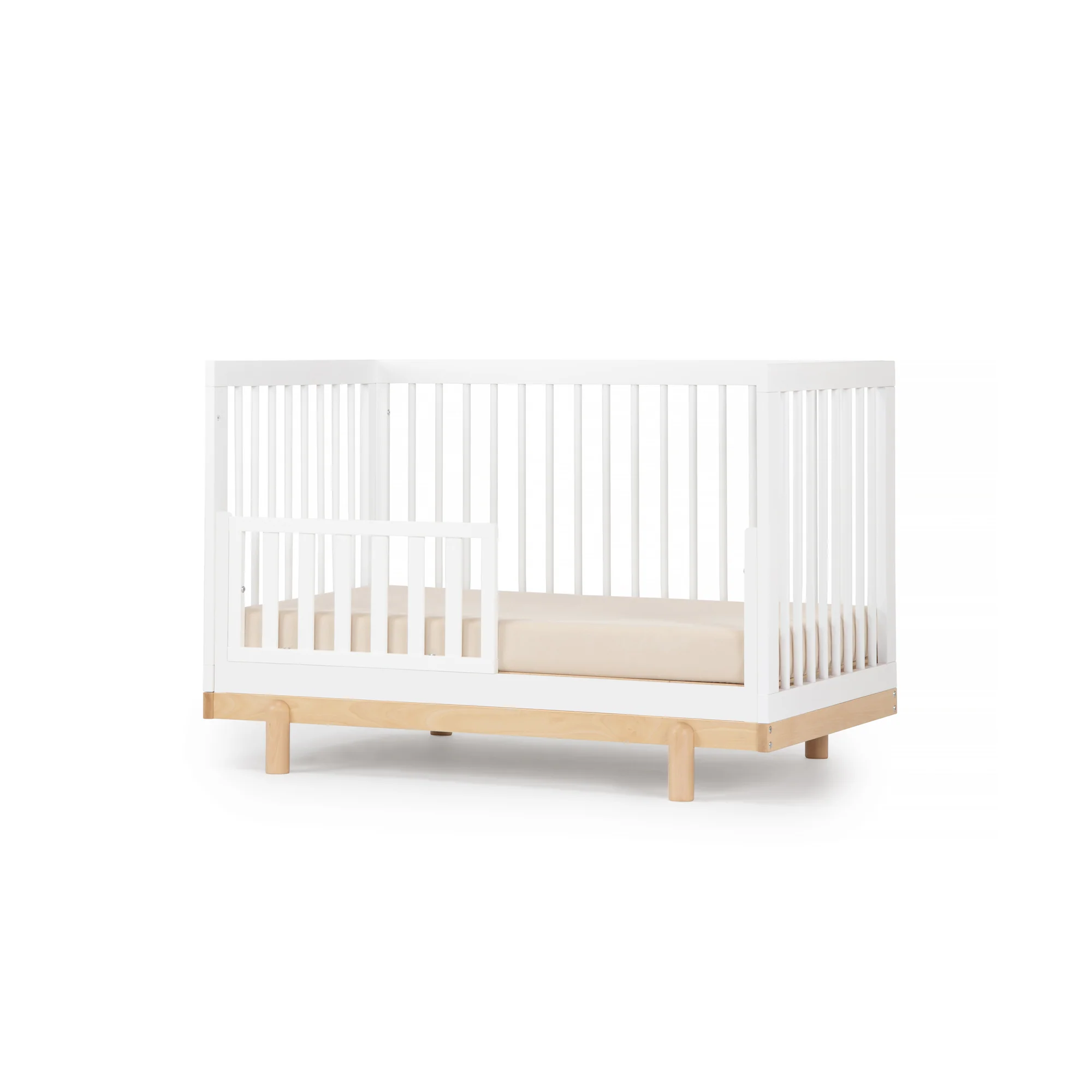 Celebrate every blissful day of childhood with the Bliss 4-in-1 Convertible Crib. Classic lines and sophisticated modern details come together in an heirloom-quality staple that adds whimsy and style to your nursery, toddler, and kids’ room. Durable, natural beechwood in baby-safe finishes transitions from newborn to kid-life with ease in four adorable configurations - crib, toddler bed, daybed, and floor bed. 4-in-1 convertible crib (crib, toddler, day, and floor bed)