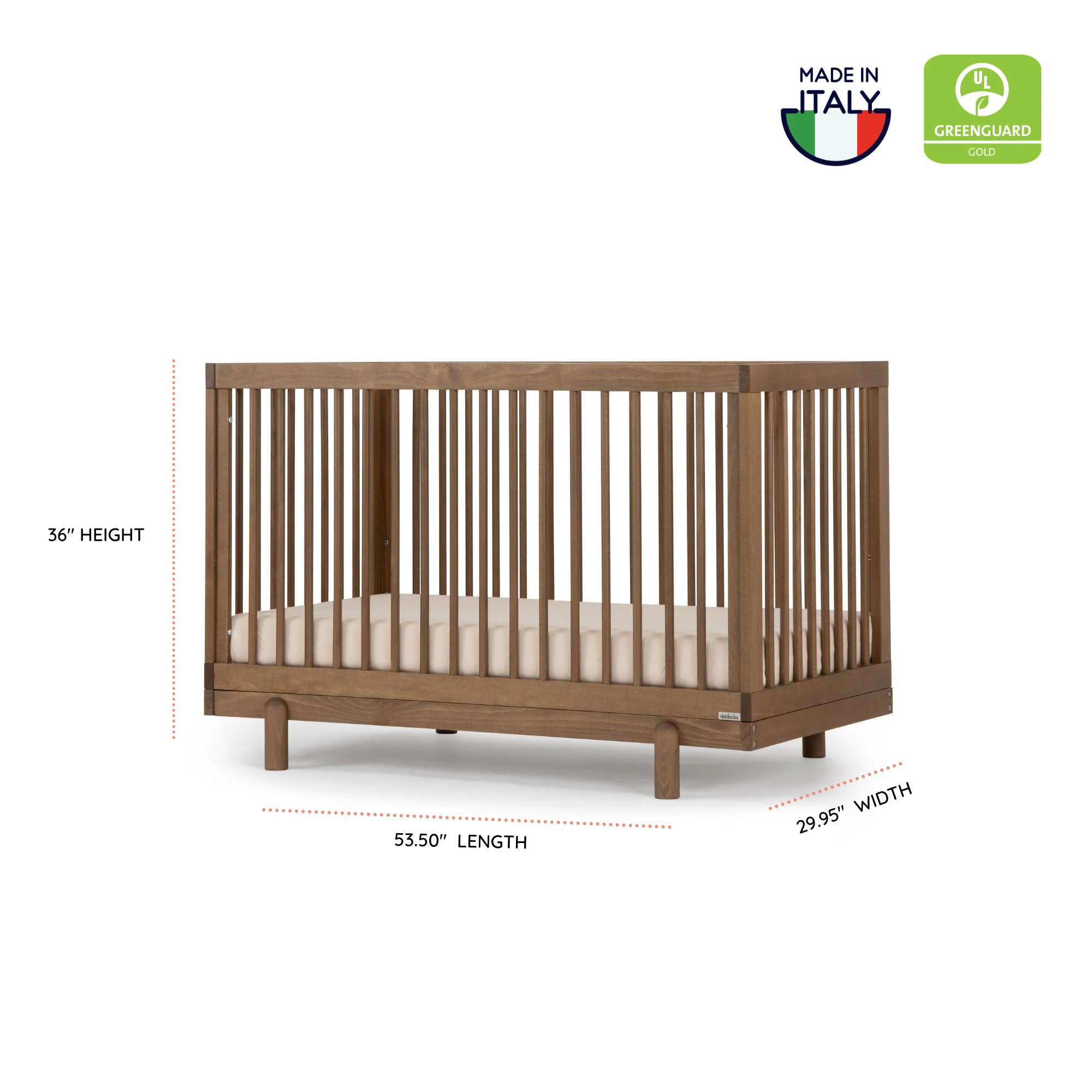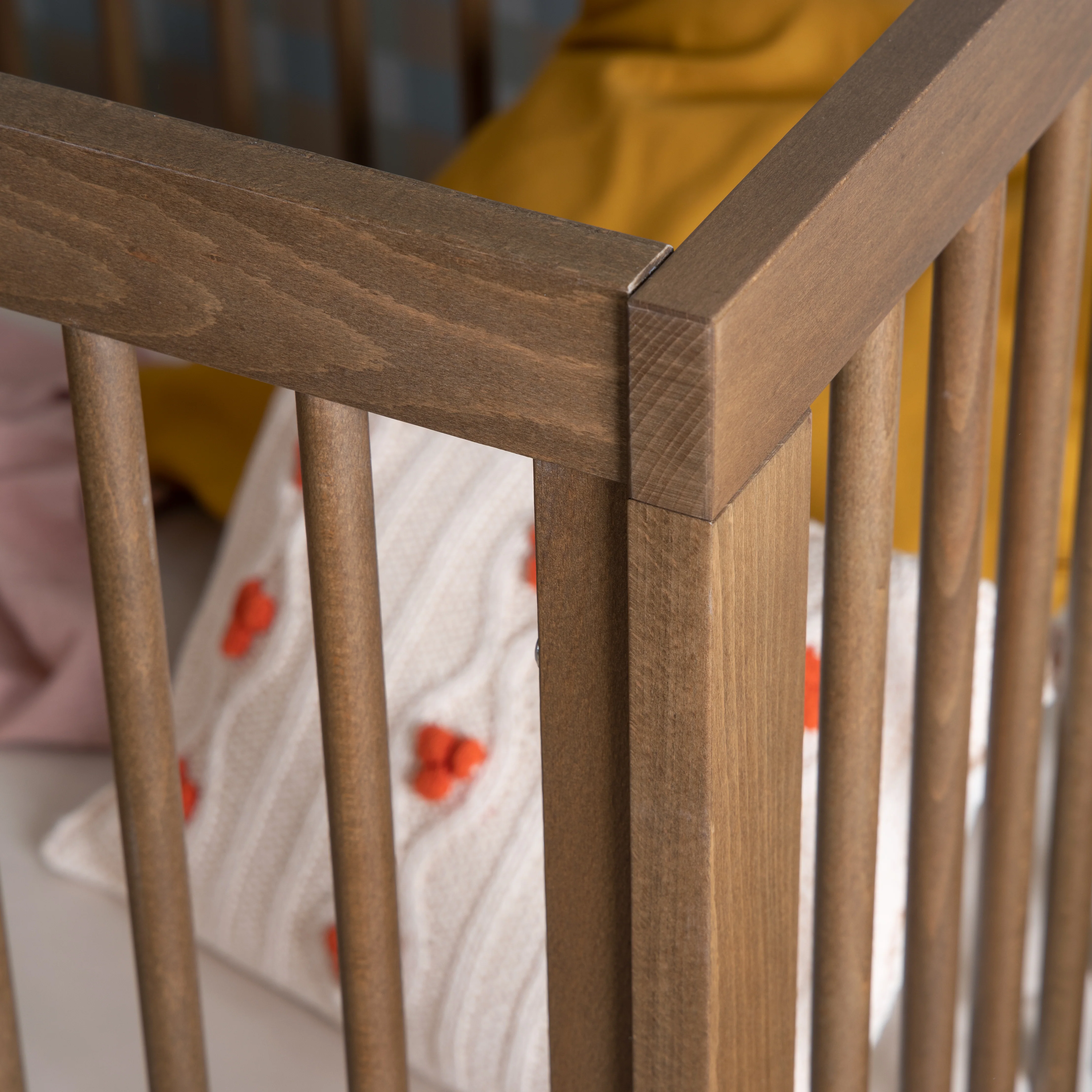 • Solid beechwood, baby-safe finish - including mattress base