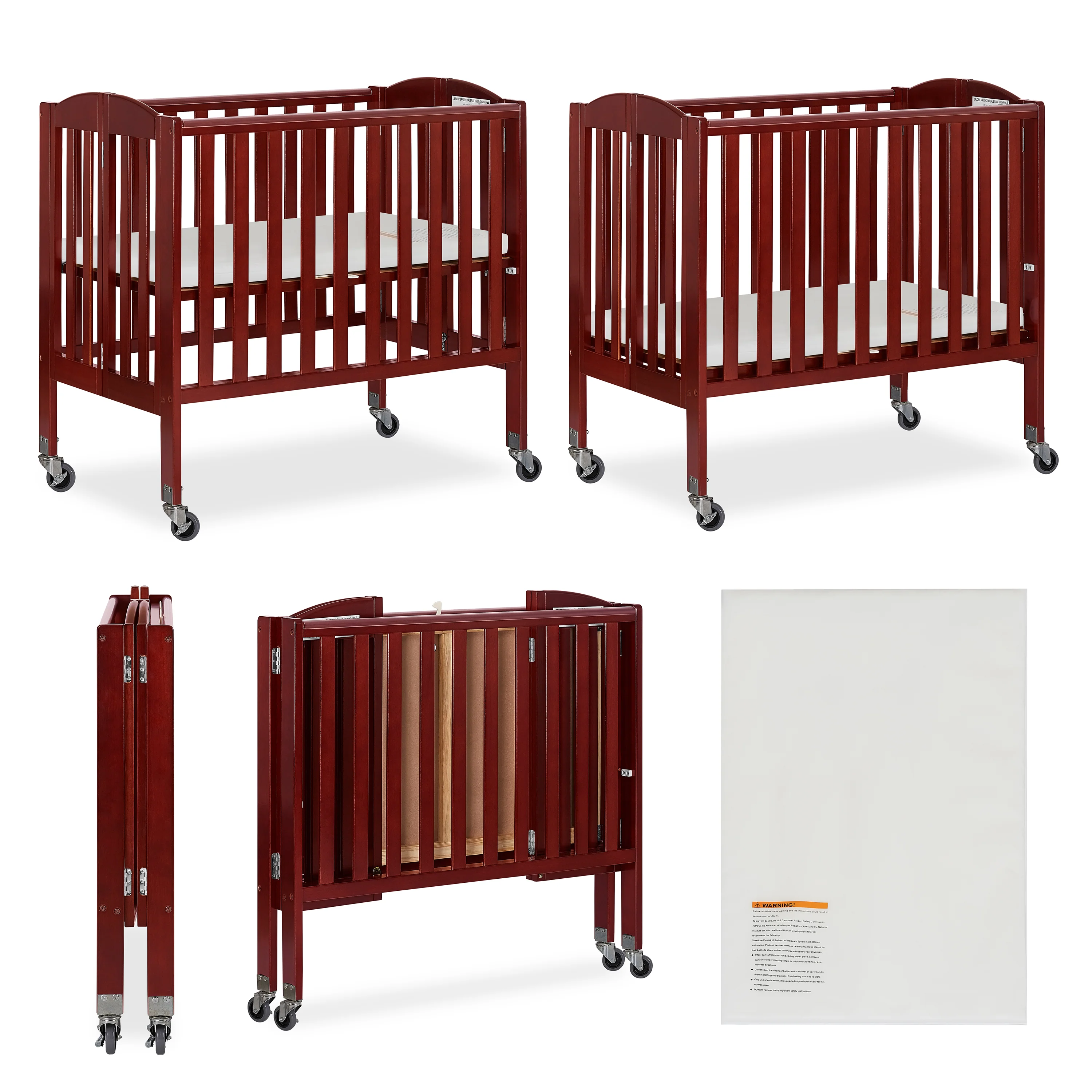 The Dream On Me 2-in-1 Folding Birch Portable Crib is a must for today’s urban, on-the-go parents and designed to make the most of small spaces. The crib assembles in a jiffy and the U.S. patented rail design easily helps convert the crib into a playpen in seconds. It makes for the perfect space-saver with the unique hinge system allowing it to fold flat for compact storage. It’s lightweight, portable frame with wheels makes it easy for you to move it around the house. Take it on your travels or to grandma’s house!