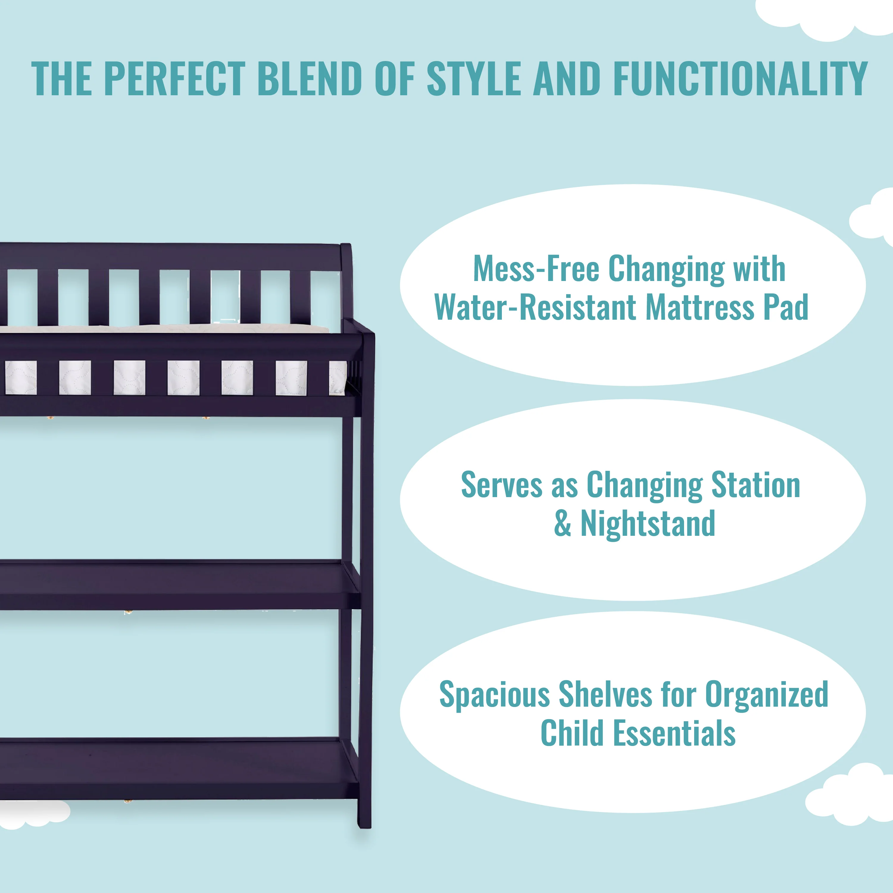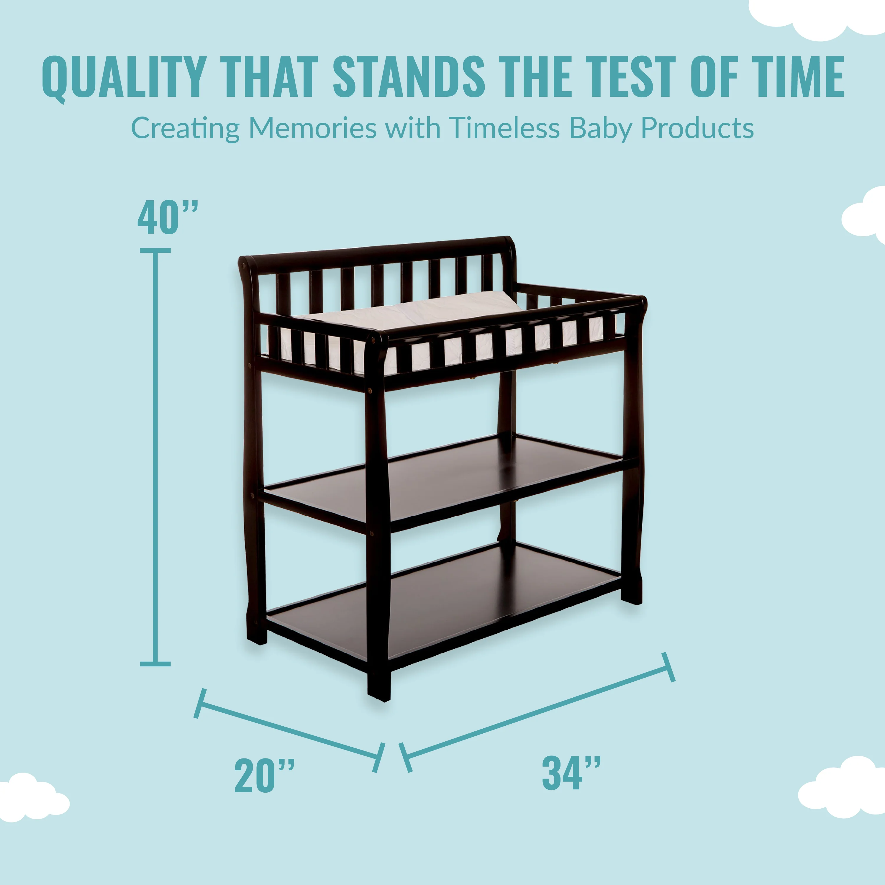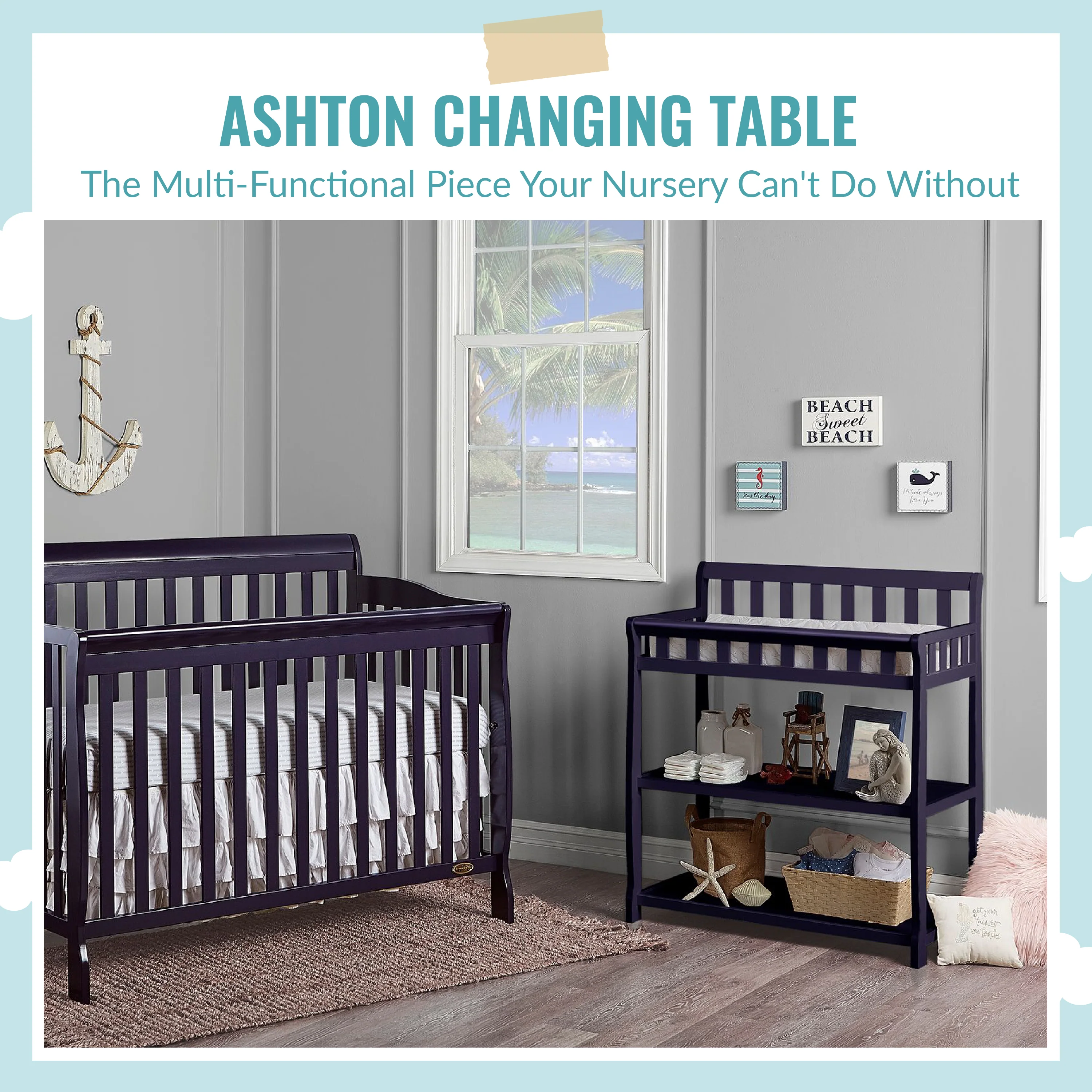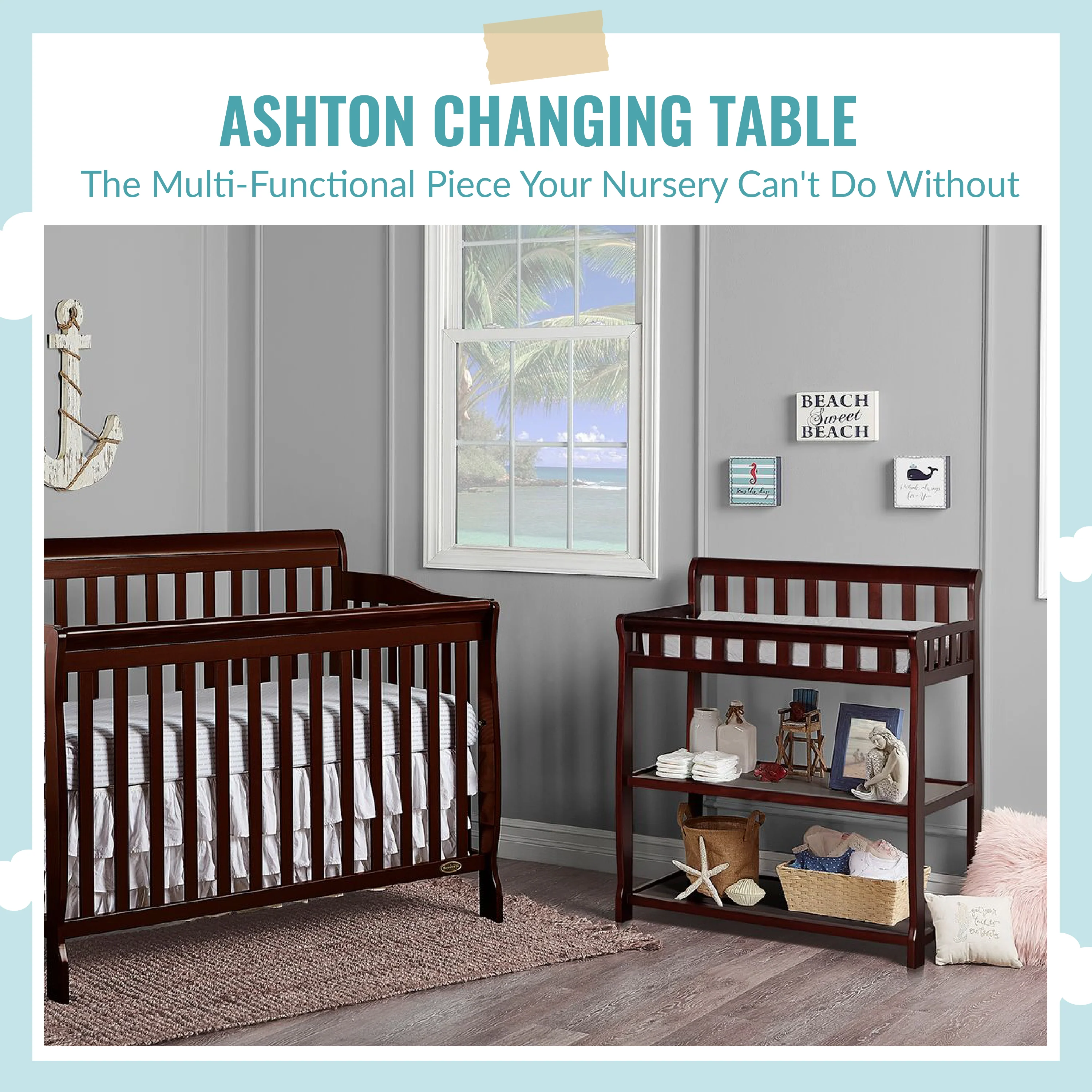 • GREAT STORAGE: The Ashton comes with two easy-to-reach, spacious shelves below the changing table - keep your child’s essentials neatly organized and within easy reach! Product dimensions are 34L x 20W x 40H inches.