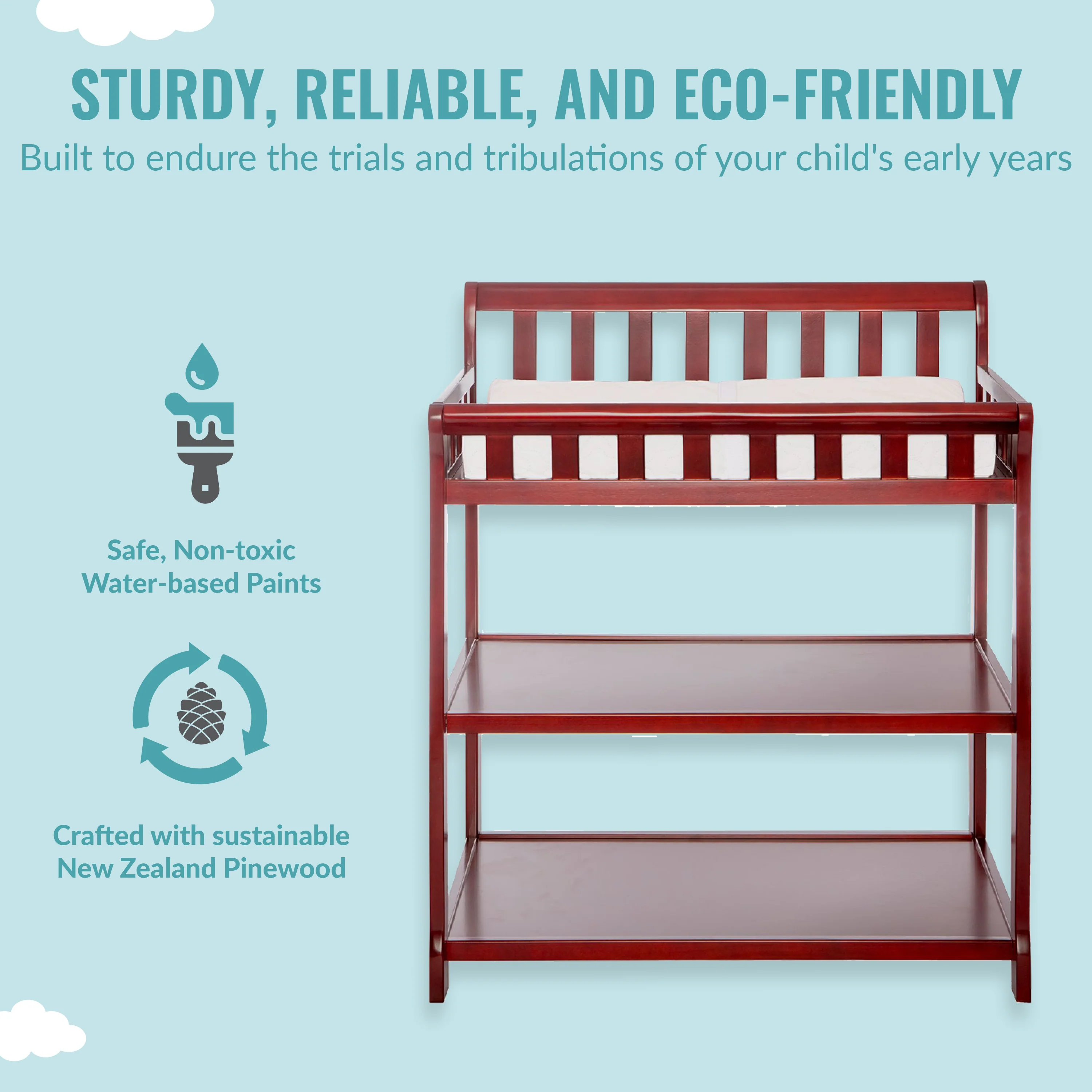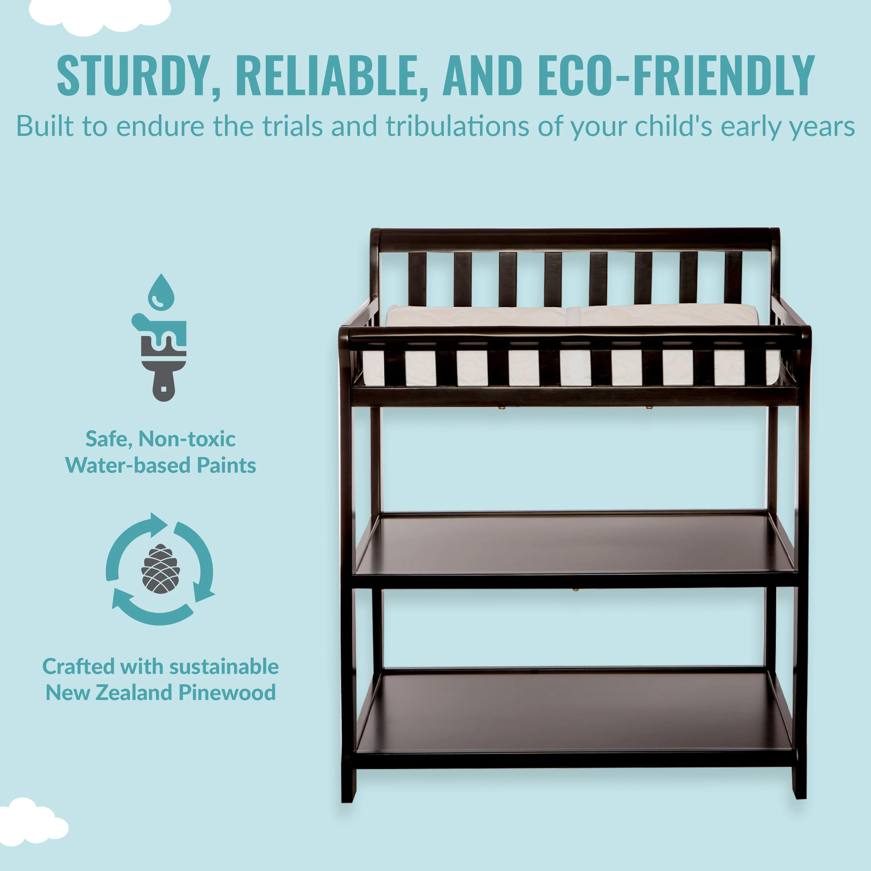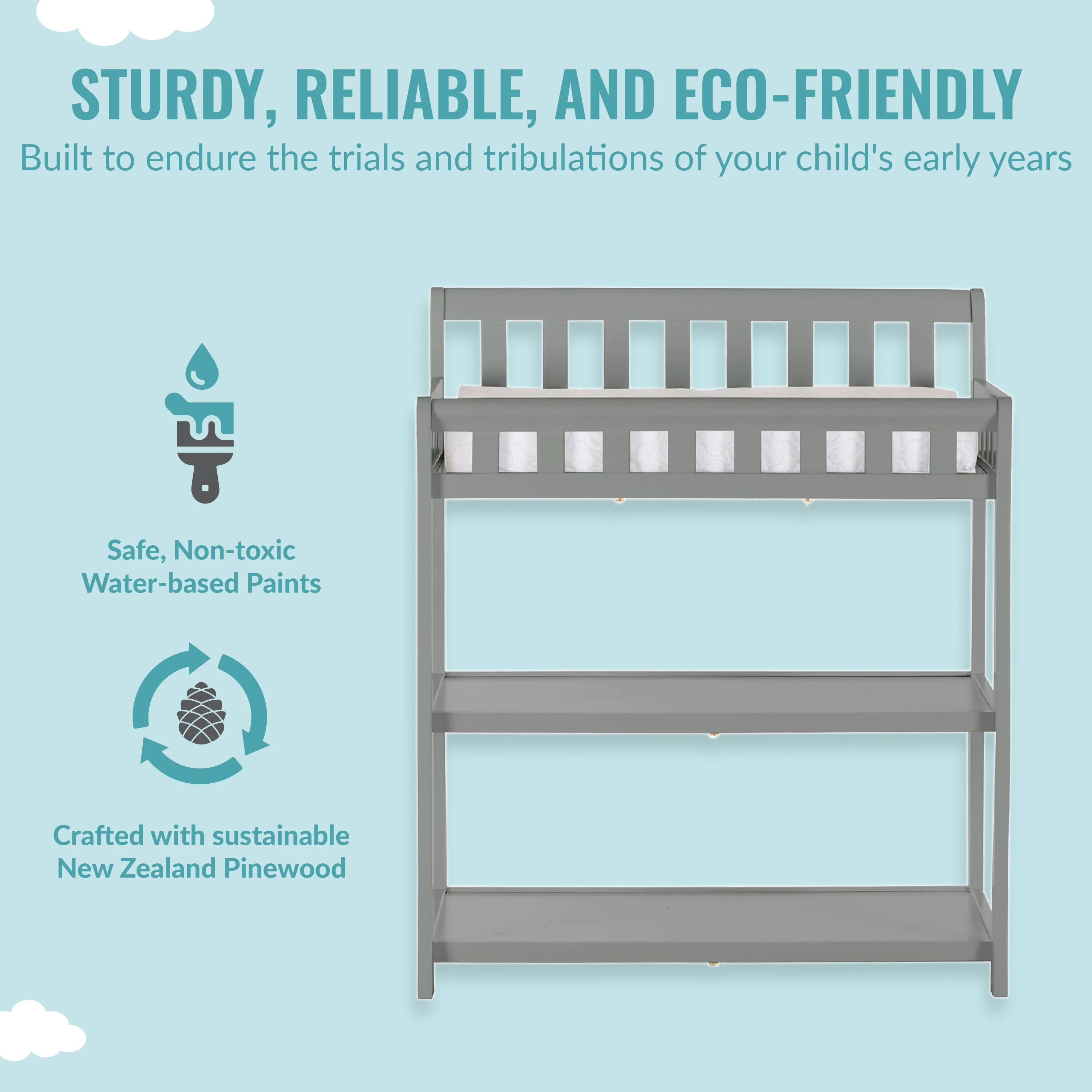 - DUAL USE: The Ashton is a functional changing table that is a nursery must-have! Built of durable, sustainable, and reclaimed New Zealand pinewood, you can use it as a changing station in the early years and then as a nightstand as your child grows older.