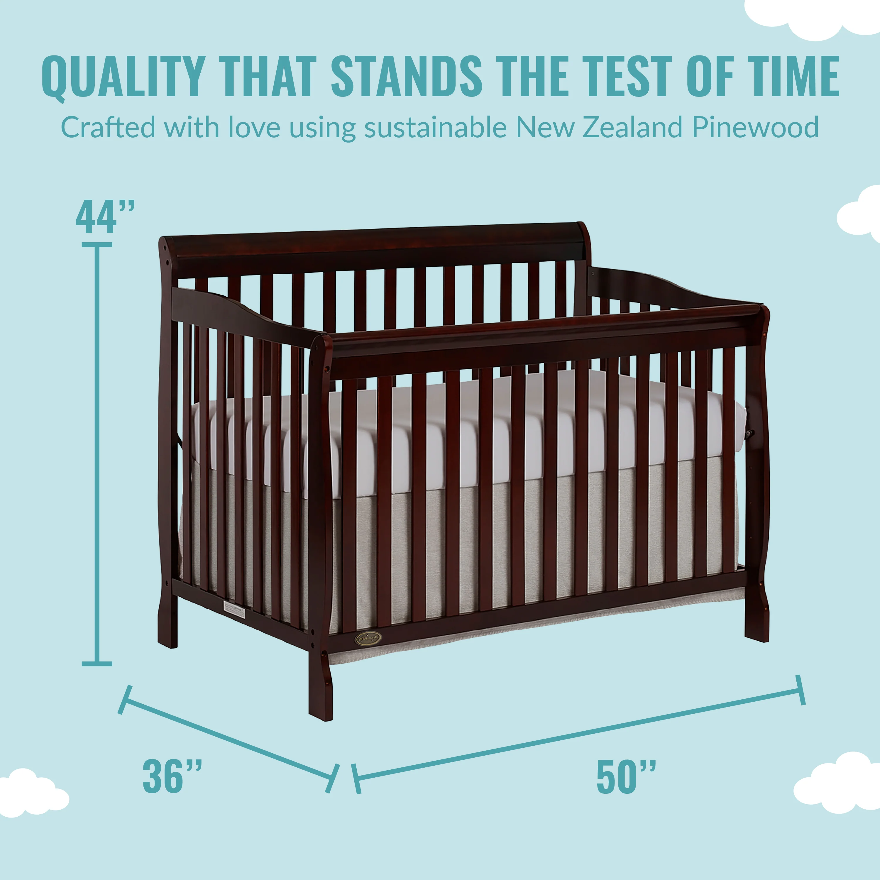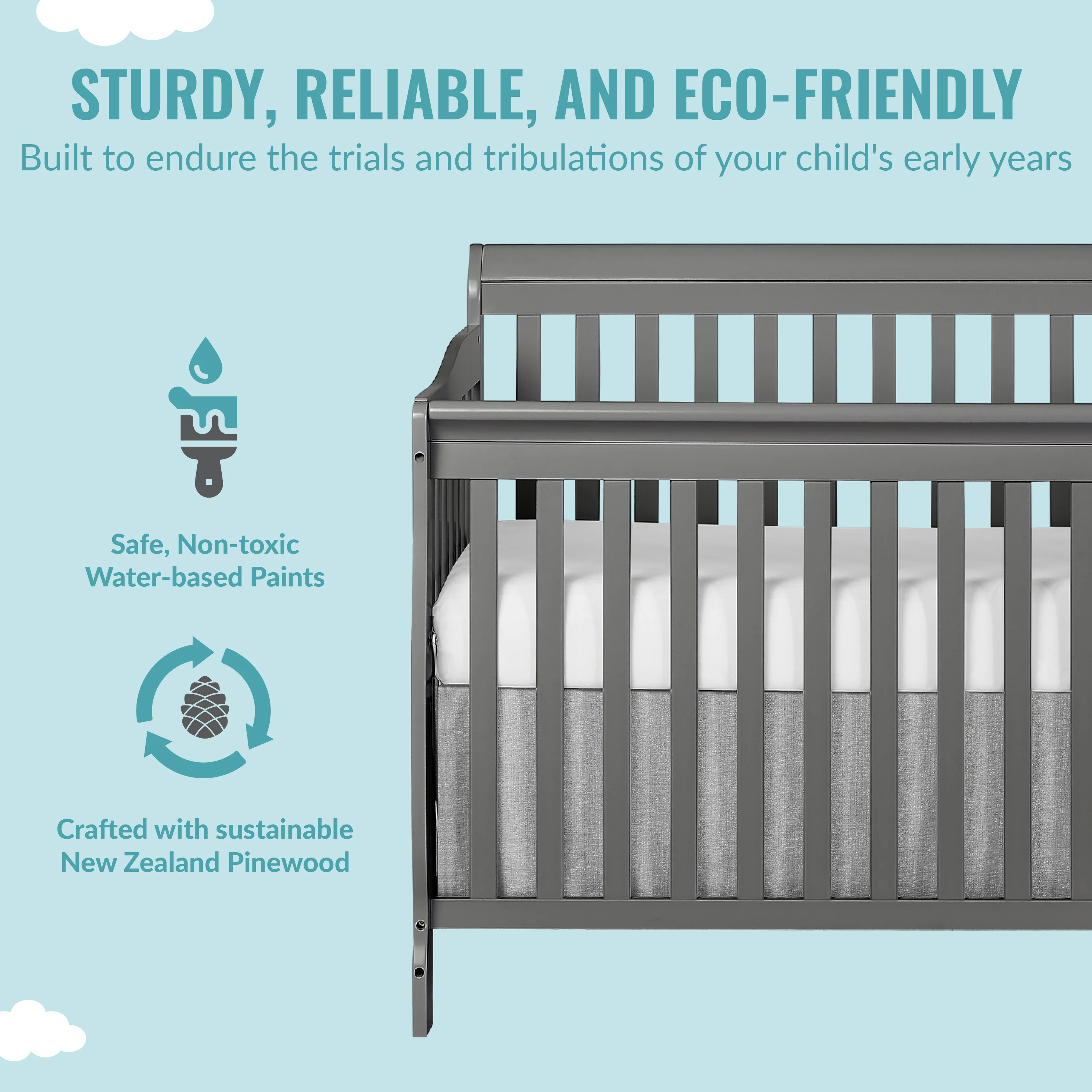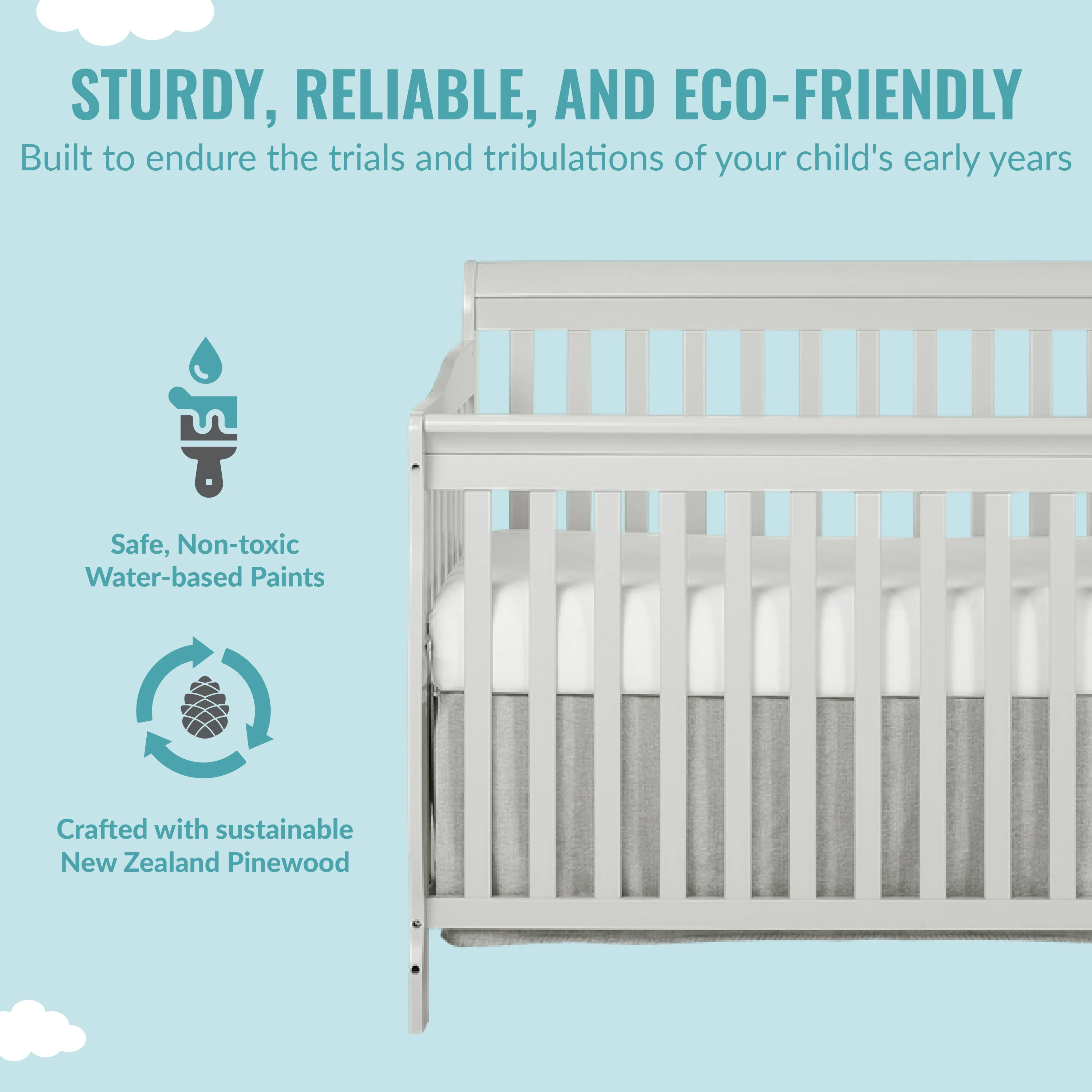 - DURABLE & STYLISH: The Ashton is built out of solid reclaimed New Zealand Pinewood. With a classic design, this crib offers your little one a sleeping space that will never go out of style. Available in different finishes to match any nursery theme