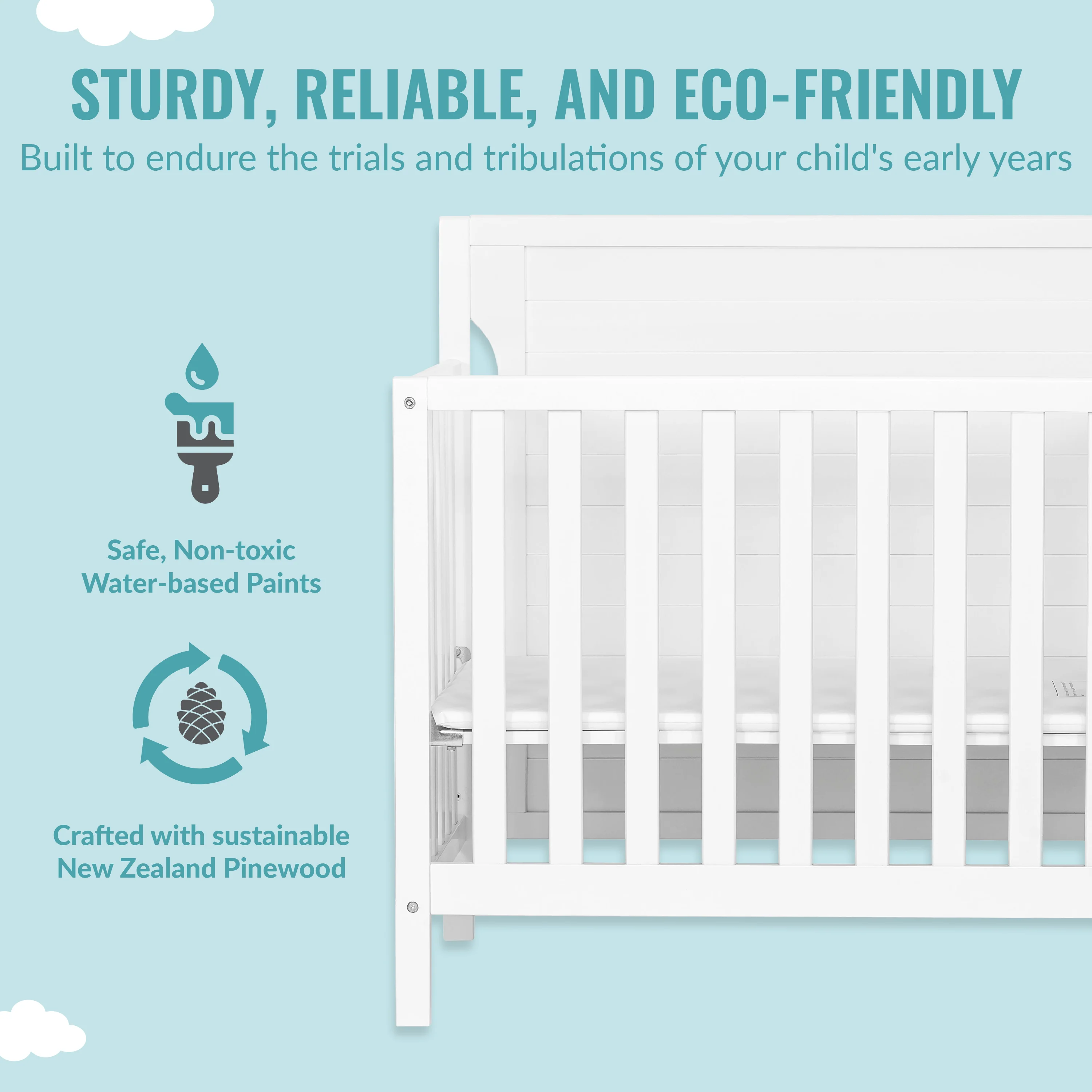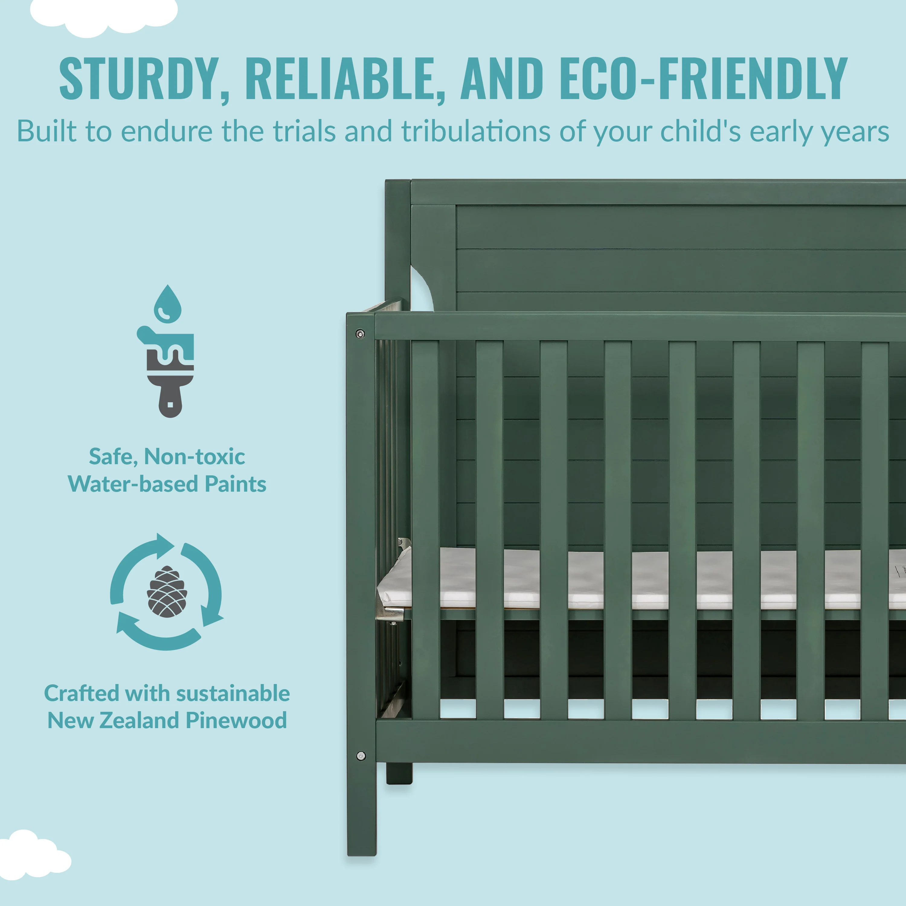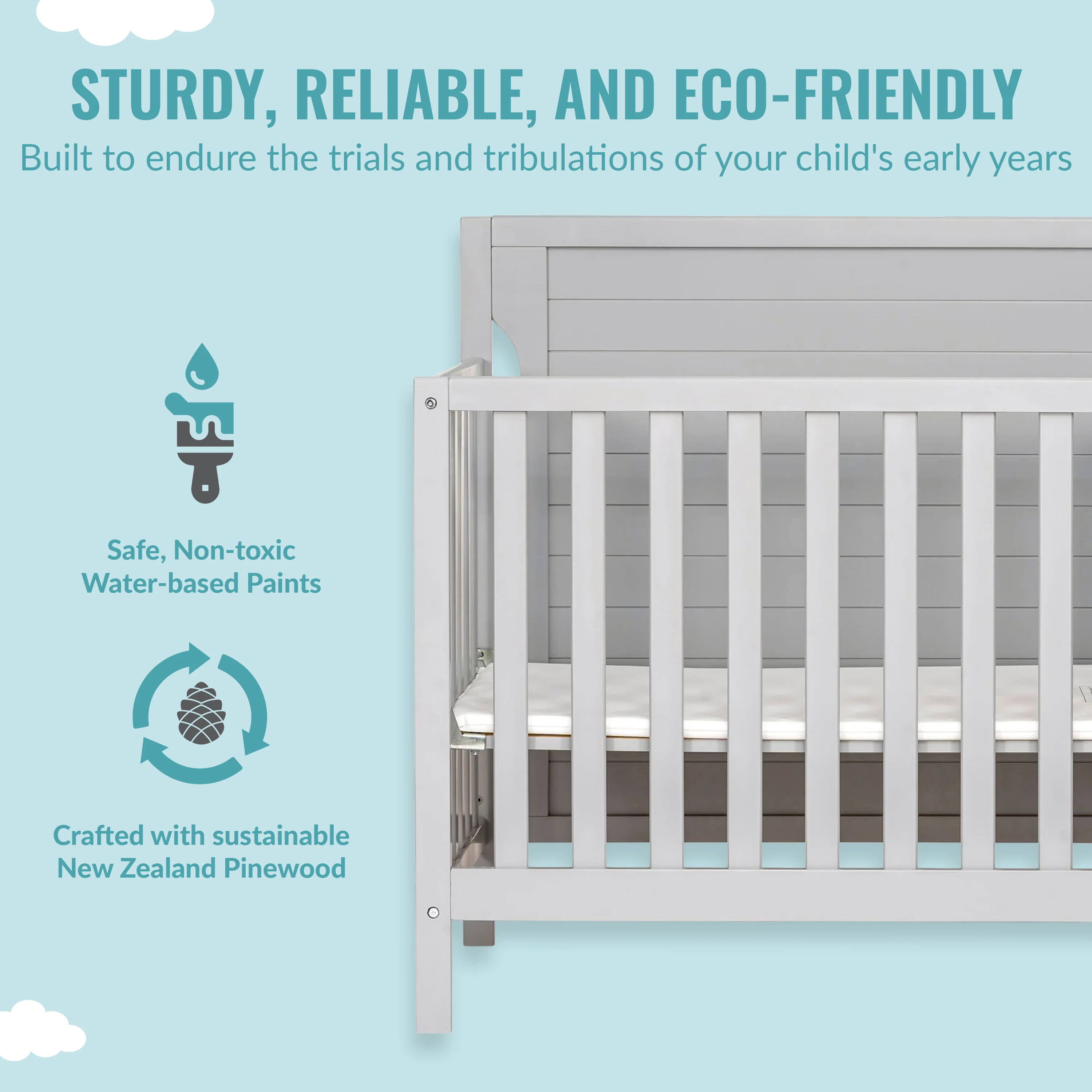 - The Bellport is made of durable, sustainable and renewable New Zealand pinewood. Choose from pleasant non-toxic, child-safe, water-based finishes.