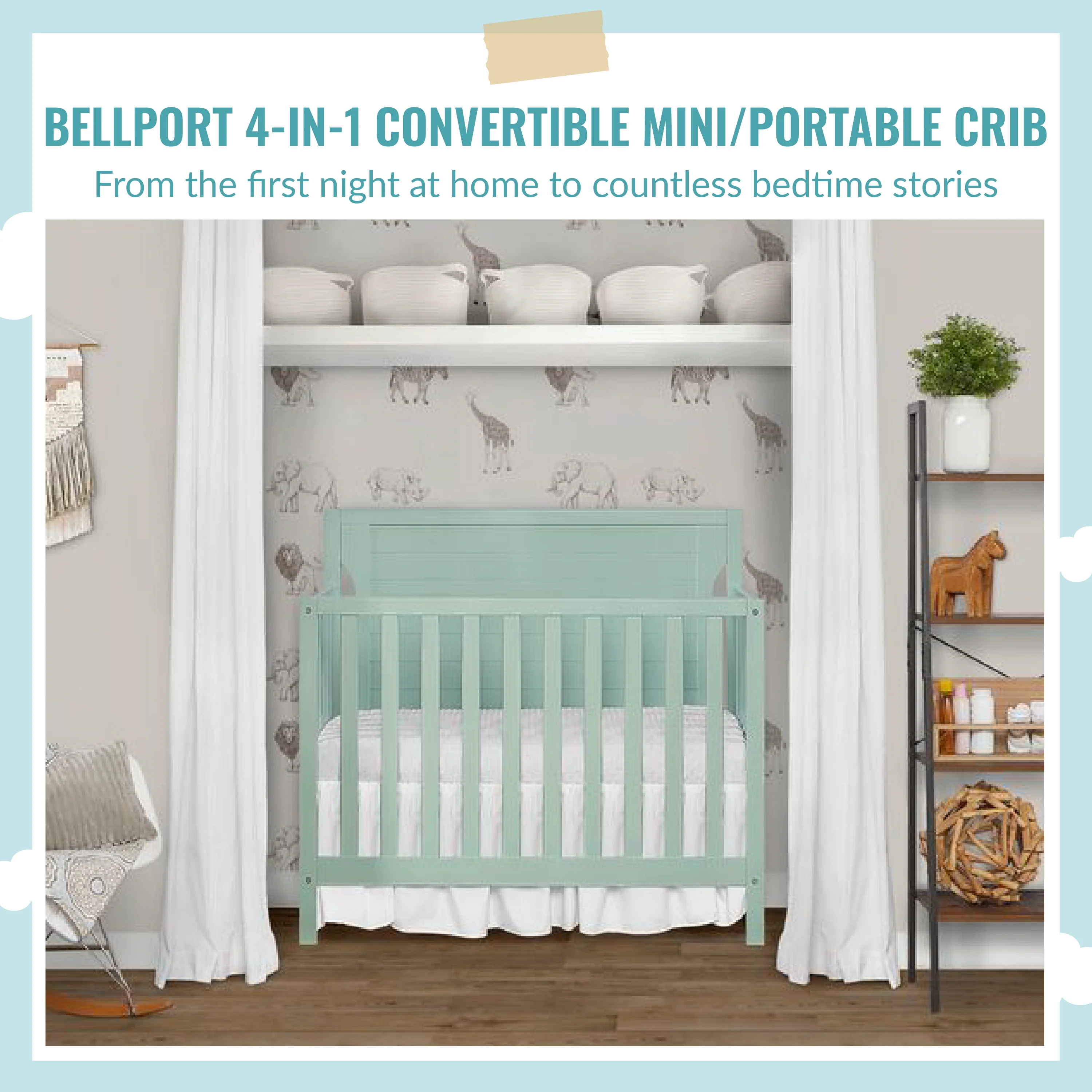The Bellport 4-in-1 Convertible Mini/Portable Crib is the ideal piece of nursery furniture that you need to match the changing needs of your growing child, while making the most of today’s s compact nurseries