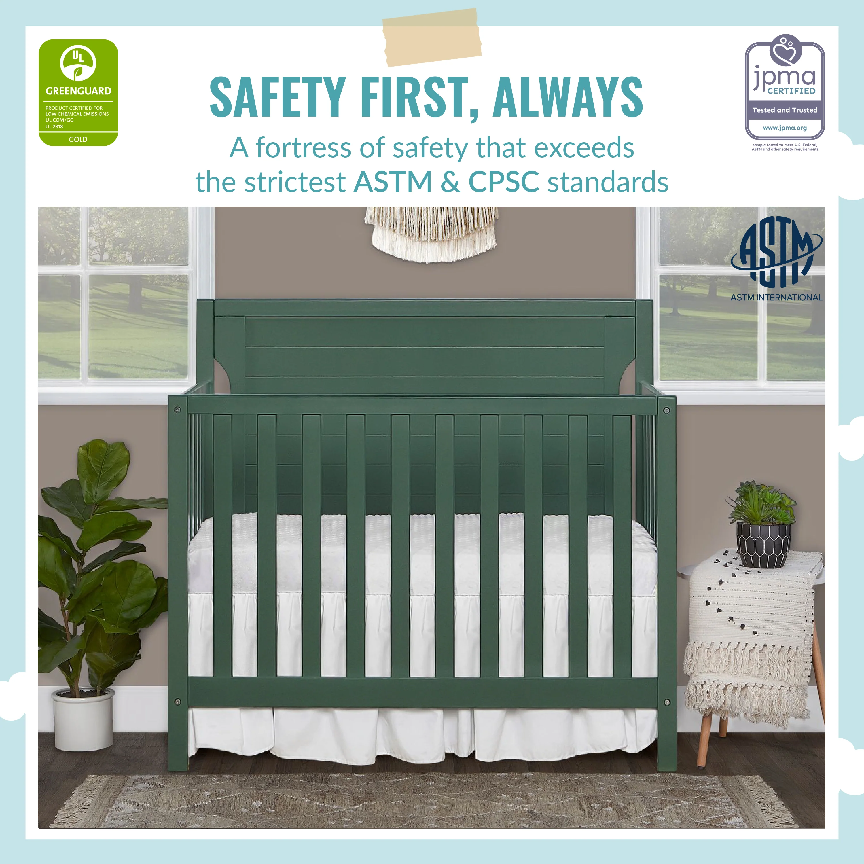 - Our cribs are designed with a focus on safety and meets or exceeds government and CPSC/ASTM safety standards. The max weight limit is 50 lbs. All tools/assembly instructions included.