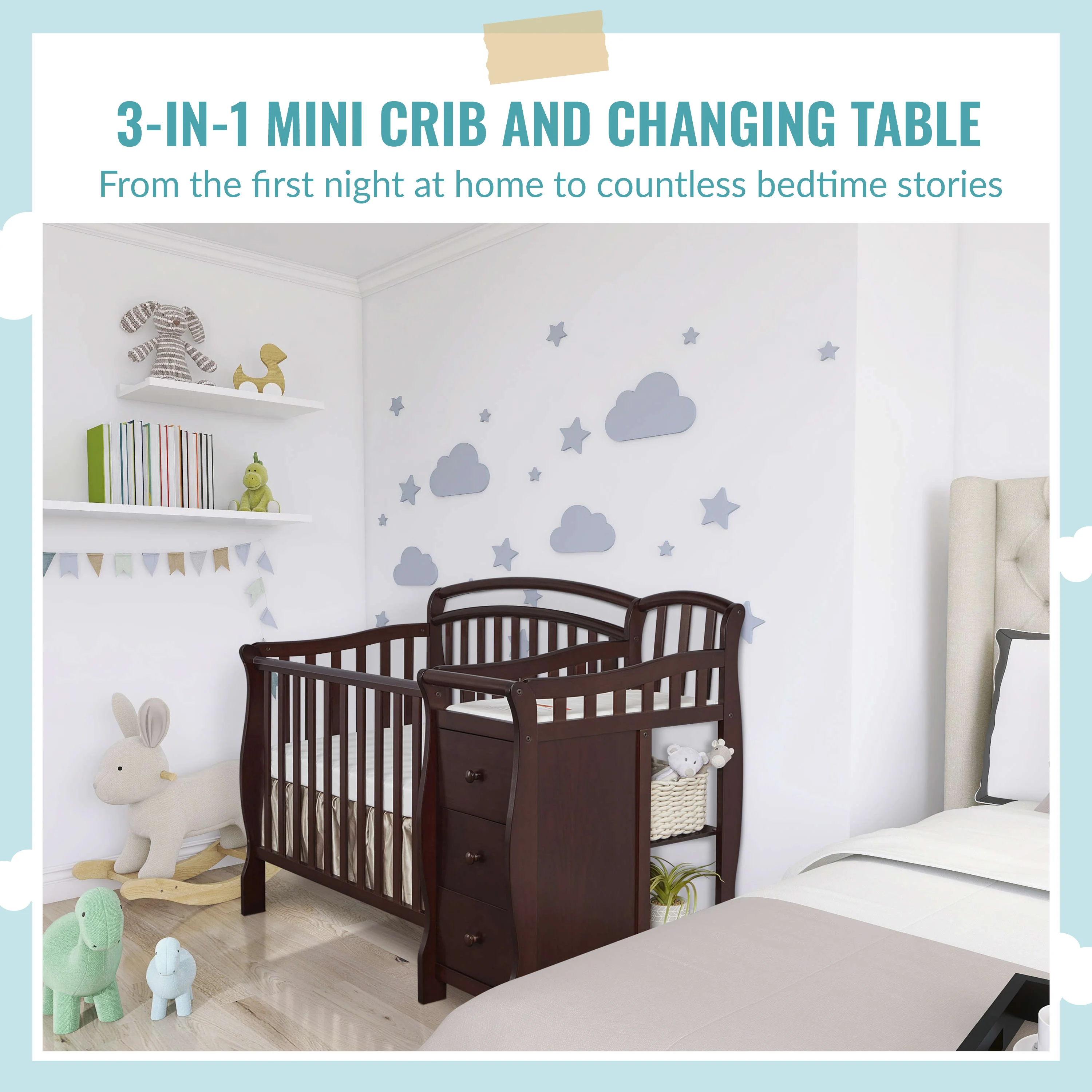 - Dream On Me Casco 4-In-1 Mini Crib & Changing Table