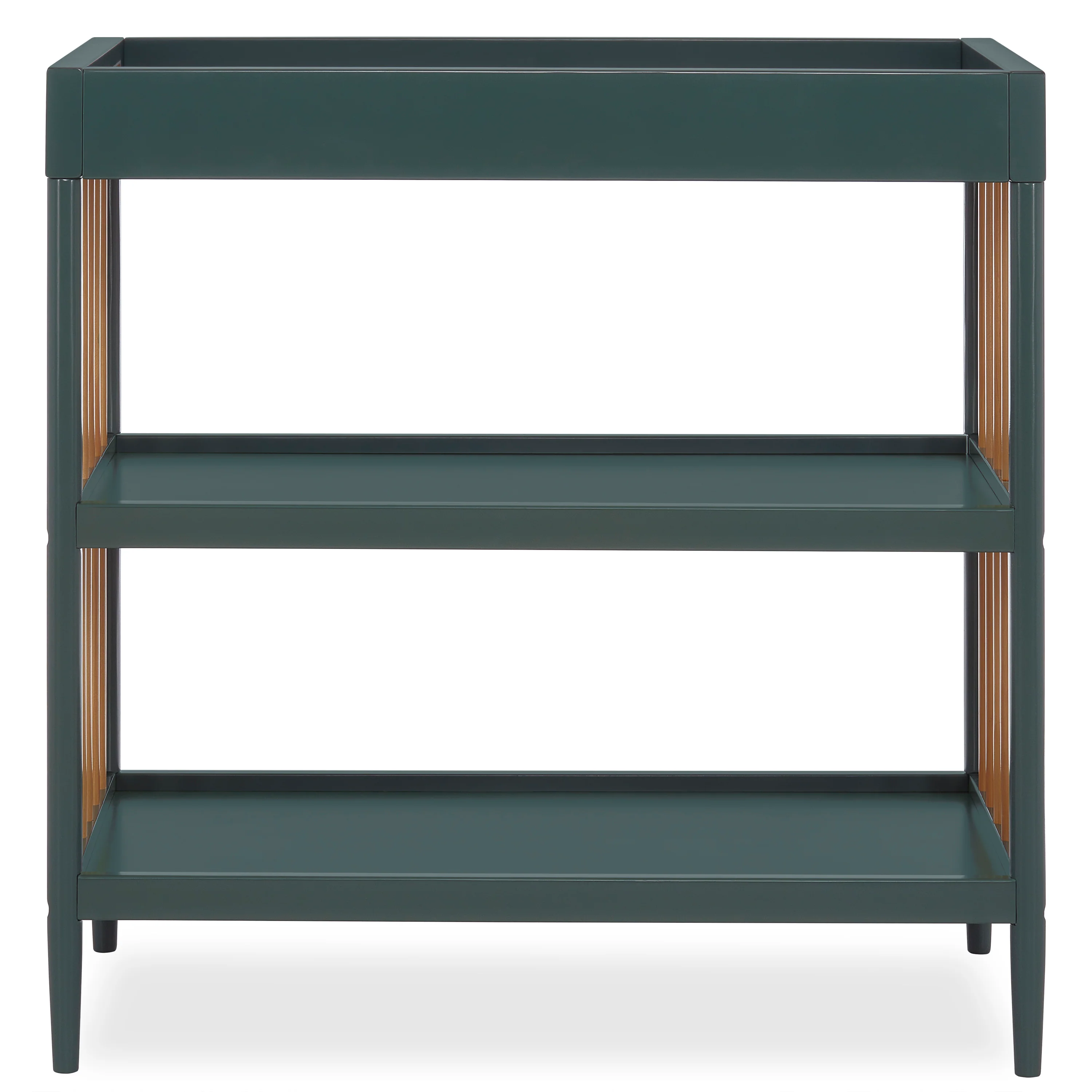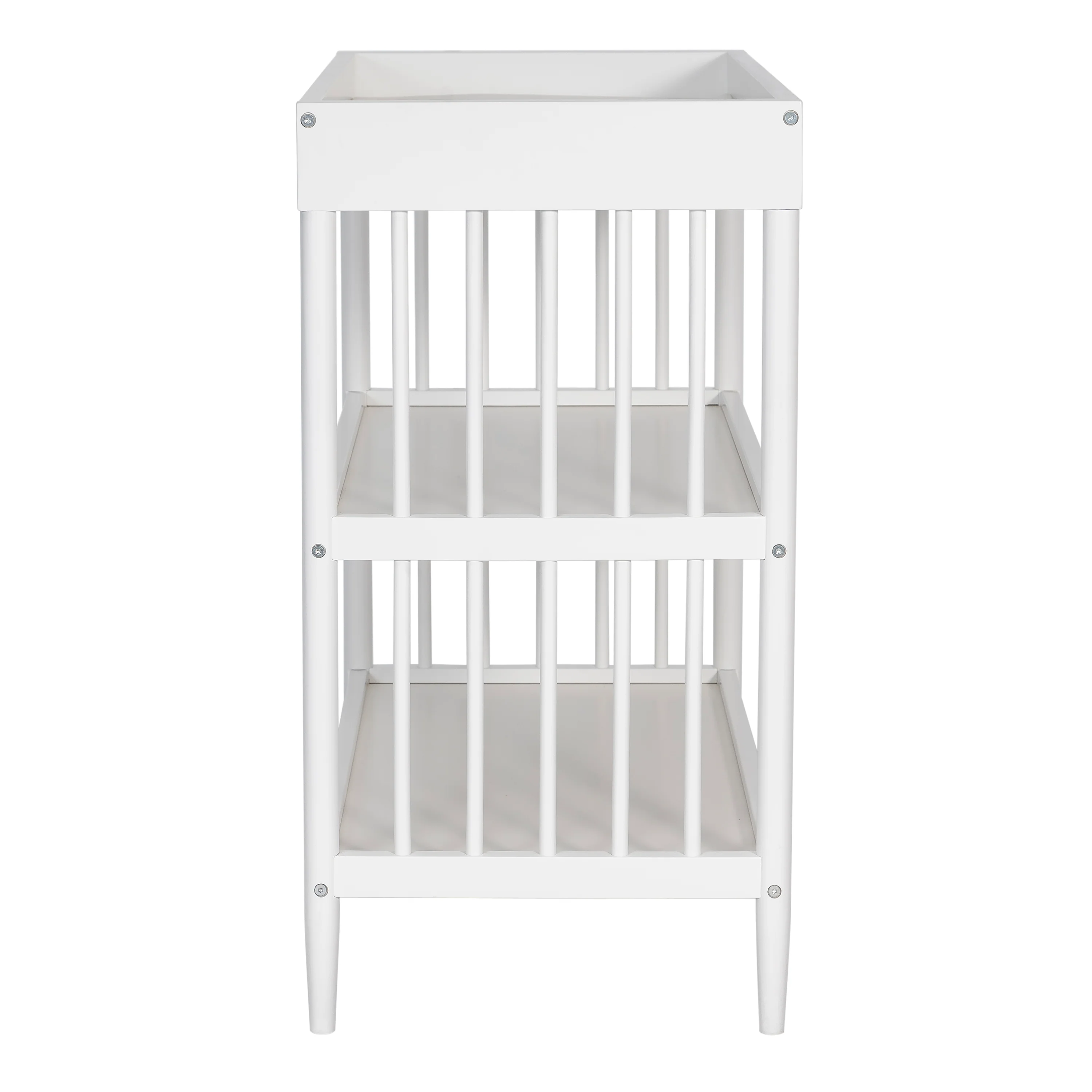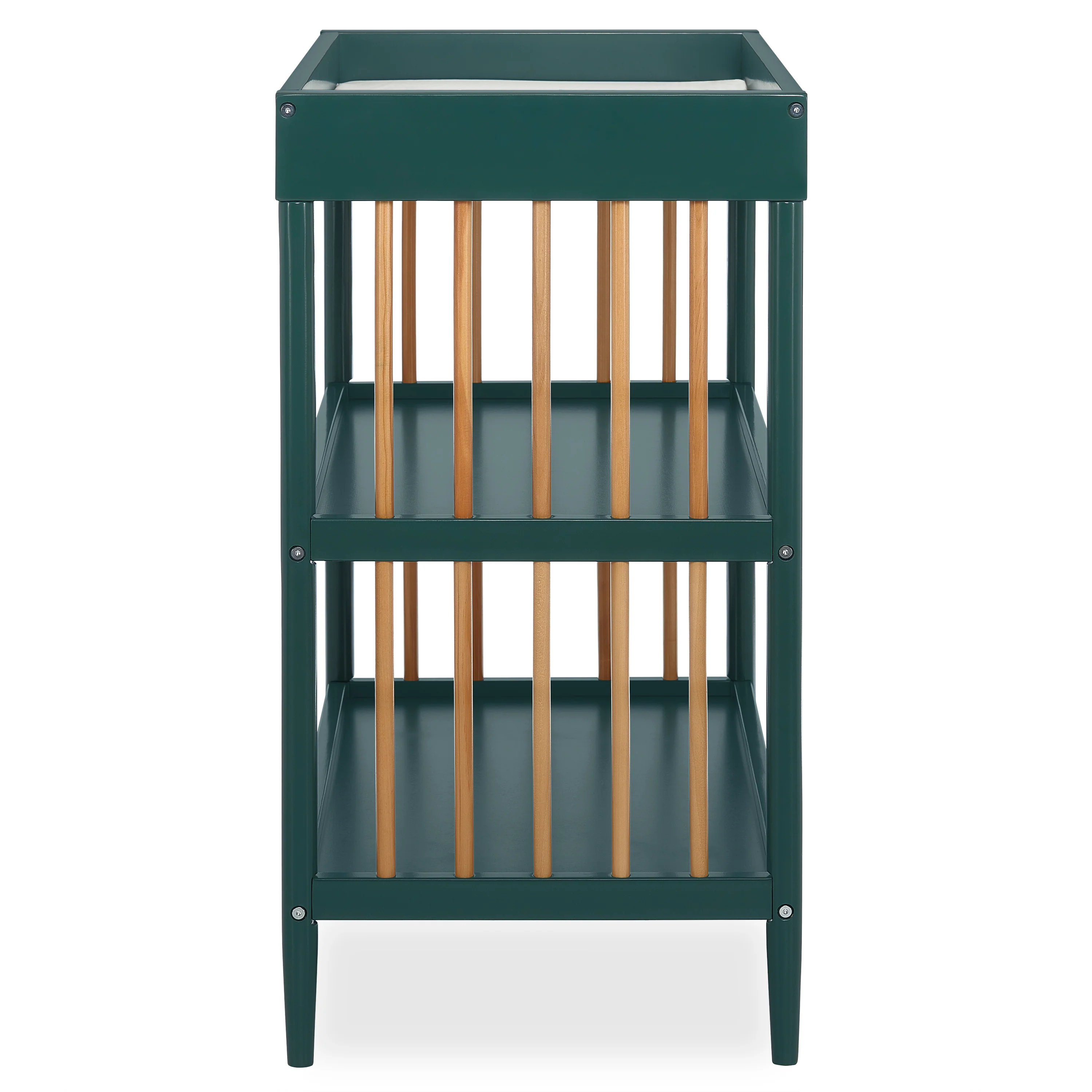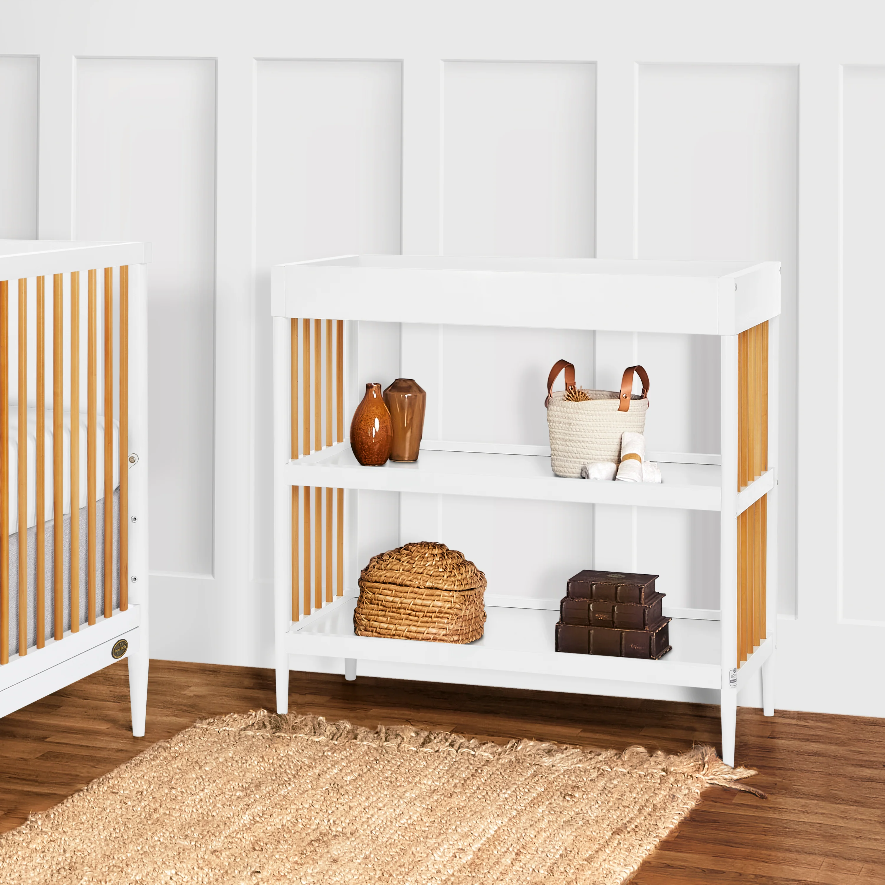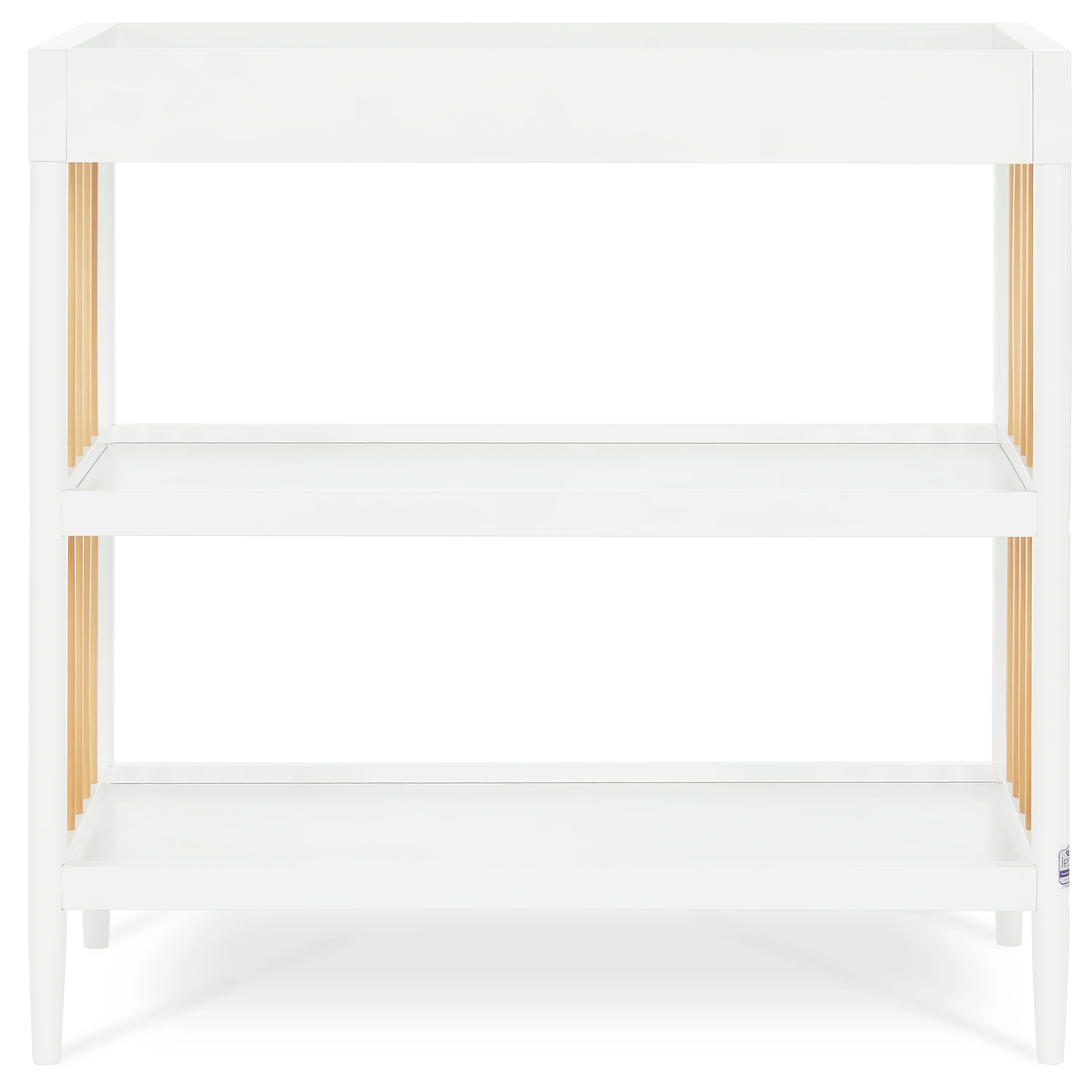 - Keeps your child’s essentials neatly organized and easily accessible in the two easy-to-reach, spacious shelves below the changing table.